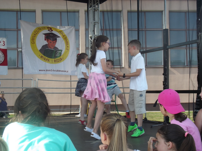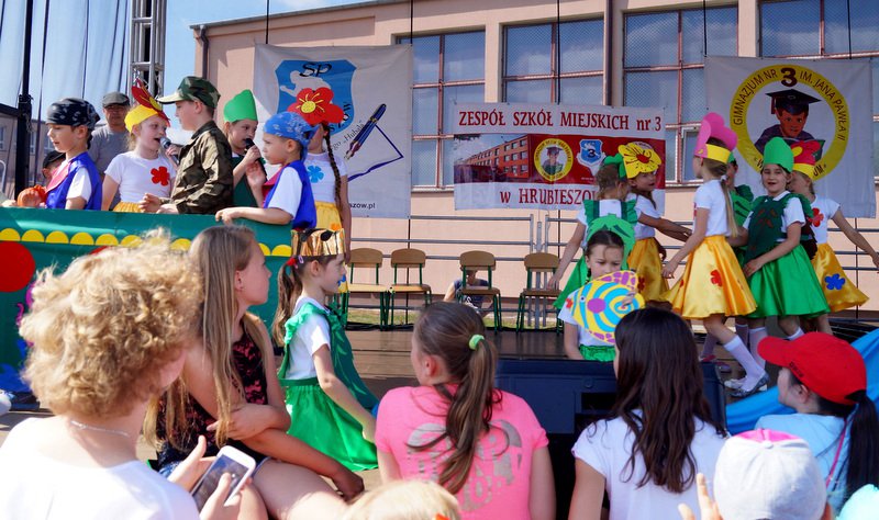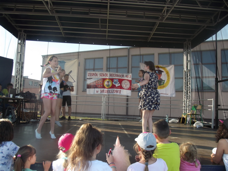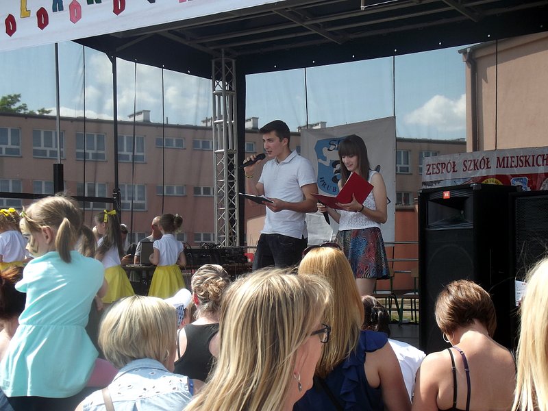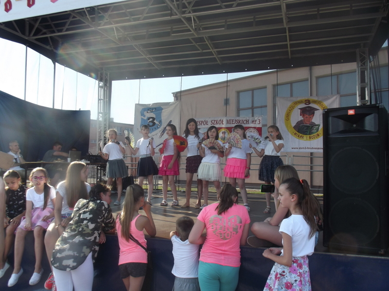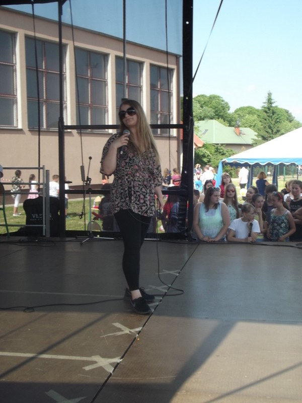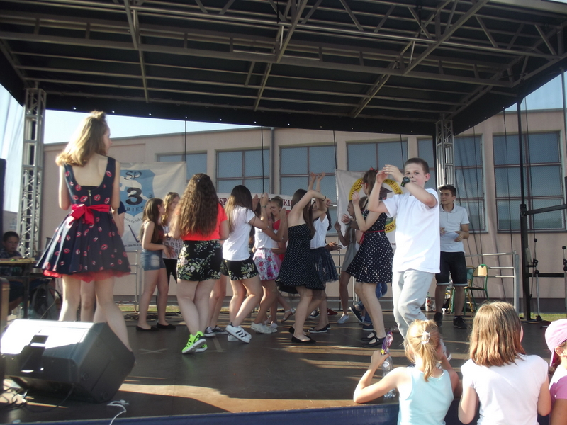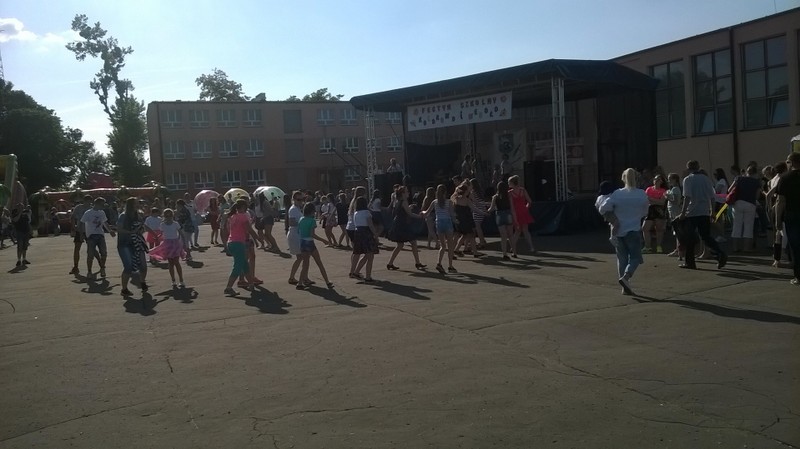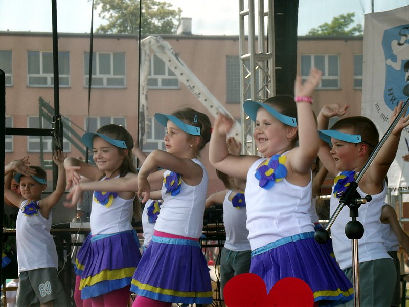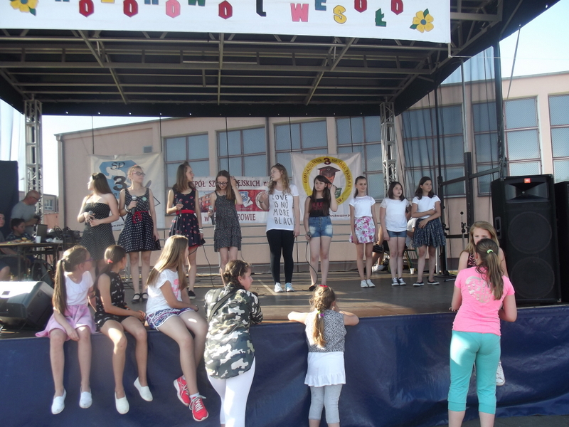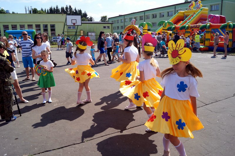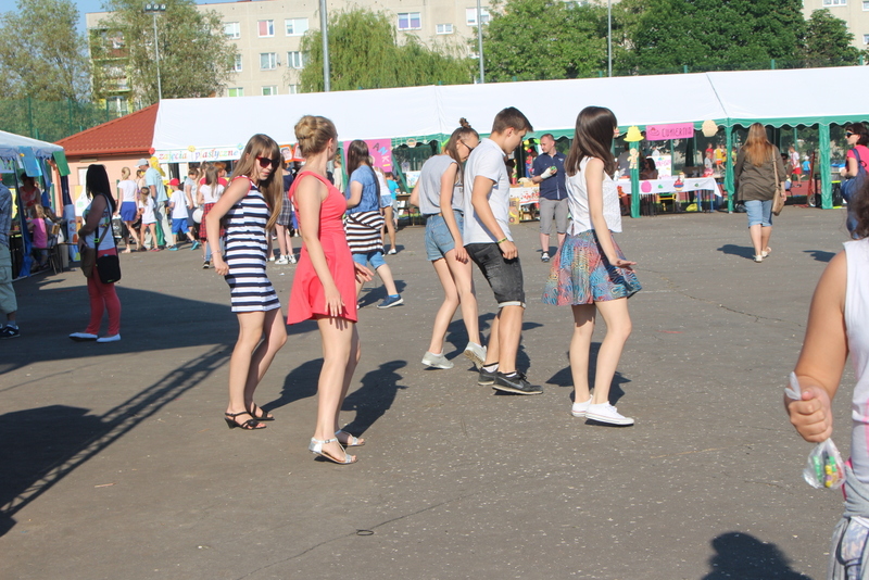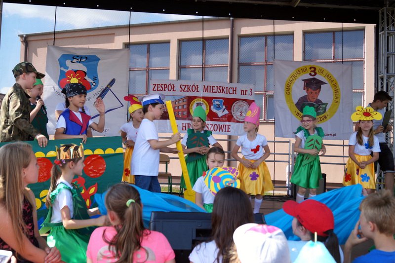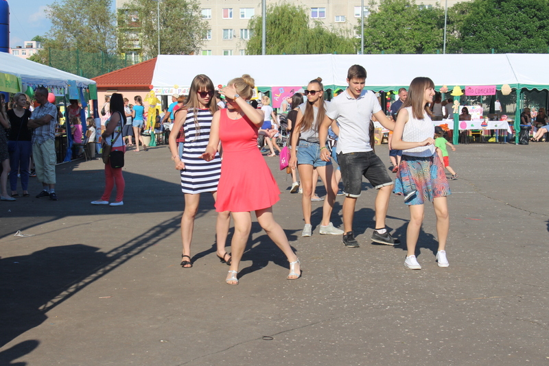Przez cały czas trwania festynu na scenie prezentowały się poszczególne klasy szkoły podstawowej i gimnazjum oraz zespół wokalny i soliści. Dzieci biorące udział pokazały swoje umiejętności gry na instrumentach, śpiewu i tańca a na boiskach predyspozycji sportowych. W przerwach między występami nie zabrakło „radosnego pląsu” w rytmie „Belgijki”, „Skrzypka” czy „Czekolady”.