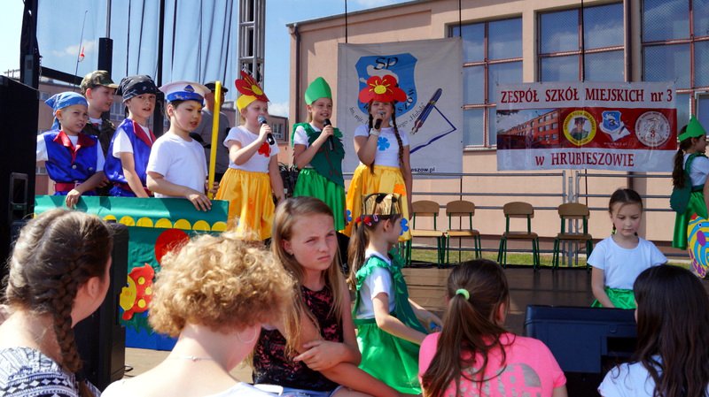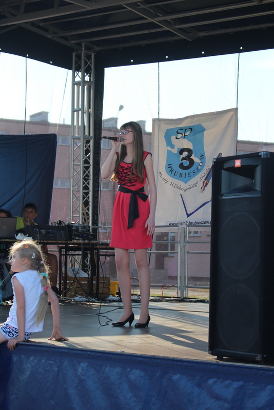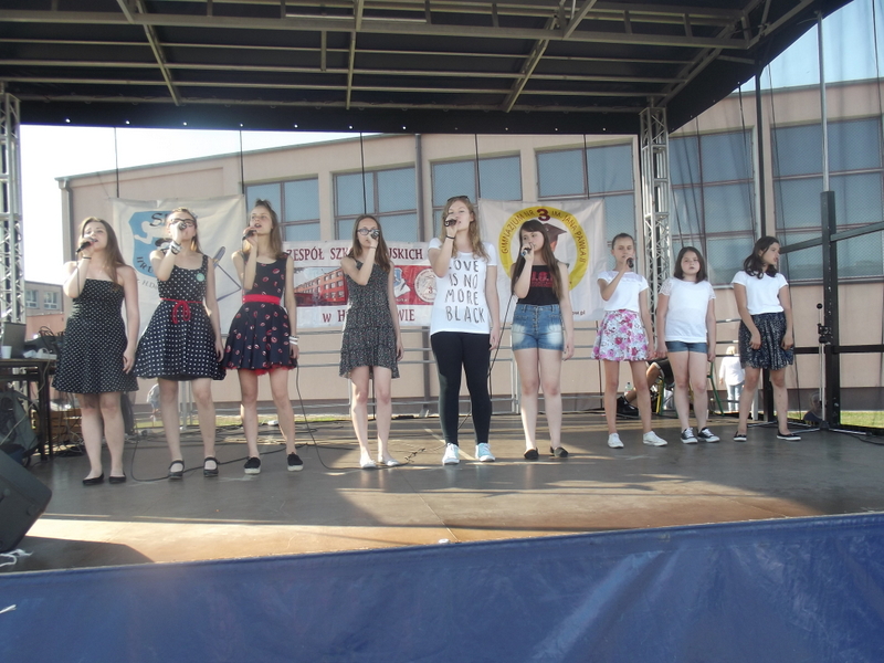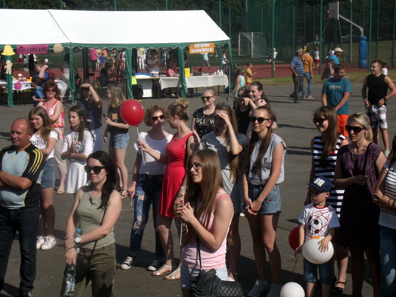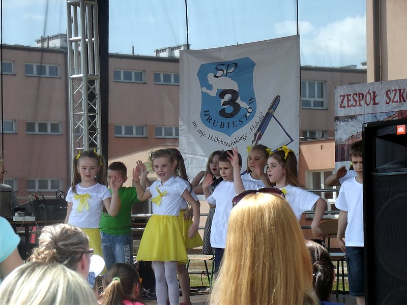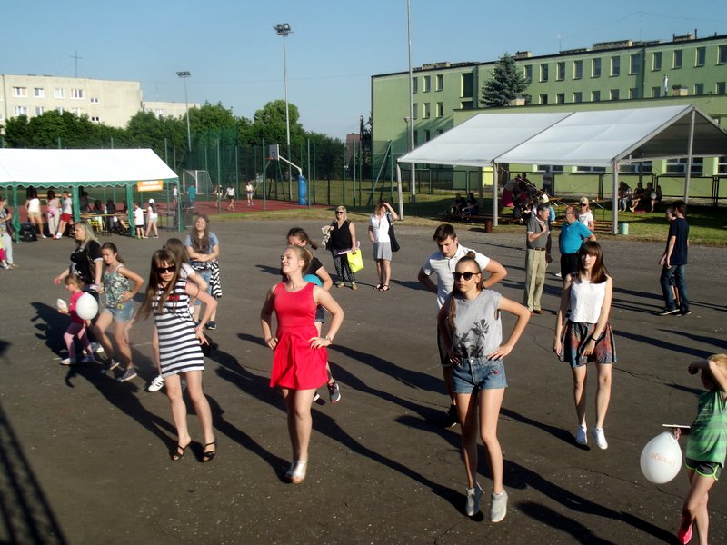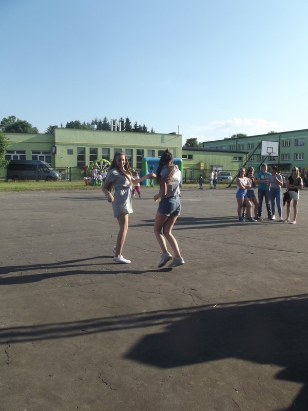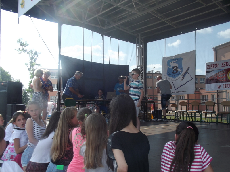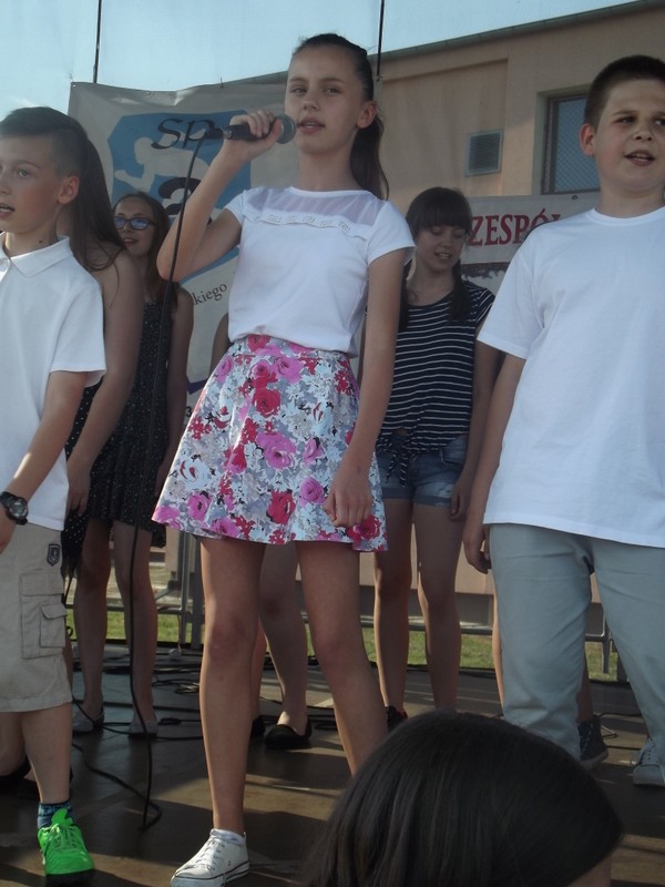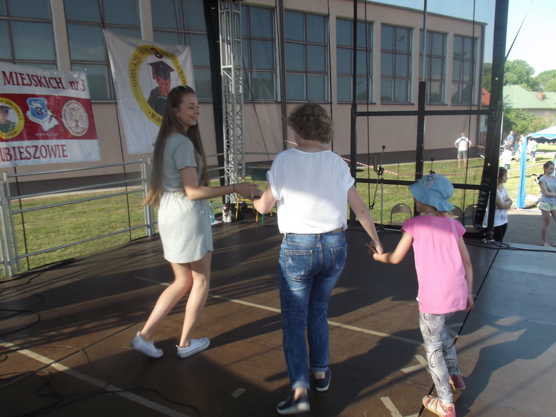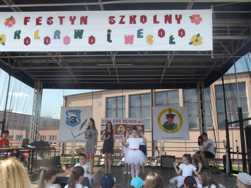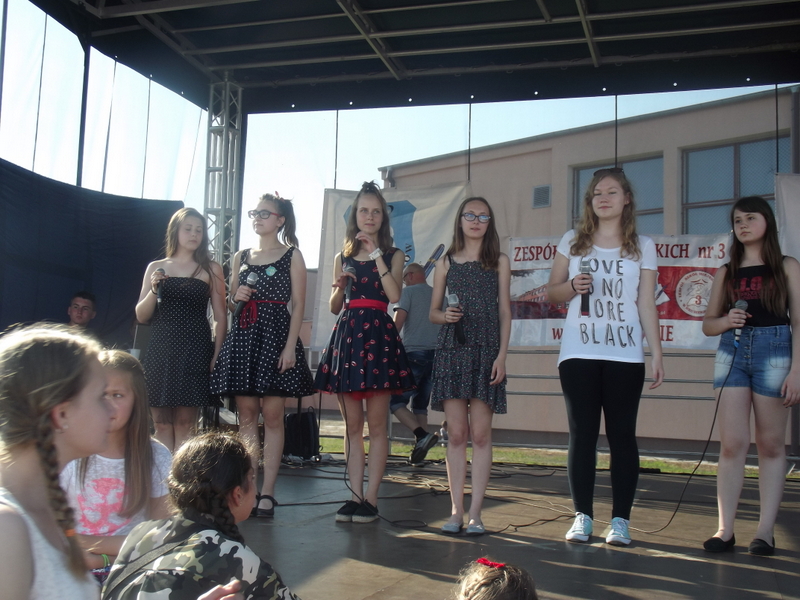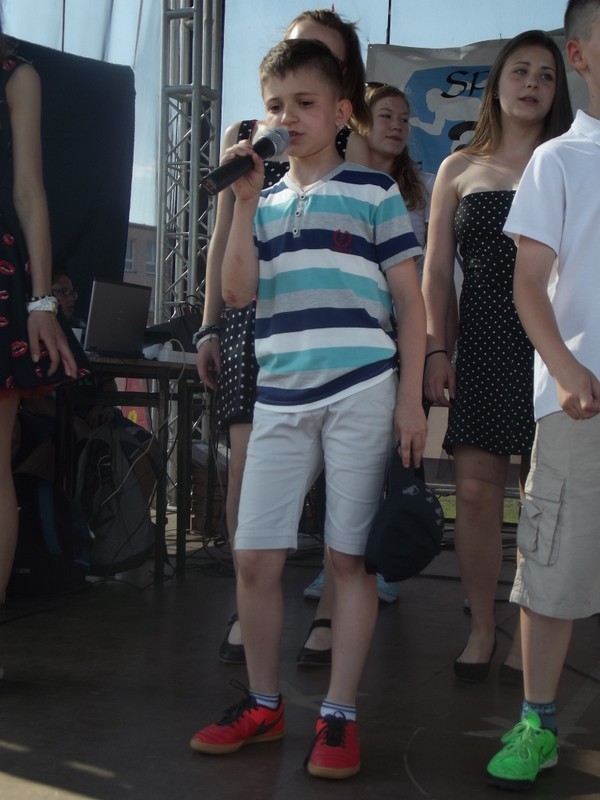 Przez cały czas trwania festynu na scenie prezentowały się poszczególne klasy szkoły podstawowej i gimnazjum oraz zespół wokalny i soliści. Dzieci biorące udział pokazały swoje umiejętności gry na instrumentach, śpiewu i tańca a na boiskach predyspozycji sportowych. W przerwach między występami nie zabrakło „radosnego pląsu” w rytmie „Belgijki”, „Skrzypka” czy „Czekolady”.