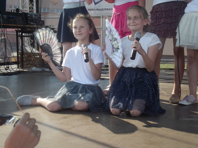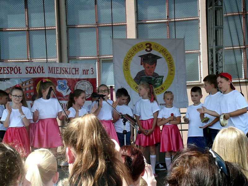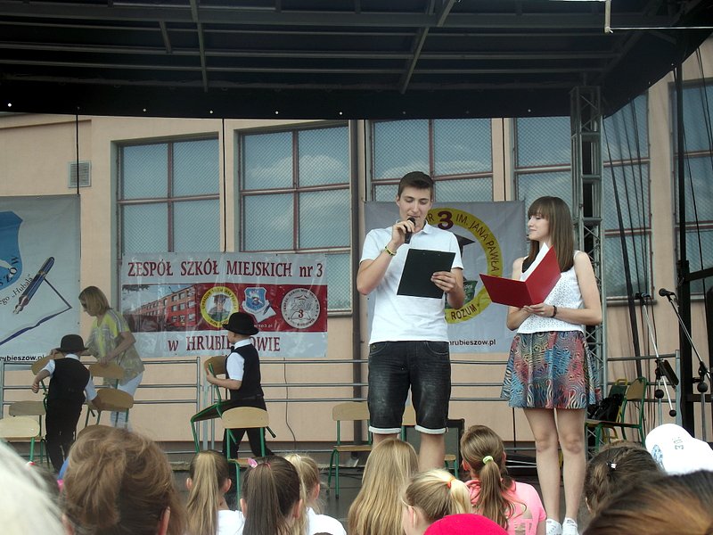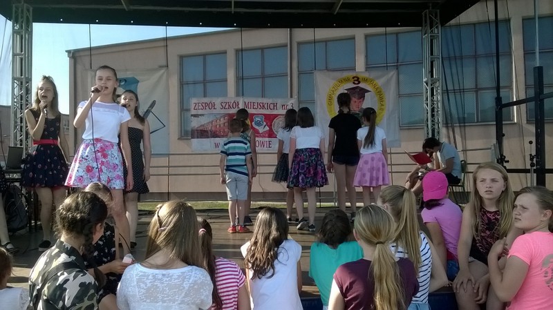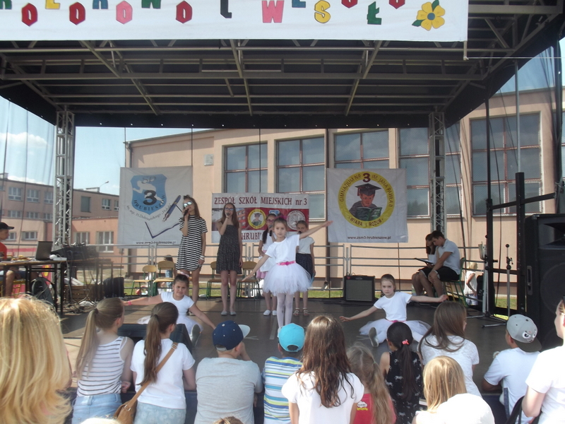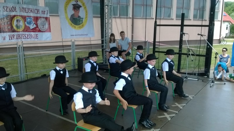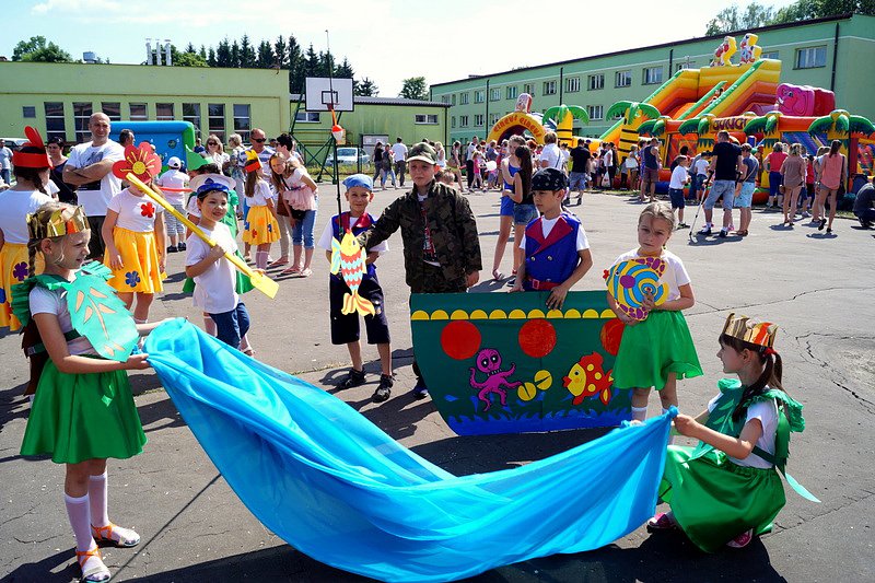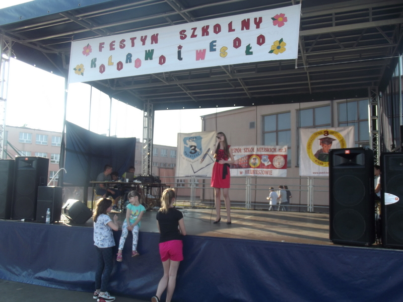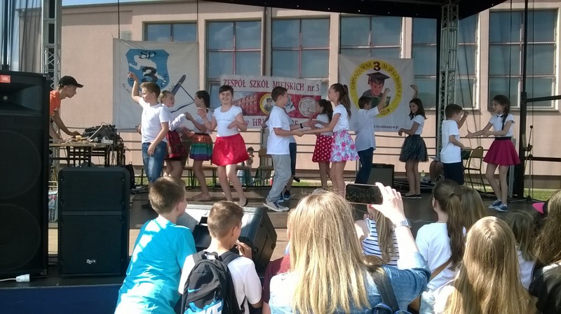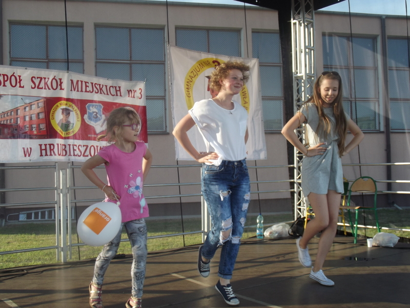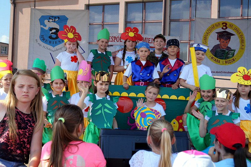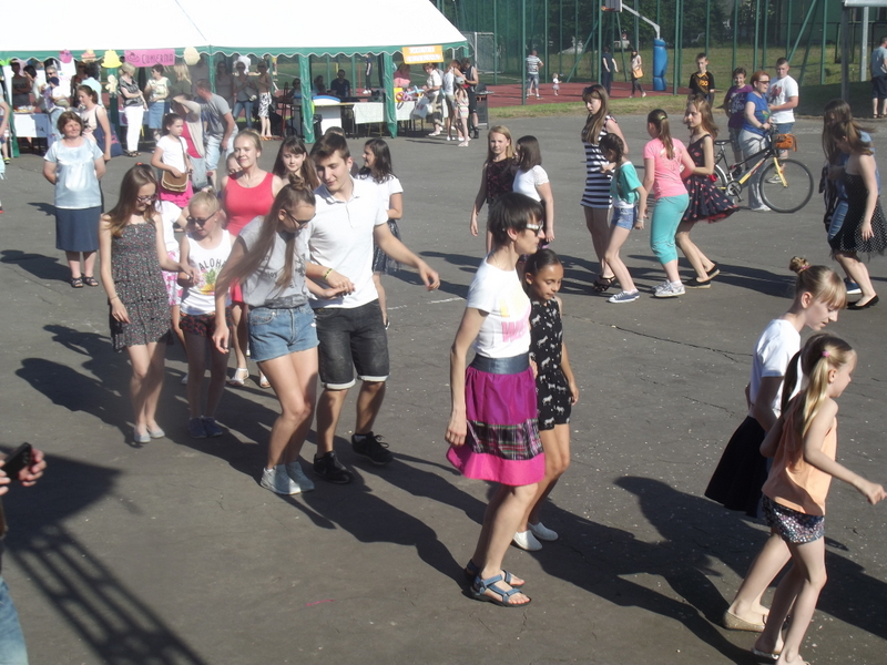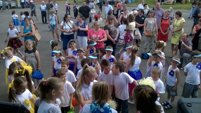 Przez cały czas trwania festynu na scenie prezentowały się poszczególne klasy szkoły podstawowej i gimnazjum oraz zespół wokalny i soliści. Dzieci biorące udział pokazały swoje umiejętności gry na instrumentach, śpiewu i tańca a na boiskach predyspozycji sportowych. W przerwach między występami nie zabrakło „radosnego pląsu” w rytmie „Belgijki”, „Skrzypka” czy „Czekolady”.