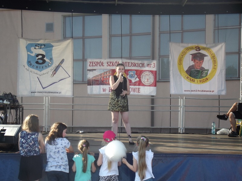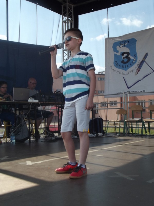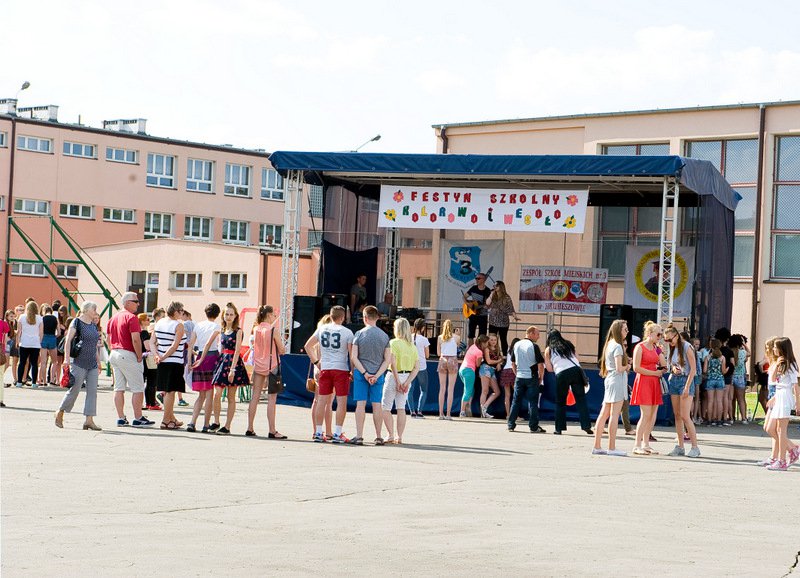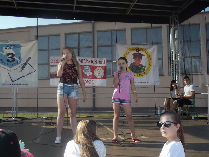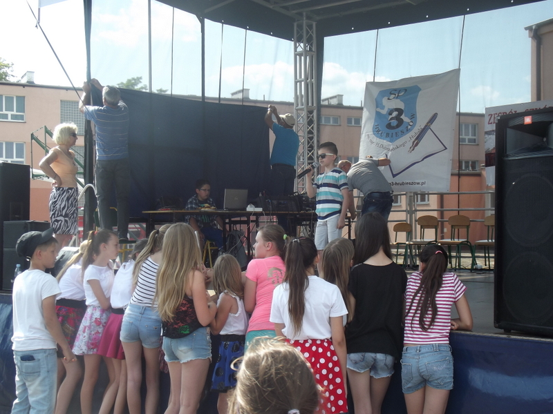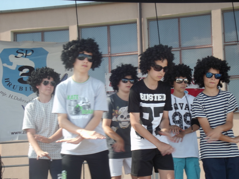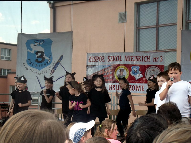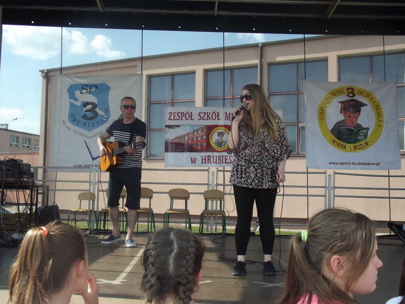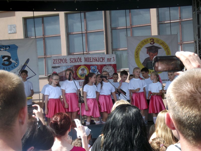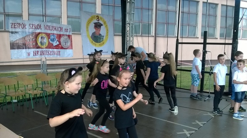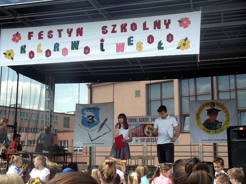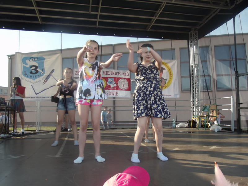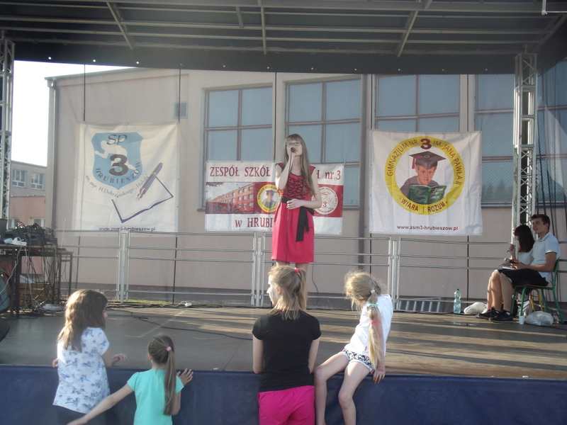 Przez cały czas trwania festynu na scenie prezentowały się poszczególne klasy szkoły podstawowej i gimnazjum oraz zespół wokalny i soliści. Dzieci biorące udział pokazały swoje umiejętności gry na instrumentach, śpiewu i tańca a na boiskach predyspozycji sportowych. W przerwach między występami nie zabrakło „radosnego pląsu” w rytmie „Belgijki”, „Skrzypka” czy „Czekolady”.