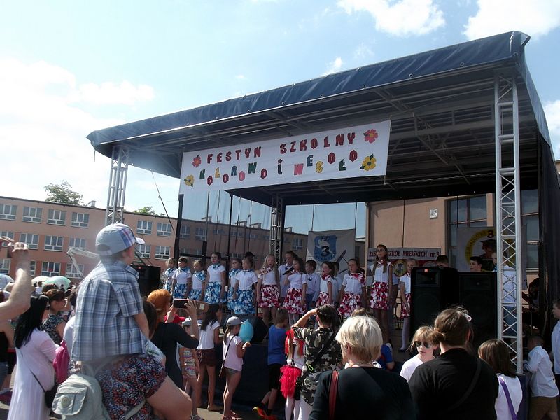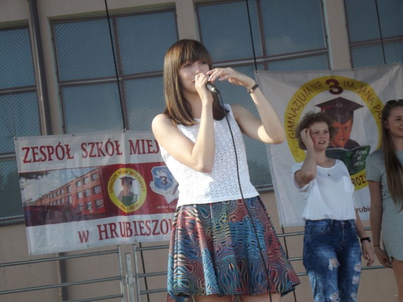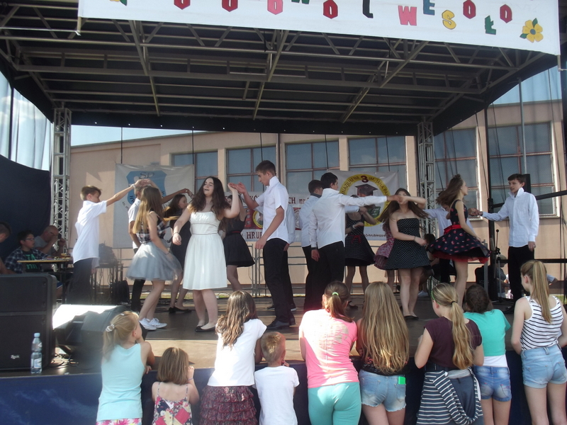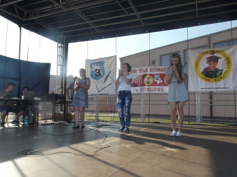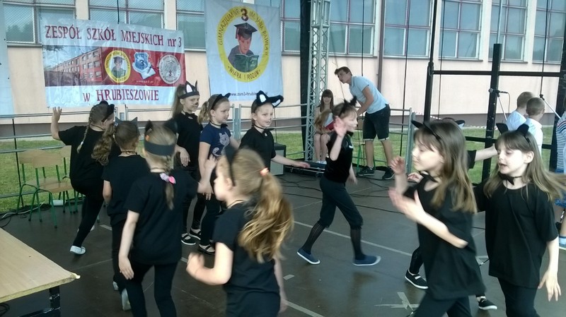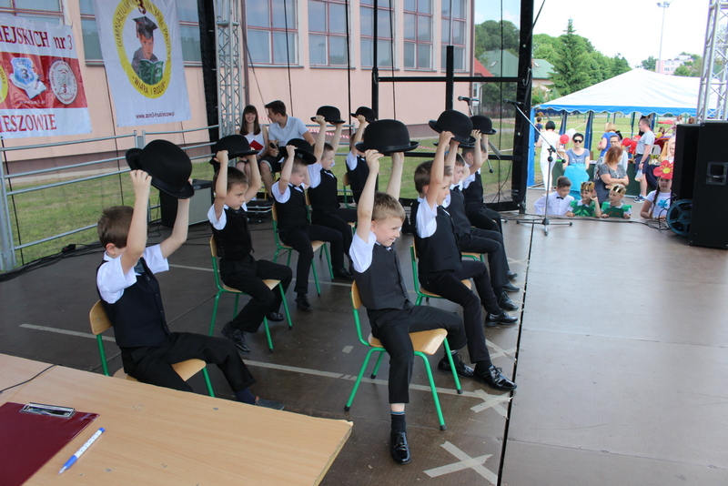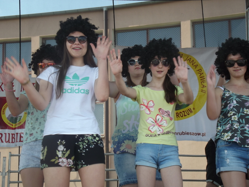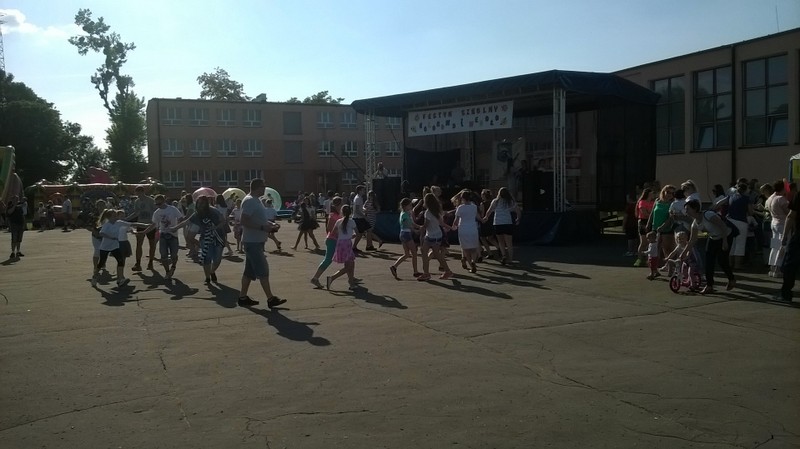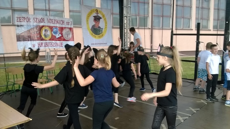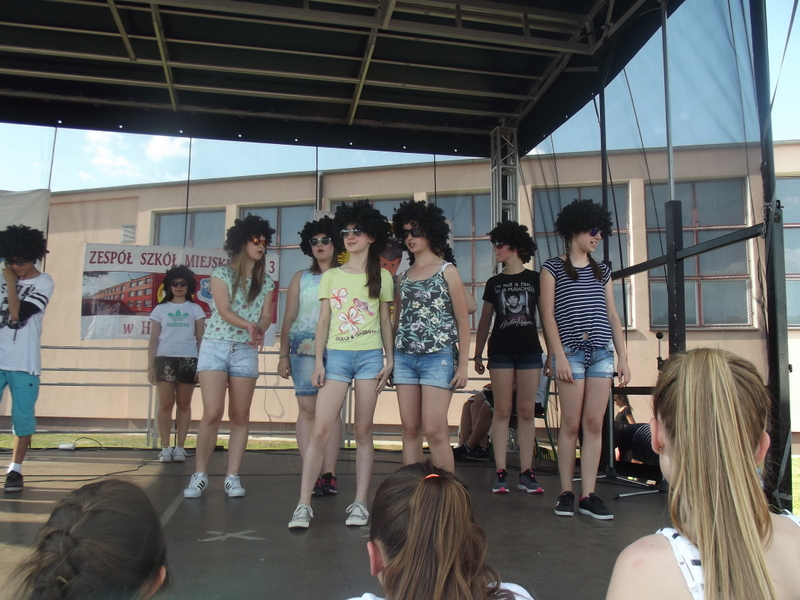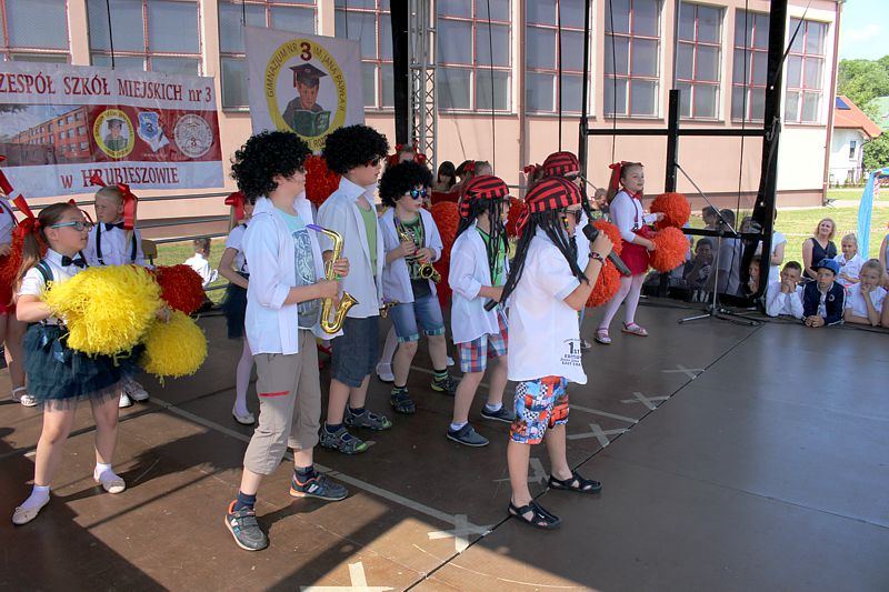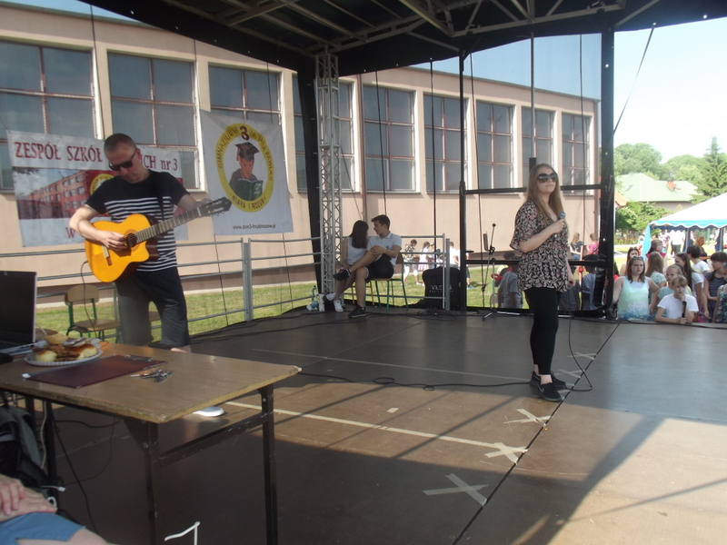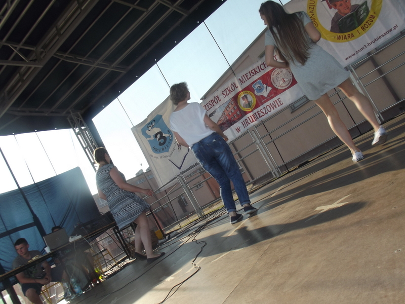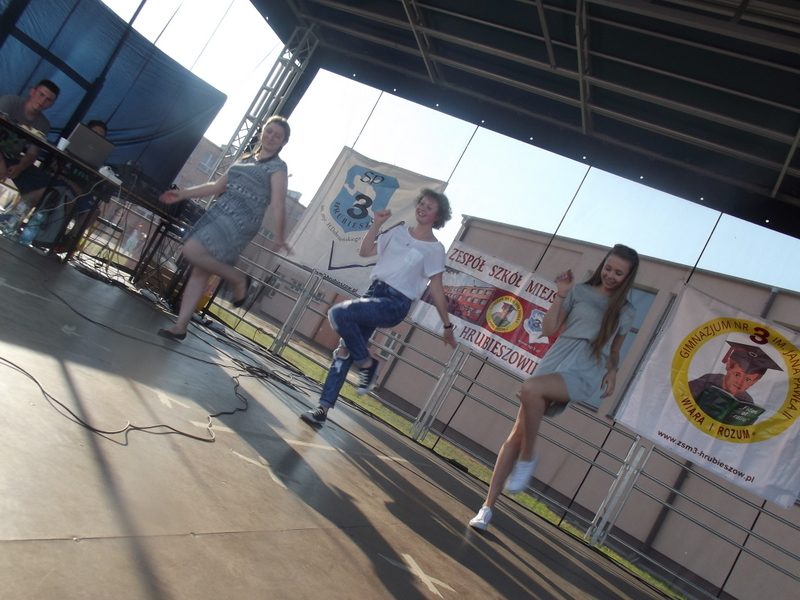Przez cały czas trwania festynu na scenie prezentowały się poszczególne klasy szkoły podstawowej i gimnazjum oraz zespół wokalny i soliści. Dzieci biorące udział pokazały swoje umiejętności gry na instrumentach, śpiewu i tańca a na boiskach predyspozycji sportowych. W przerwach między występami nie zabrakło „radosnego pląsu” w rytmie „Belgijki”, „Skrzypka” czy „Czekolady”.