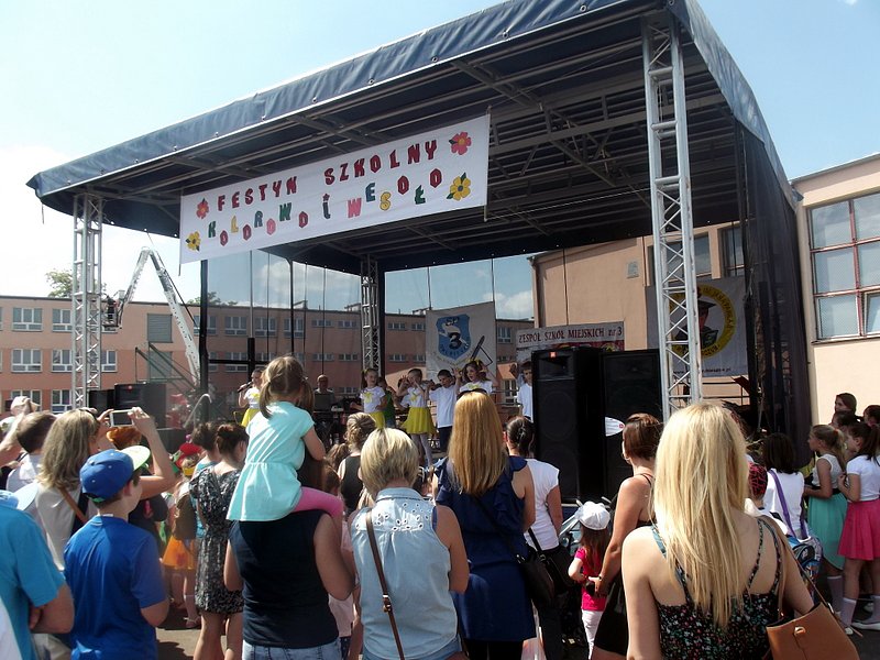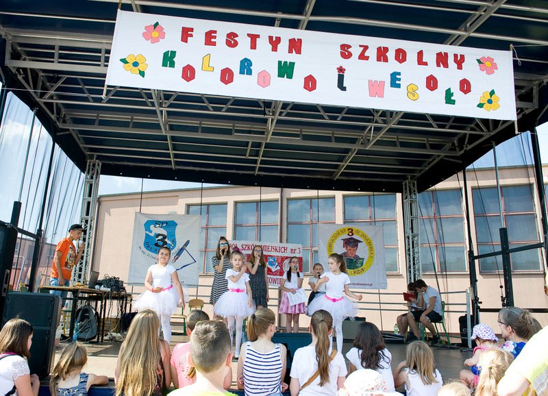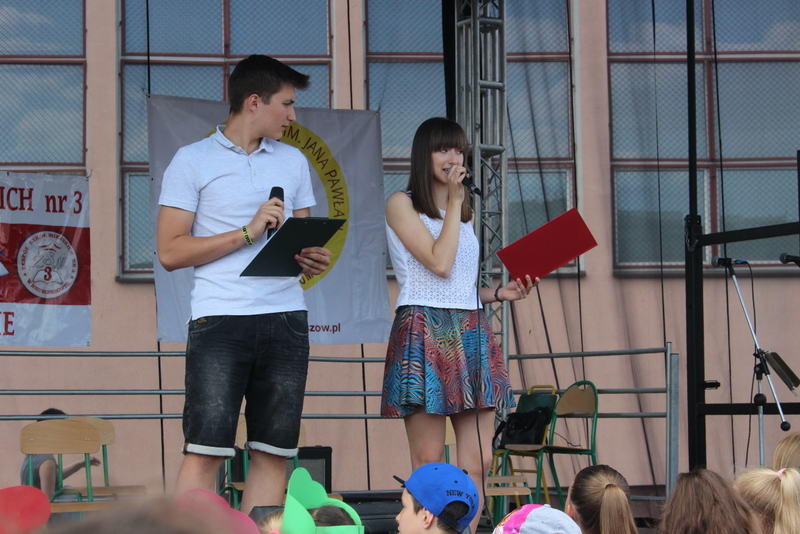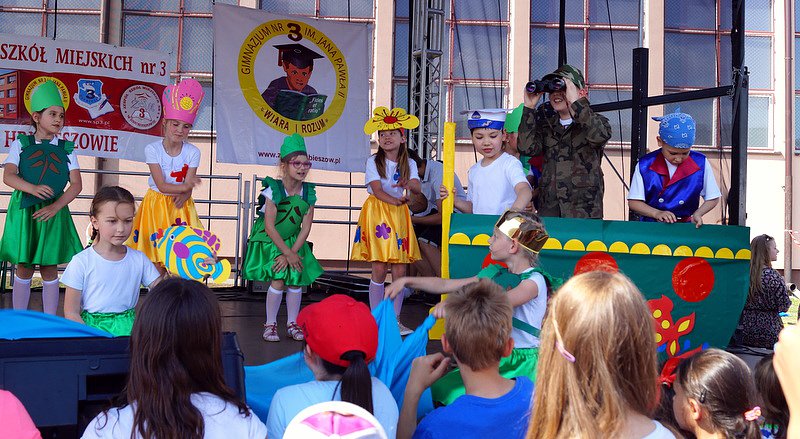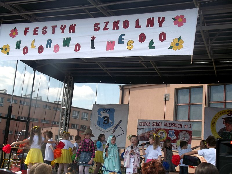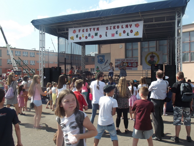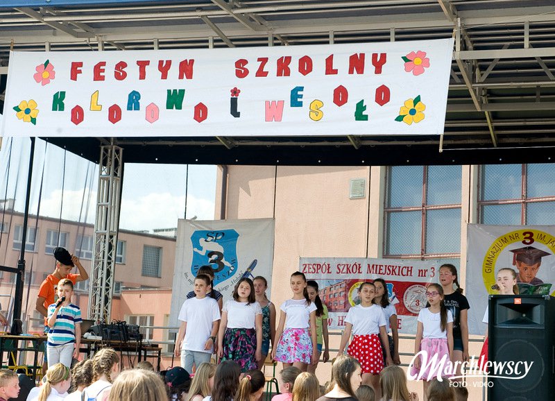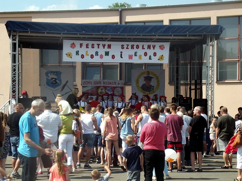Piękna, letnia pogoda 4 czerwca 2016 r. wymuszała wręcz opuszczenie domów i udanie się do miejsca, z którego rozlegał się wesoły gwar. Miejscem tym były boiska szkolne „Trójki”, na których tradycyjnie już z okazji Dnia Dziecka odbywa się Festyn Szkolny pod hasłem „Kolorowo i wesoło”.
