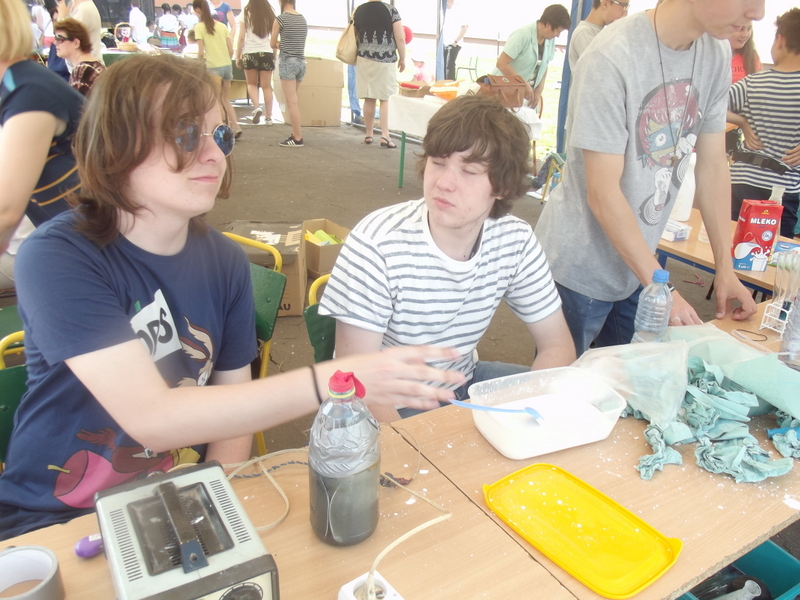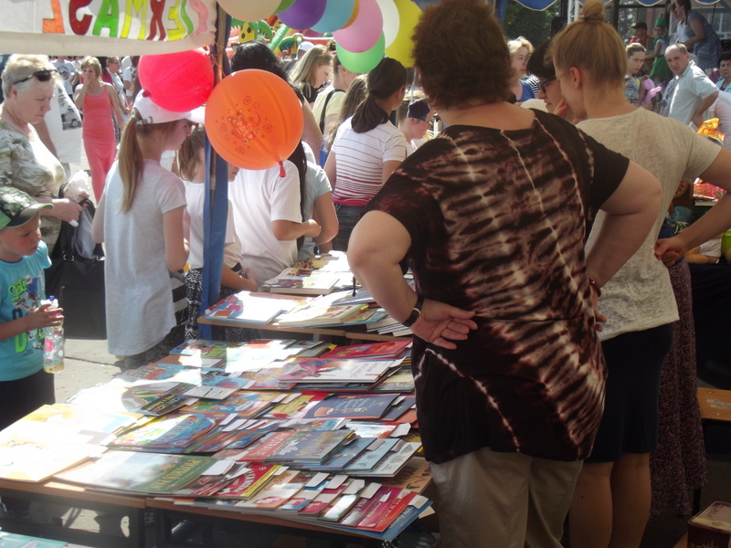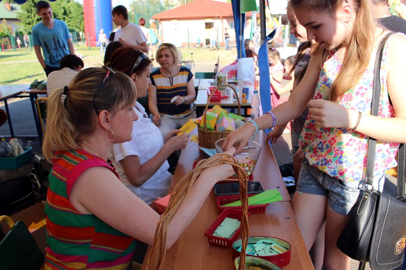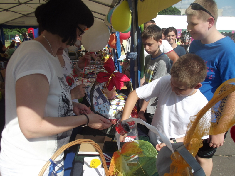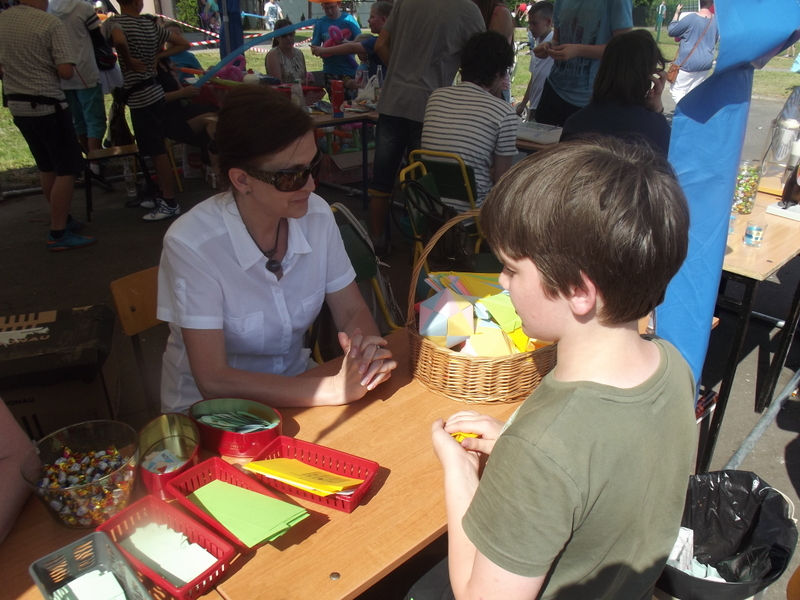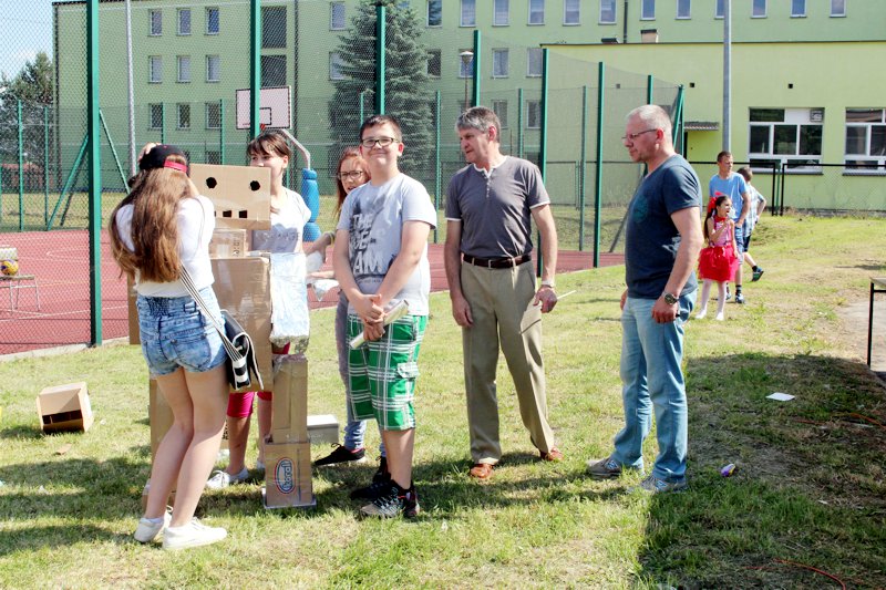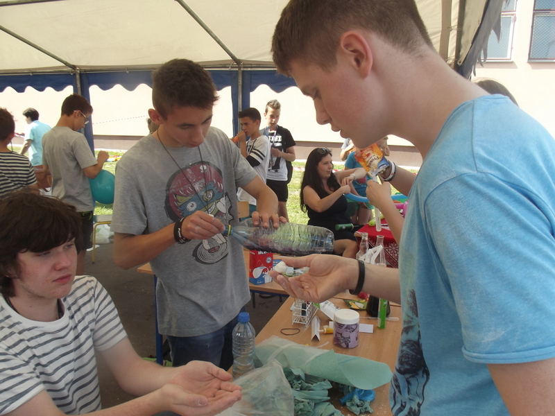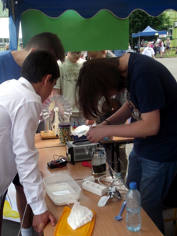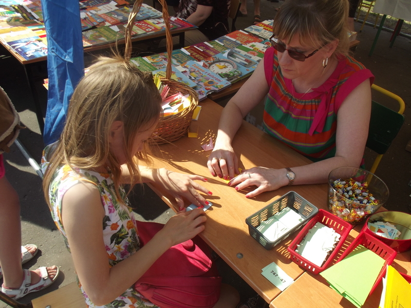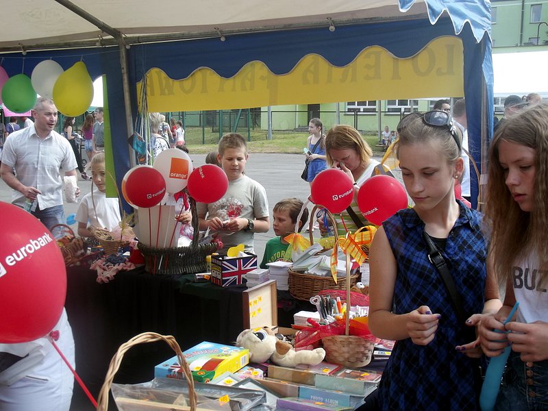 W przygotowaniu i prezentowaniu doświadczeń pomagali uczniowie naszego gimnazjum, którzy mogli zaprezentować i podzielić się swoją wiedzą i umiejętnościami nabytymi podczas nauki w naszej szkole. Uczestnicy festynu świetnie odnajdywali się przy stoisku z książkami. Panie z biblioteki w ramach promocji czytelnictwa przygotowały bogatą ofertę różnorodnych książek, zarówno tych pobudzających wyobraźnię, wywołujących emocje, czy wzbogacających wiedzę. Duży gwar i zainteresowanie wzbudziła loteria fantowa. Każdy chciał spróbować szczęścia. Wśród licytowanych fantów znalazł się m.in.: laptop wylosowany przez uczennicę klasy piątej.