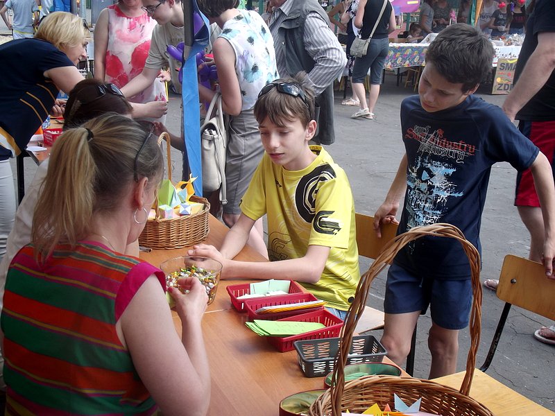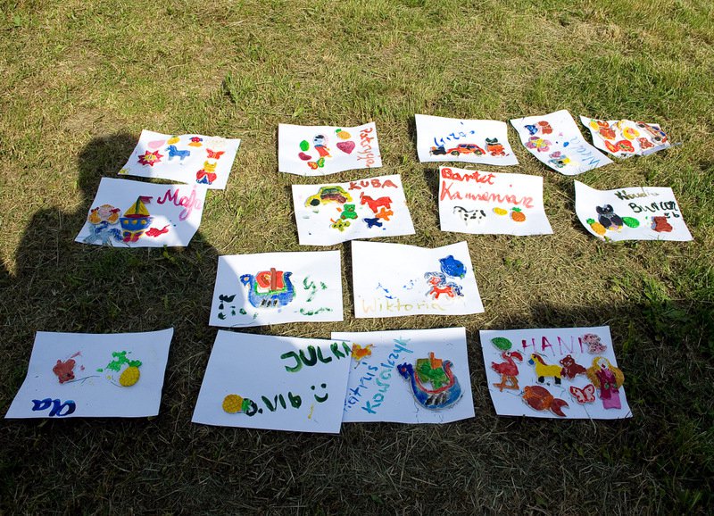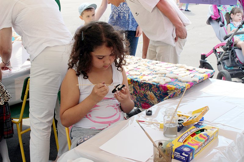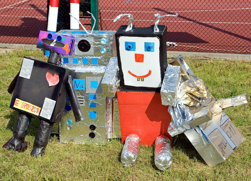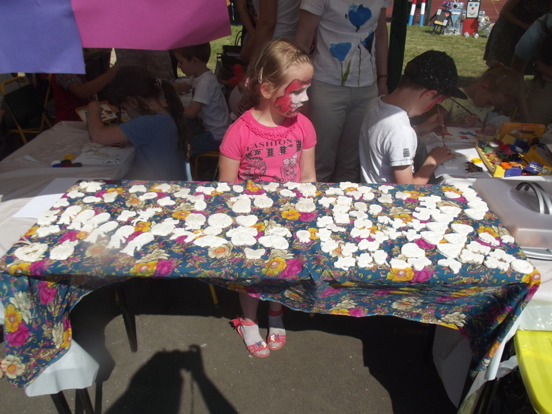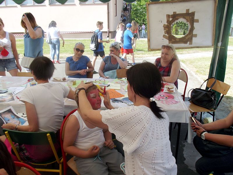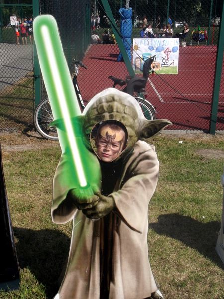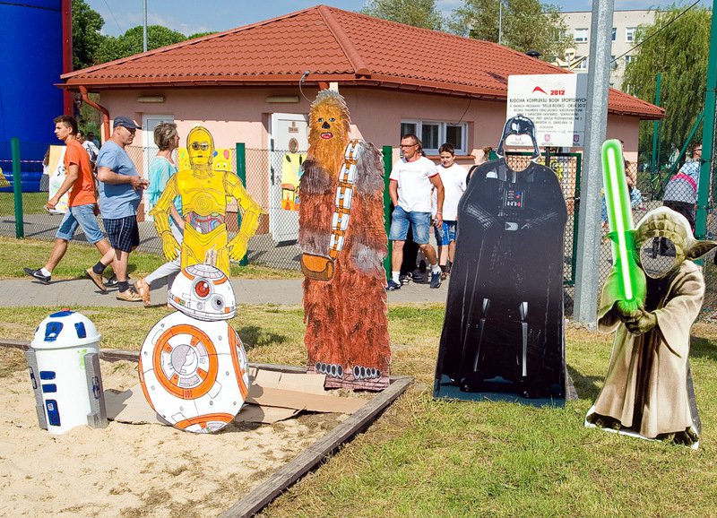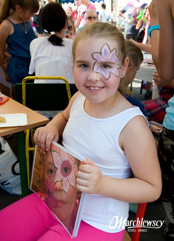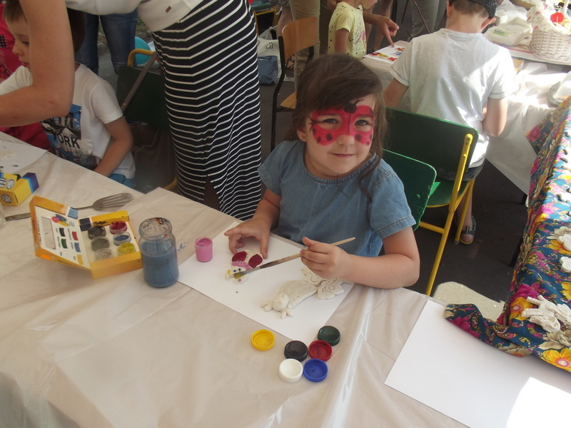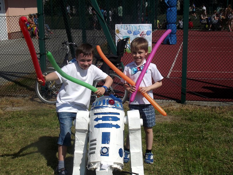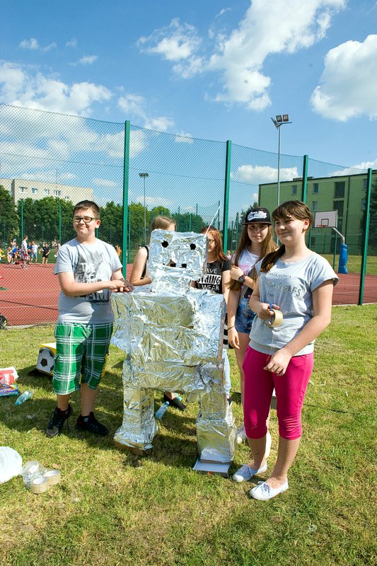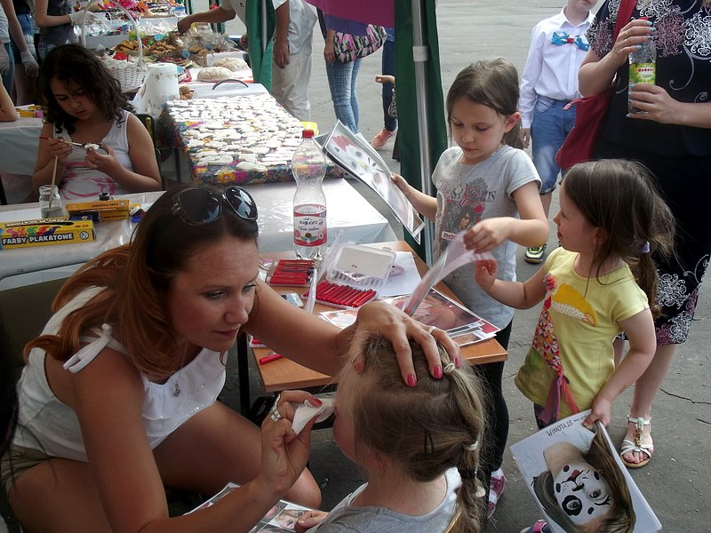 Dzieci chętnie korzystały z pracowni artystycznej, w której można było otrzymać na pamiątkę i własnoręcznie pomalować gipsową figurkę oraz sprawić sobie na twarzy makijaż. Niejeden milusiński opuszczał to miejsce, wcielając się w postać motyla, tygrysa, czy kota. Mali i starsi fani Star Wars mogli odbyć podróż w świat „Gwiezdnych wojen” biorąc udział w zajęciach plastycznych z kolorowankami, przedstawiającymi postacie z bajek i filmów tej serii, a ponadto przy makietach bohaterów „Gwiezdnych wojen” zrobić pamiątkowe zdjęcie. Chętni mieli okazję budować roboty z makulatury i pudełek. Wynik ich pracy był imponujący. Przy wejściu na boiska orlik można było podziwiać uczniowskie prace, które zostały zrobione na plastyce w minionym roku szkolnym, zachęcające do nauki naszej szkole. Zainteresowaniem cieszyło się również skręcanie figur z baloników oraz biegi w łączonych potrójnych spodniach. W zabawie uczestniczyły najmłodsze dzieci.