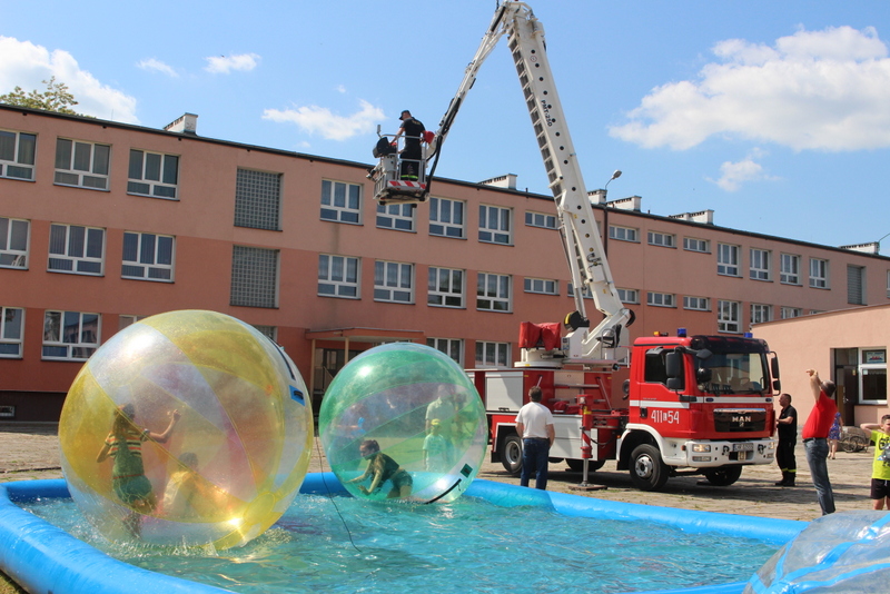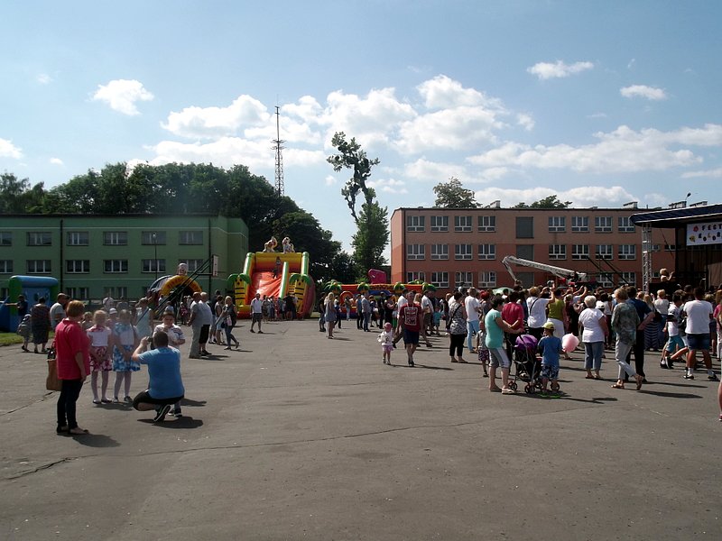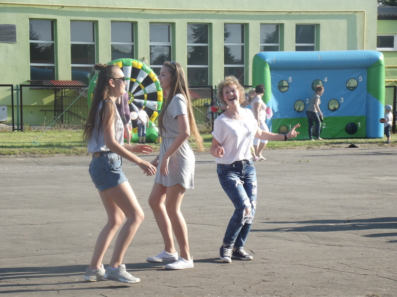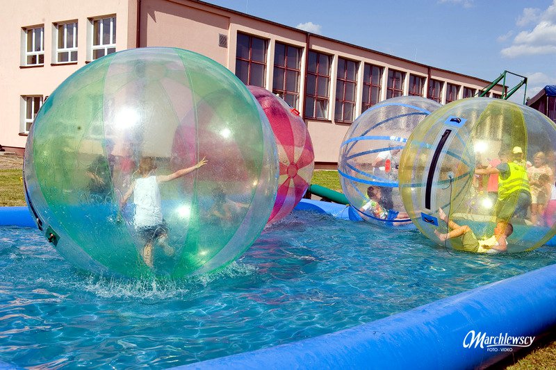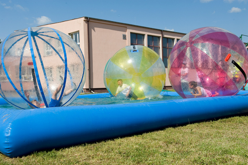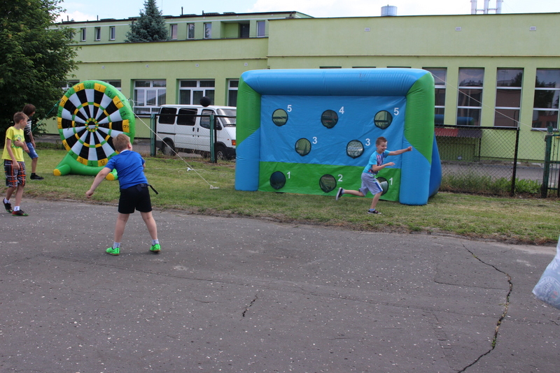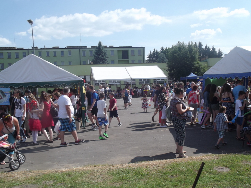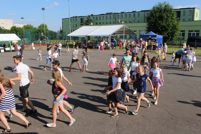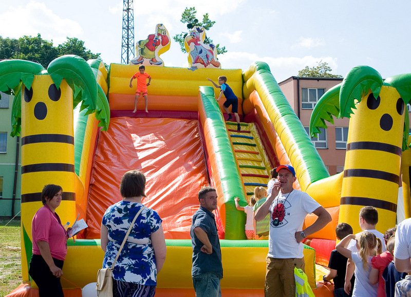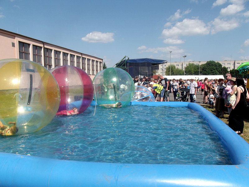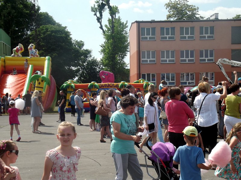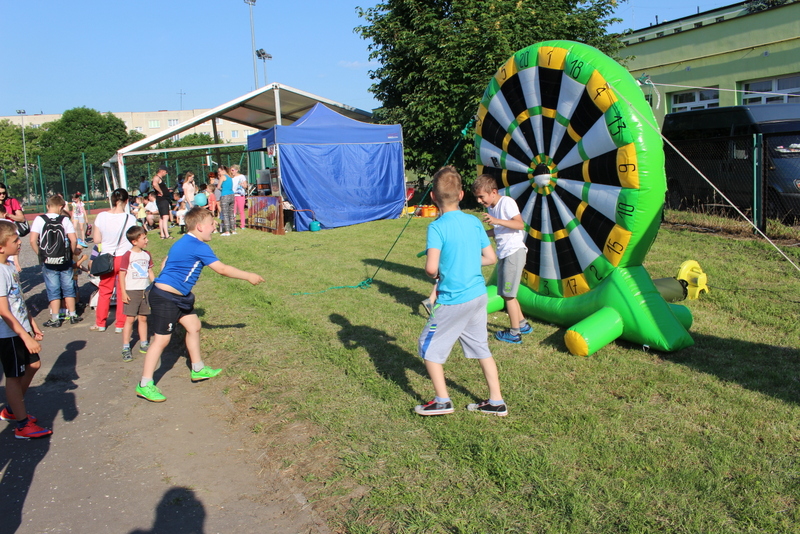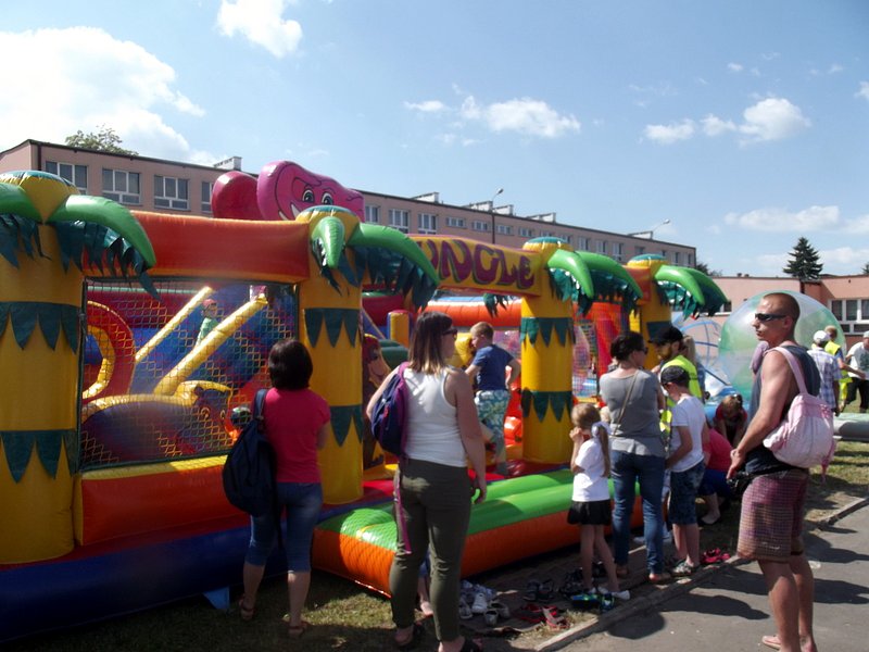 Po oficjalnym rozpoczęciu festynu przez dyrektor Danutę Krawczuk, która powitała wszystkich obecnych szkolny plac opanowała dobra muzyka i świetna zabawa. Prowadzący imprezę - absolwenci szkoły Katarzyna Szlonzak i Albert Gardyński zachęcali do korzystania z poszczególnych atrakcji, wśród których były dmuchańce: zjeżdżalnia, plac zabaw Dżungla, basen z ogromnymi przezroczystymi kulami typu „waterball”, w których dzieci wirowały wykonując różne akrobacje.
