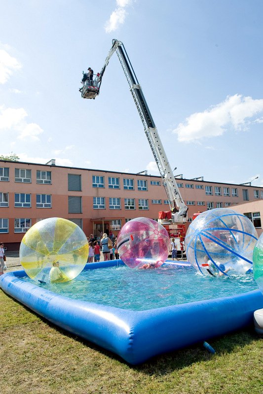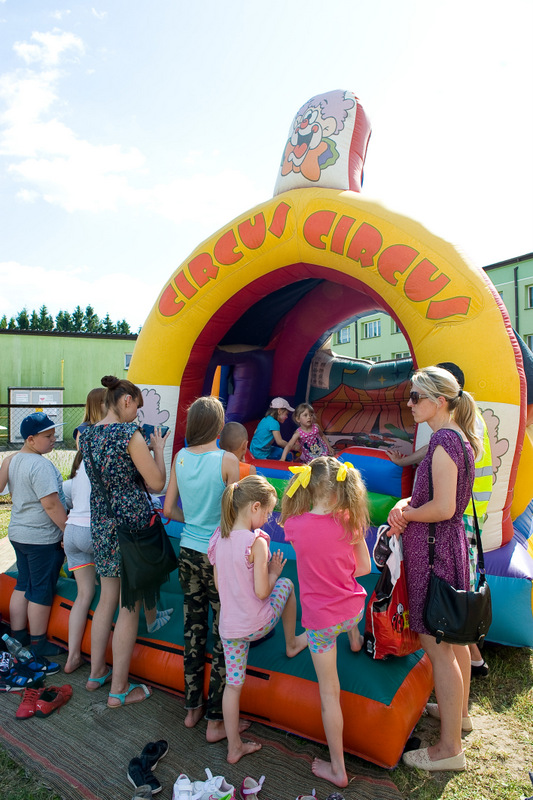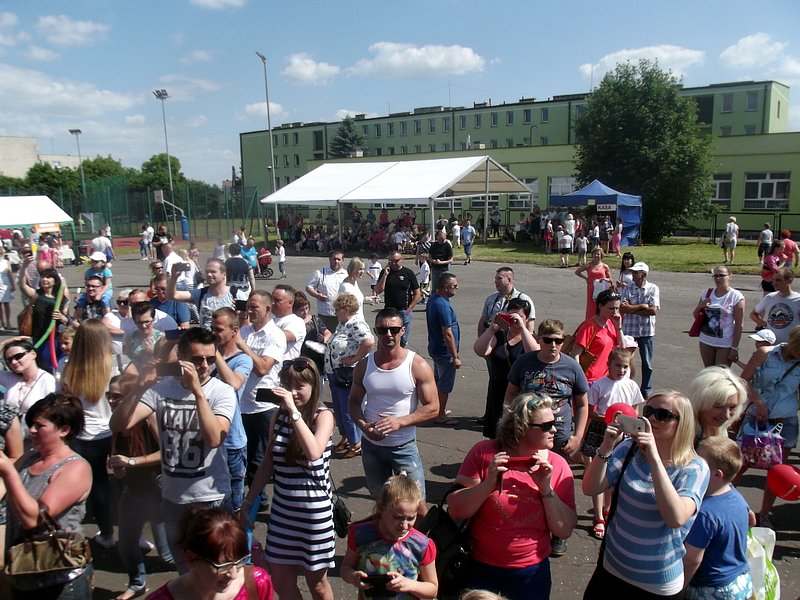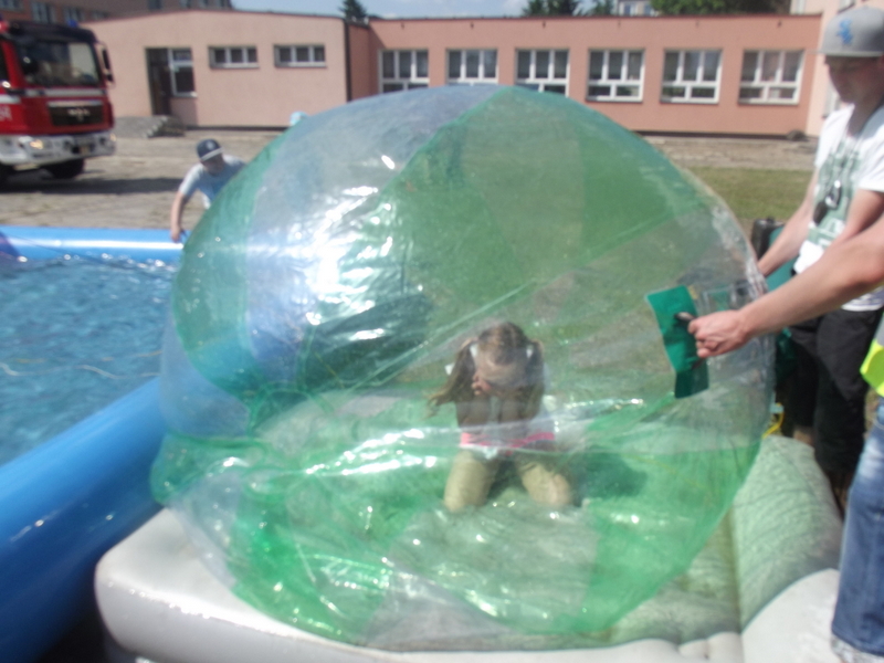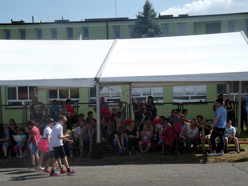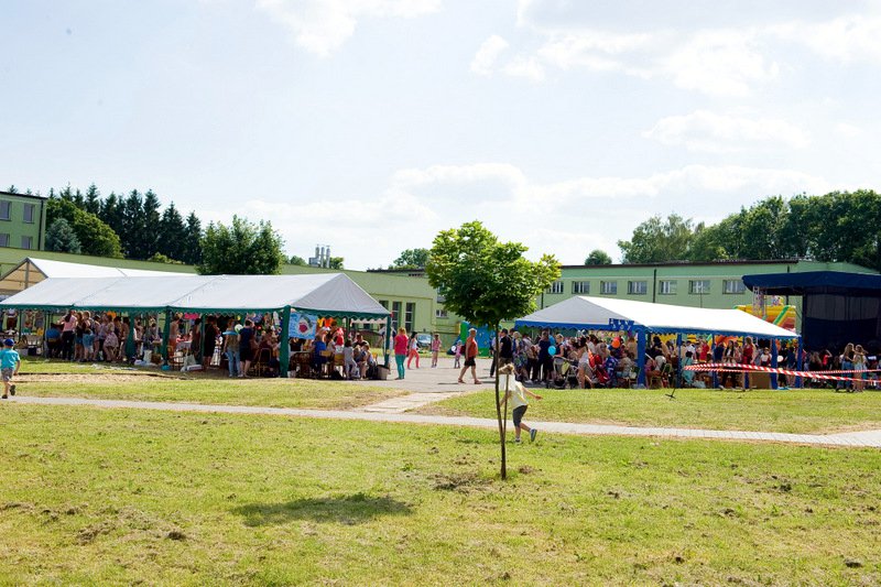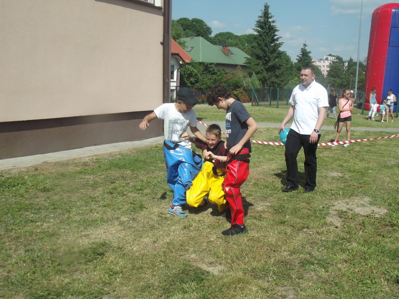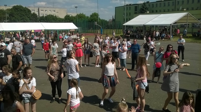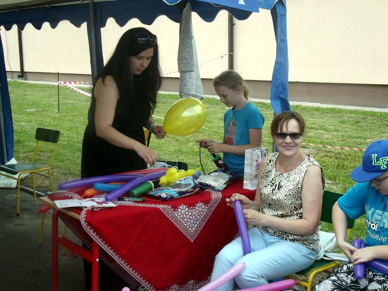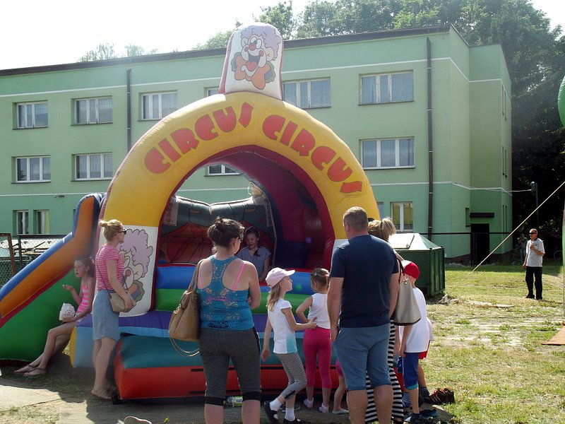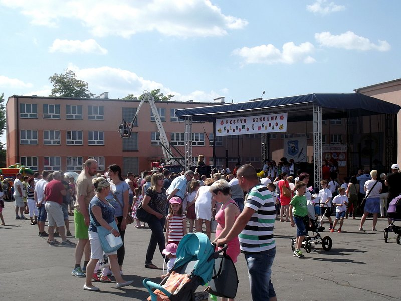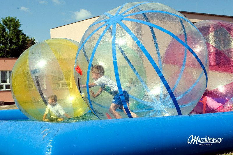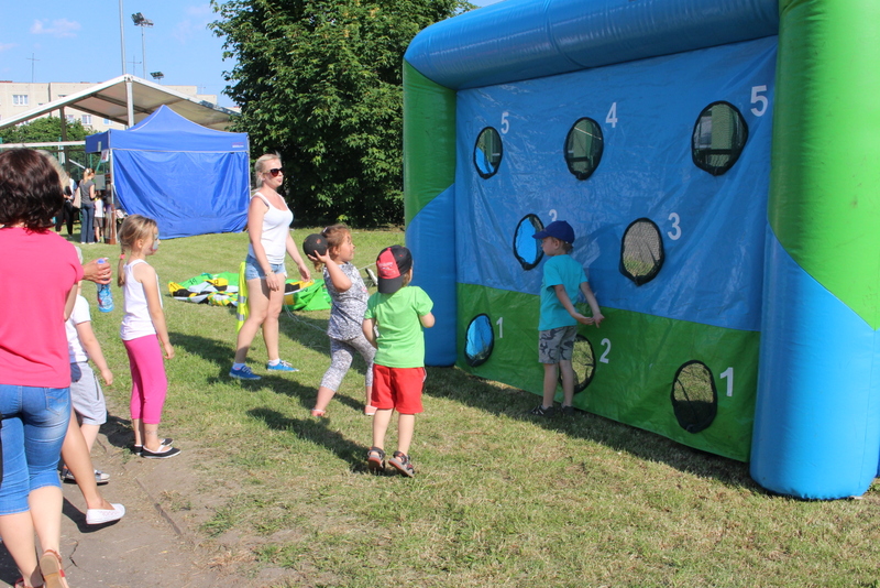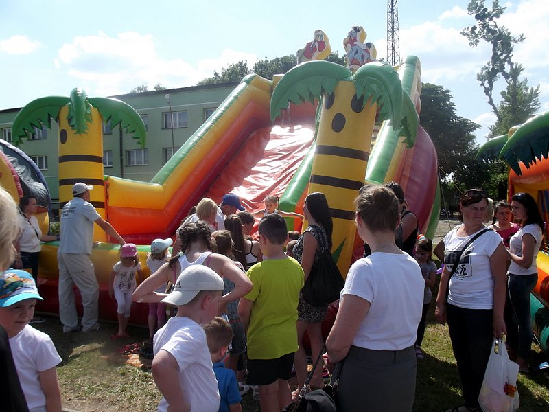 Po oficjalnym rozpoczęciu festynu przez dyrektor Danutę Krawczuk, która powitała wszystkich obecnych szkolny plac opanowała dobra muzyka i świetna zabawa. Prowadzący imprezę - absolwenci szkoły Katarzyna Szlonzak i Albert Gardyński zachęcali do korzystania z poszczególnych atrakcji, wśród których były dmuchańce: zjeżdżalnia, plac zabaw Dżungla, basen z ogromnymi przezroczystymi kulami typu „waterball”, w których dzieci wirowały wykonując różne akrobacje.
