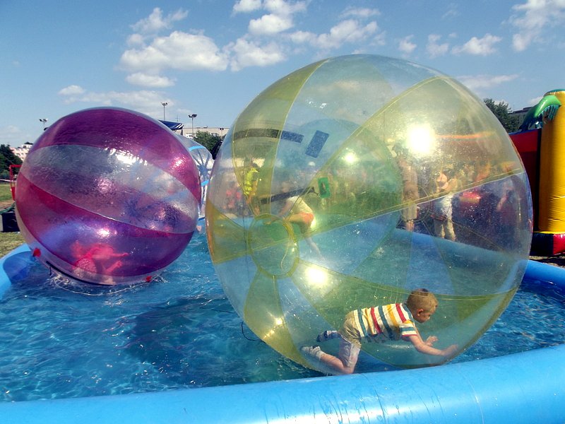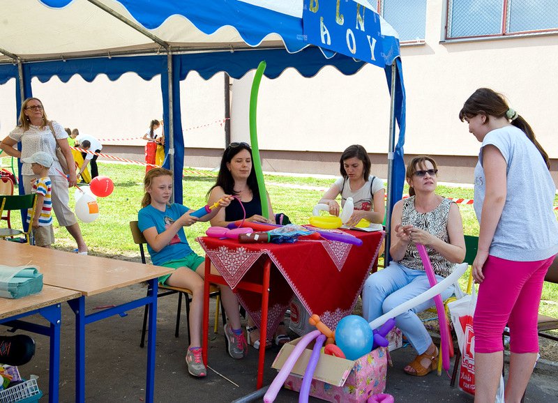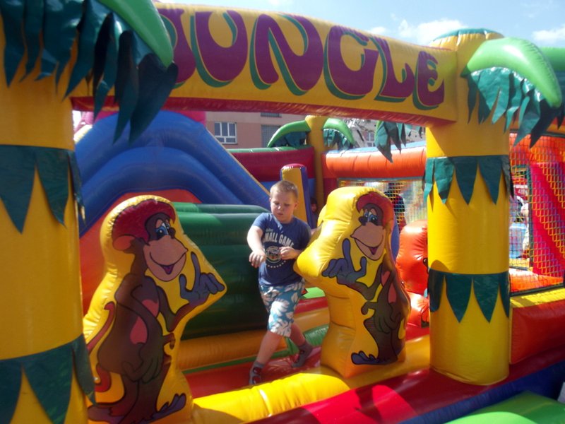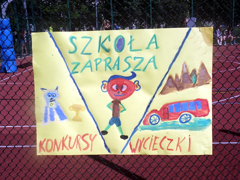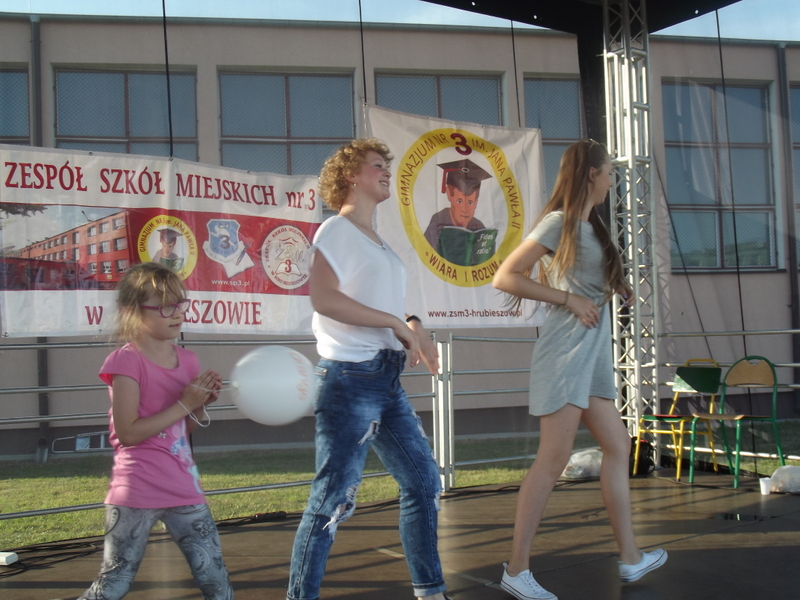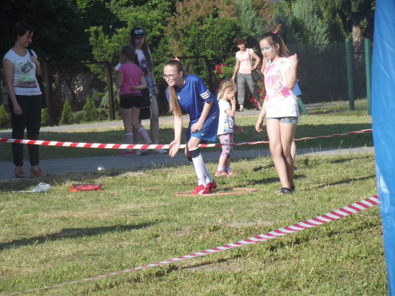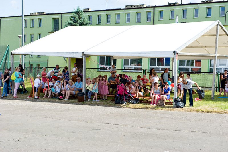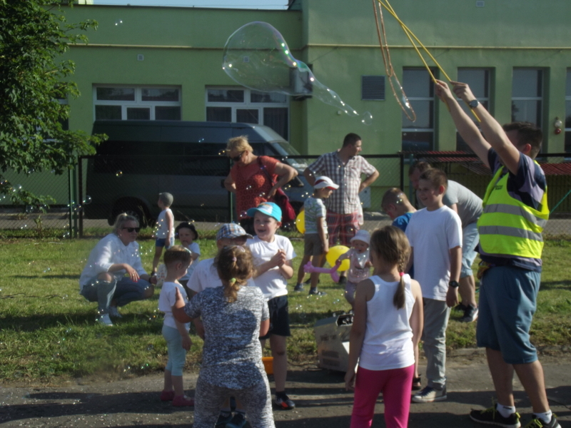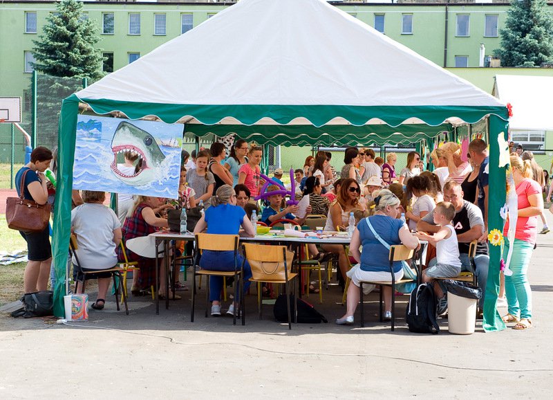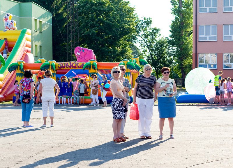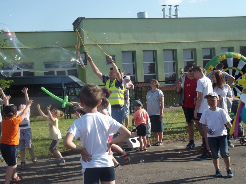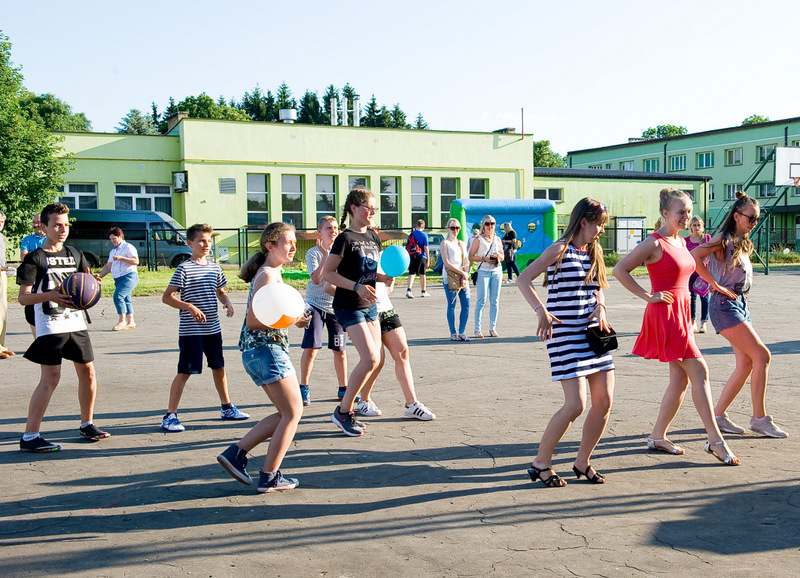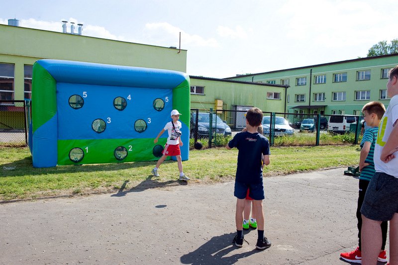 Po oficjalnym rozpoczęciu festynu przez dyrektor Danutę Krawczuk, która powitała wszystkich obecnych szkolny plac opanowała dobra muzyka i świetna zabawa. Prowadzący imprezę - absolwenci szkoły Katarzyna Szlonzak i Albert Gardyński zachęcali do korzystania z poszczególnych atrakcji, wśród których były dmuchańce: zjeżdżalnia, plac zabaw Dżungla, basen z ogromnymi przezroczystymi kulami typu „waterball”, w których dzieci wirowały wykonując różne akrobacje.