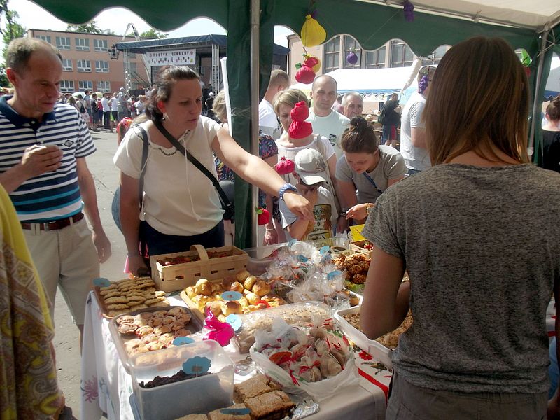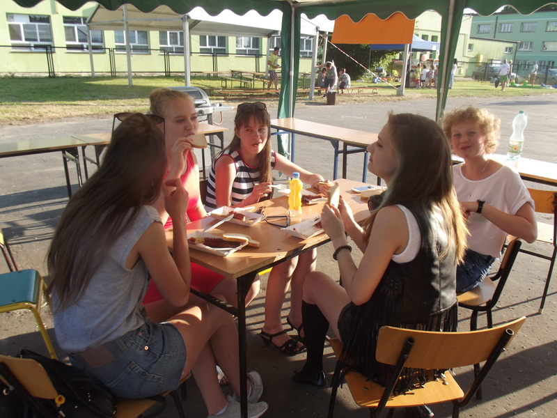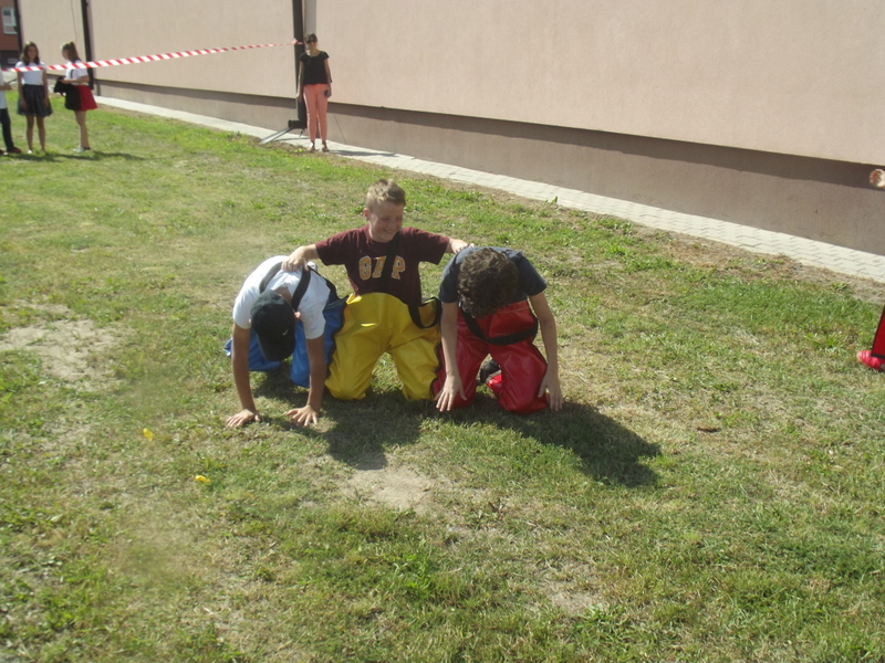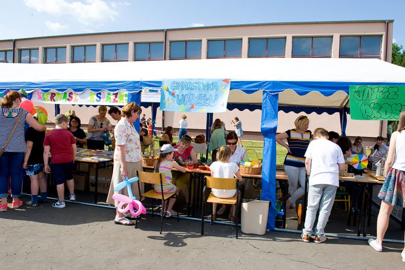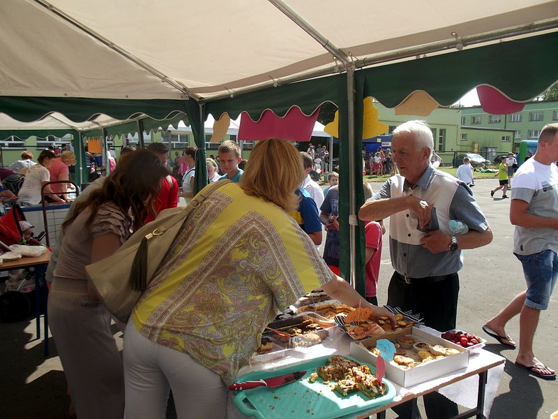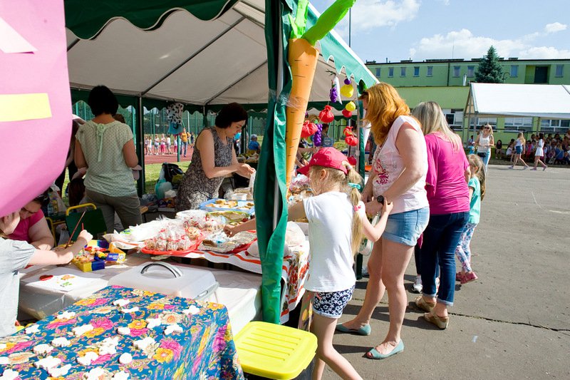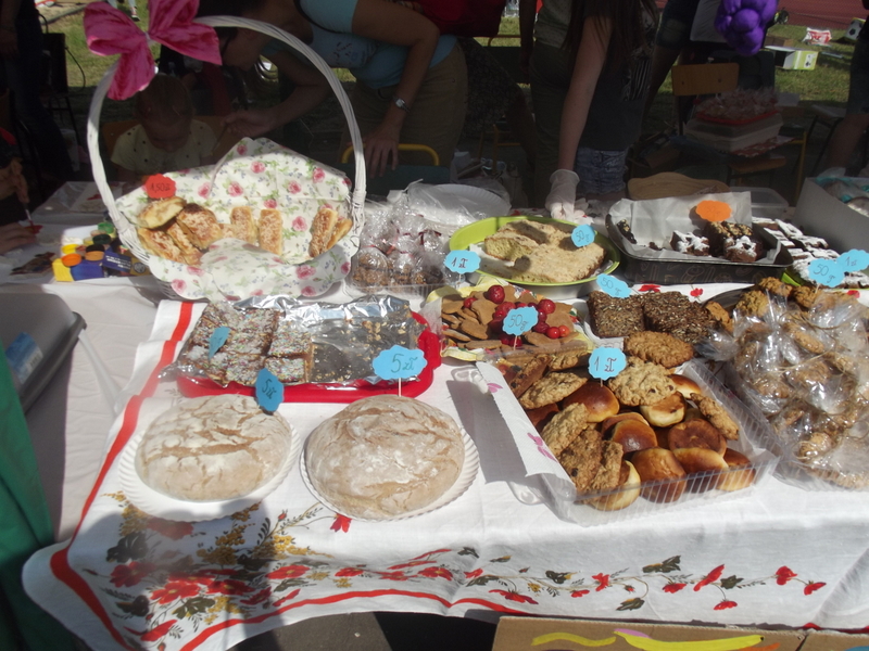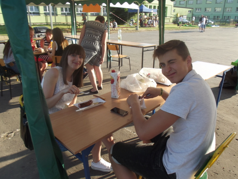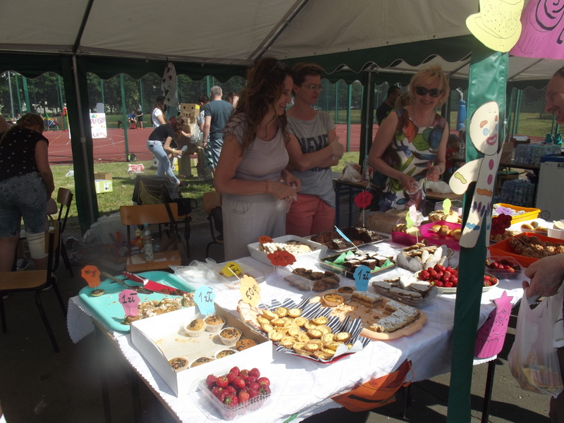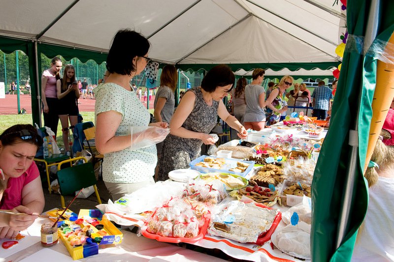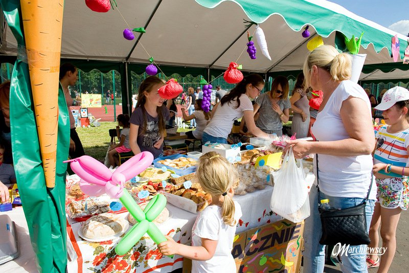 Stoiska ze zdrową żywnością i ciastem kusiły uczestników festynu aromatem i wyglądem smacznych i słodkich wypieków, do kupienia za symboliczną złotówkę. Przygotowały je mamy uczniów i grono nauczycielskie. O żołądki uczestników zadbała także kuchnia szkolna oferując tradycyjnie smaczne, gorące kiełbaski, pyszne paszteciki. Sklepik szkolny zaopatrywał w wodę i orzeźwiające lody. Goście chętnie kupowali watę cukrową i popcorn. Wszystkie pochłonięte kalorie można, a nawet trzeba było spalić w konkurencjach sportowych, poprowadzonych z zaangażowaniem i dawką humoru przez nauczycieli wychowania fizycznego. W pasie zieleni koło sali gimnastycznej odbył się konkurs w Kule Boule, ciekawa gra, która polega na rzucaniu z wytyczonego okręgu metalowymi kulami (bulami) o wadze ok. 700 g , w kierunku małej drewnianej kulki zwanej potocznie „świnką” . Zadaniem graczy było umieszczenie swojej buli bliżej świnki lub wybicie buli przeciwnika. W zabawie zwycięża ten gracz , którego kula stoi najbliżej świnki.