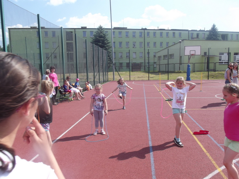 Na czerwonym orliku odbywały się atrakcje dla najmłodszych grup wiekowych. Dzieciom dzielnie dopingowali rodzice i dziadkowie. Dla ośmioosobowych reprezentacji klas nauczyciele wychowania fizycznego przygotowali wyścigi rzędów, podczas których dzieci mogły uczestniczyć w takich konkurencjach jak biegi ze slalomem, biegi sztafetowe, rzuty woreczkami do celu, zabawy z kozłowaniem piłki. Każda drużyna otrzymała Certyfikat uczestnictwa.