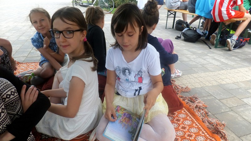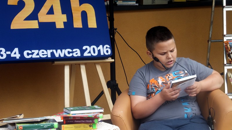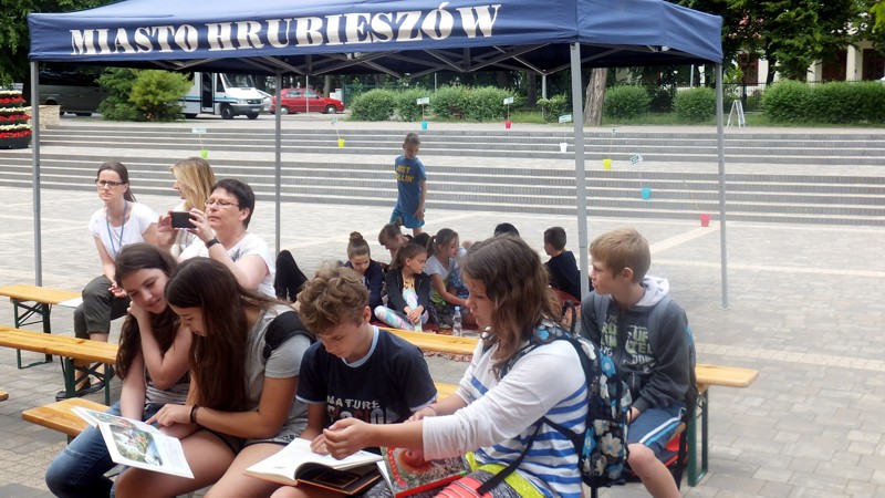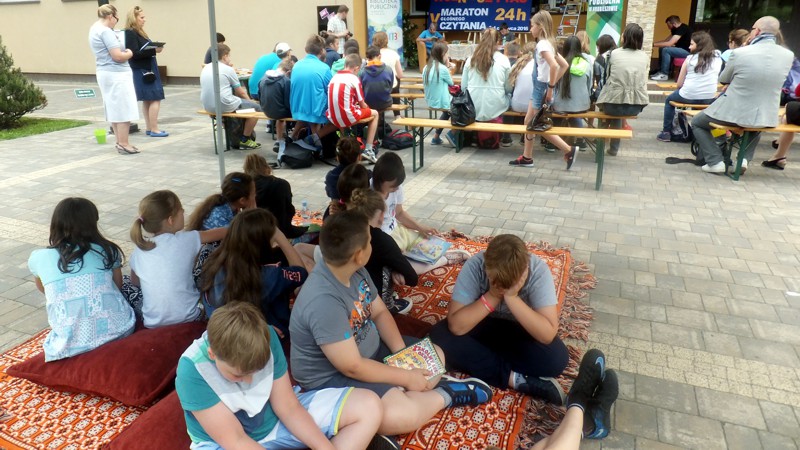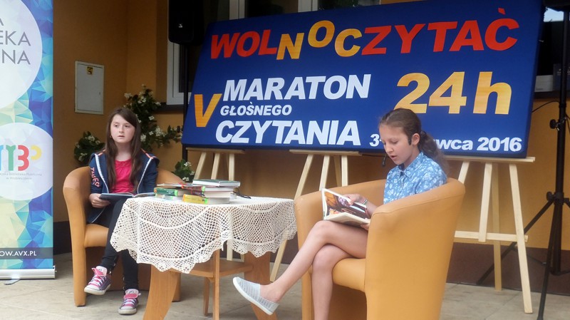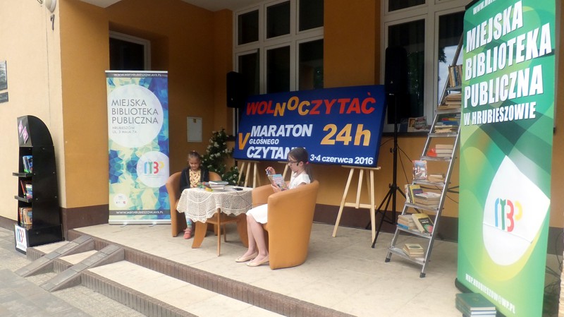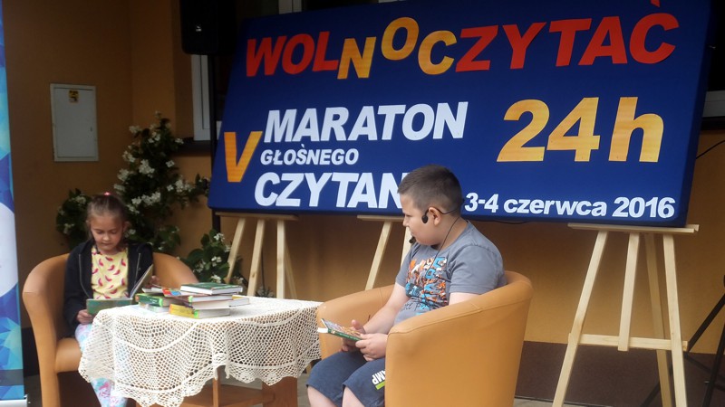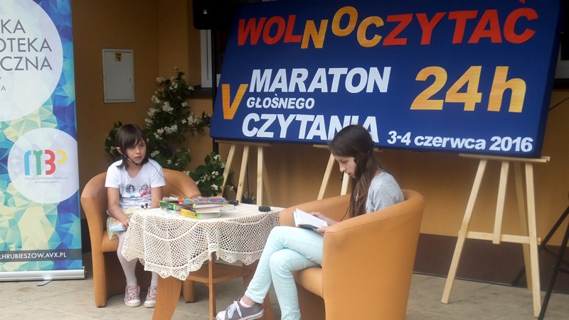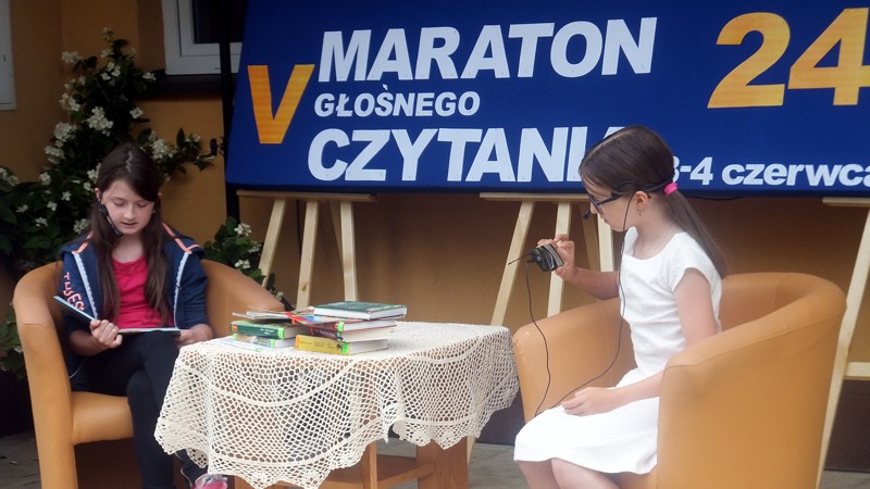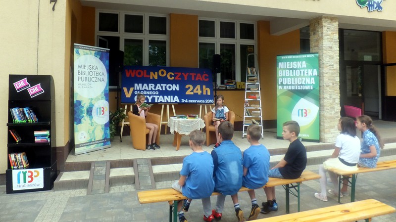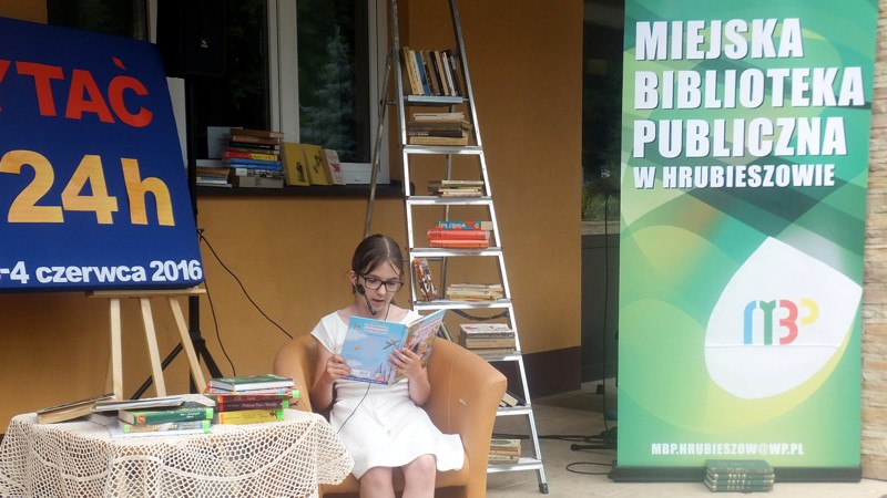 „Wolno Czytać 24 h” to hasło Maratonu Głośnego Czytania, który Miejska Biblioteka Publiczna w Hrubieszowie zorganizowała w dniach 3- 4 czerwca. Aby maraton trwał bez ustanku z naszej szkoły udało się przed siedzibę HDK kilka klas. Wśród nich była kl. IV b. Uczniowie mieli możliwość wyboru książek i przeczytania ich fragmentów przed grupą, która składała się zarówno z dzieci jak i dorosłych.