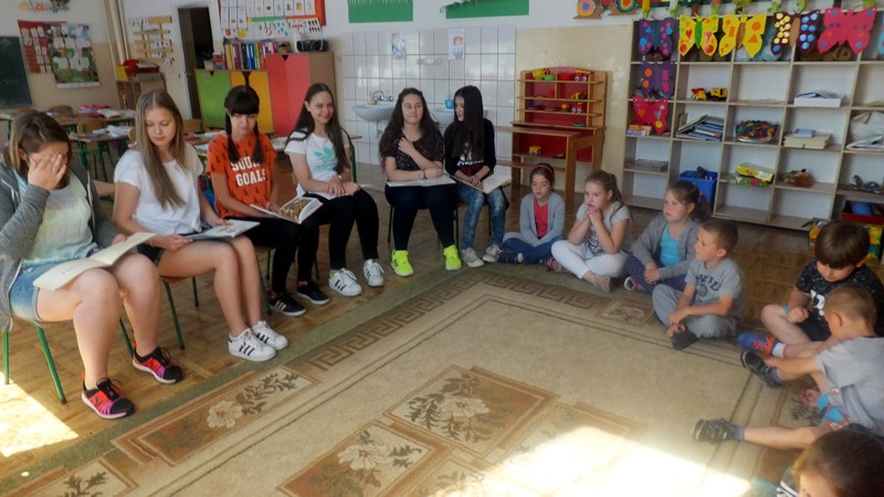 Zauroczeni wyobraźnią autorów baśni i powieści wszyscy z uwagą wsłuchiwali się w słowa, by choć na chwilę przenieść się do innego świata. Dnia 7 czerwca przedstawiciele Samorządu Uczniowskiego w ramach akcji „Cała Polska Czyta Dzieciom” udali się na lekcję do klasy I d, prowadzonej przez p. Alicję Ryszkowską. Uczennice przygotowały dla uczniów przede wszystkim popularne utwory polskich poetów, by przy okazji zaciekawić młodych słuchaczy poezją. Po skończonej prezentacji dzieci otrzymały od starszych koleżanek pamiątkowe kartki.