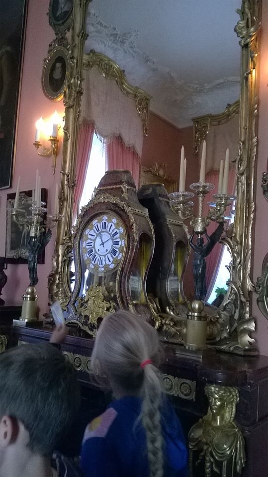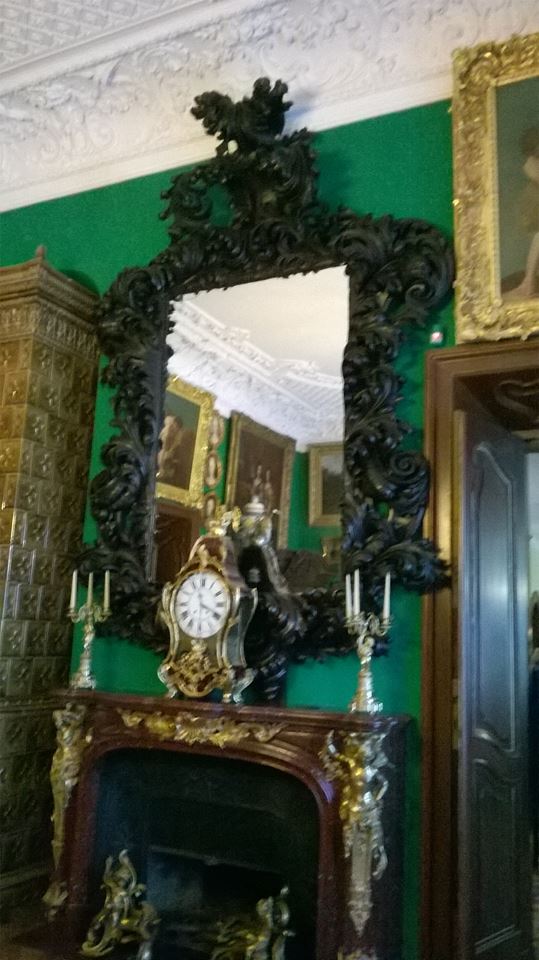Następnie zwiedziliśmy powozownię ekspozycję poświęconą dawnym podróżom, na której można zobaczyć historyczne pojazdy konne z XIX i początku XX wieku oraz różnego typu uprzęże końskie, zabytkowe siodła i akcesoria jeździeckie, szereg ciekawych przedmiotów podróżnych oraz ciekawostki z dziedziny sportu i turystyki. Z zaciekawieniem odwiedziliśmy także Kaplicę wzniesioną w latach 19031909. Wzorowana była na kaplicy królewskiej w Wersalu, skąd skopiowano sztukaterie, kolumnadę, ołtarz i prospekt organowy.