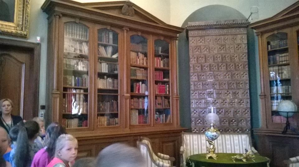Szczególnie zachwyciły Salony Biały i Czerwony oraz biblioteka urządzona w stylu angielskim, z dębowymi, oszklonymi szafami, opatrzonymi herbami Jelita Zamoyskich i Pilawa Potockich. Księgozbiór liczy około 6700 woluminów, w tym 572 starodruki, najstarsze z XVI wieku.