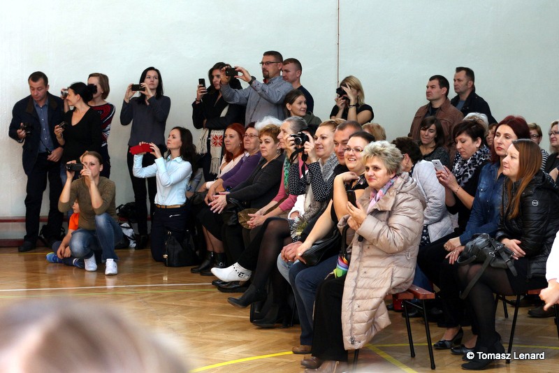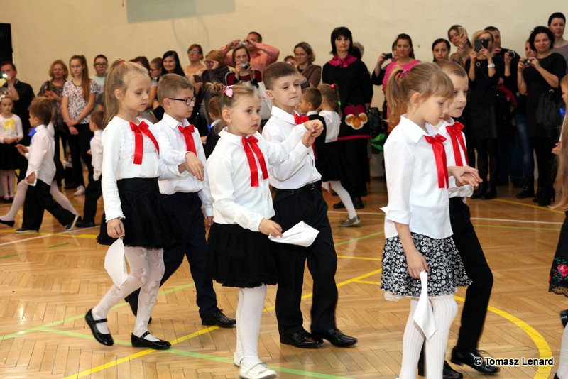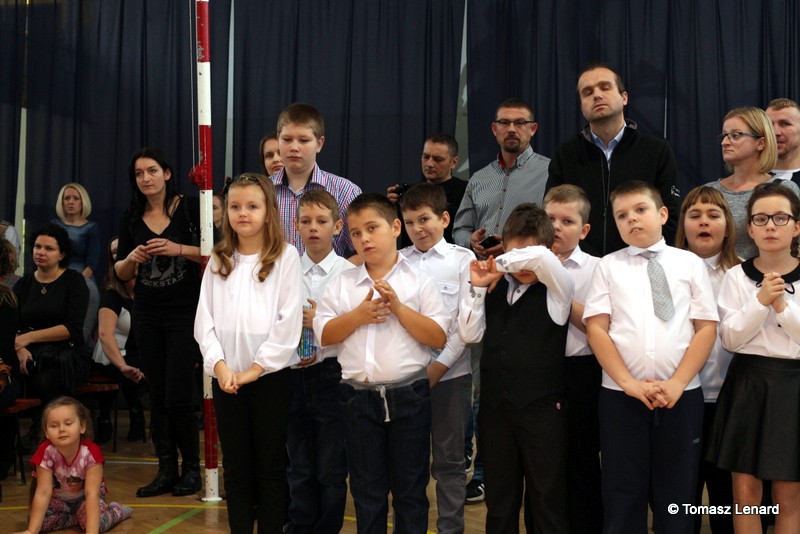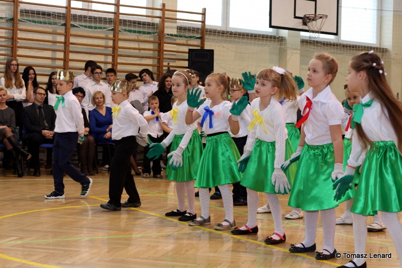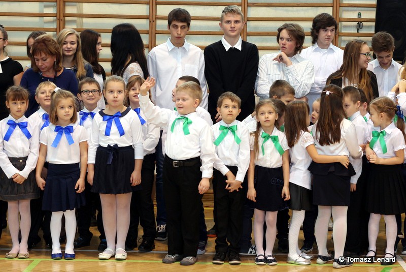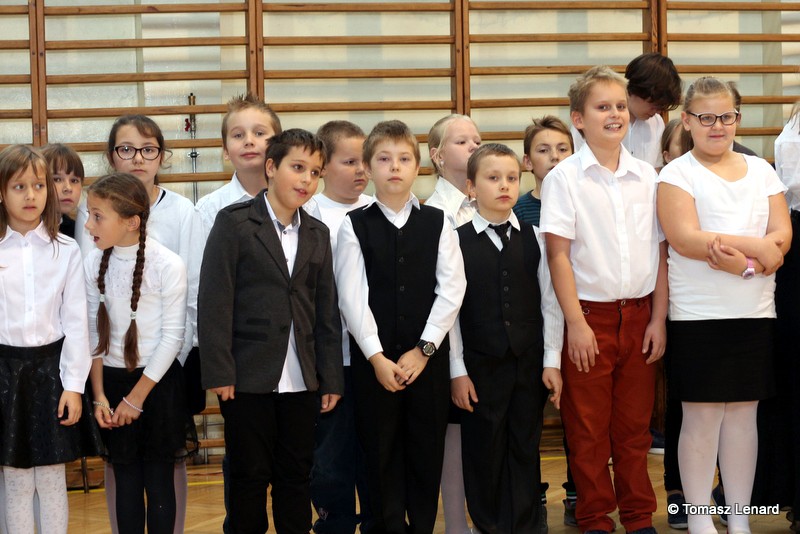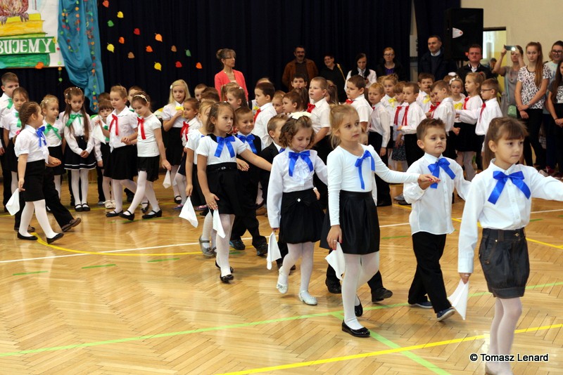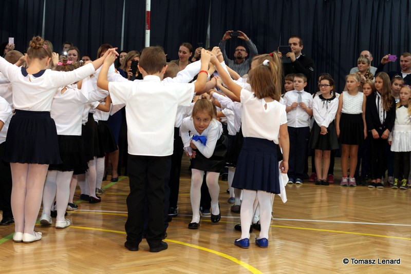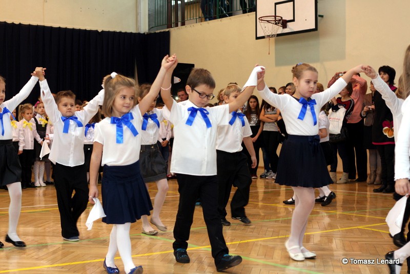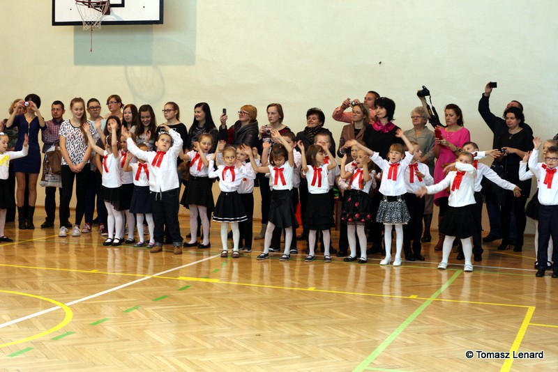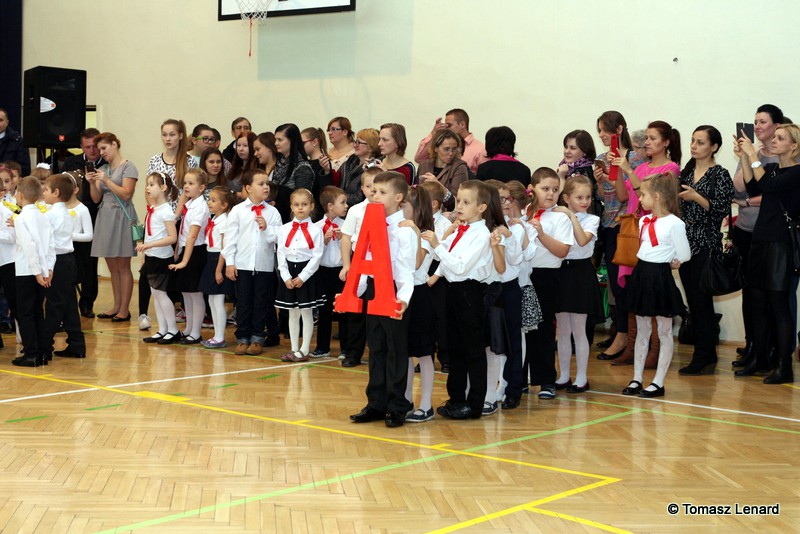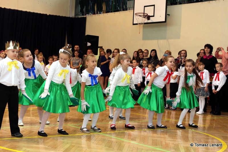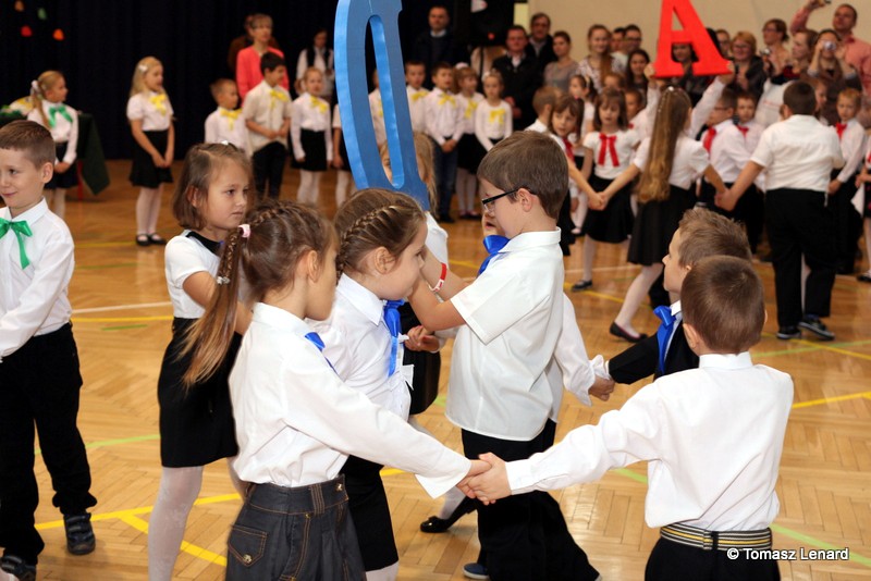Po dokonaniu pasowania, dzieci zaprezentowały swoje umiejętności artystyczne przygotowane pod kierunkiem swoich wychowawców. W ich bardzo dynamicznej części artystycznej znalazły się przeplatane słowem radosne piosenki z inscenizacją, wesołe i rytmiczne tańce oraz pięknie i dostojnie wykonany polonez. Występ dzieci spotkał się z bardzo ciepłym przyjęciem widowni. Po każdym występie mali artyści byli nagradzani gromkimi brawami. Na zakończenie pani dyrektor podziękowała pierwszakom i ich wychowawcom za wysoki poziom części artystycznej, piękne wykonanie hymnów: państwowego i szkolnego oraz wzorową postawę podczas uroczystości.