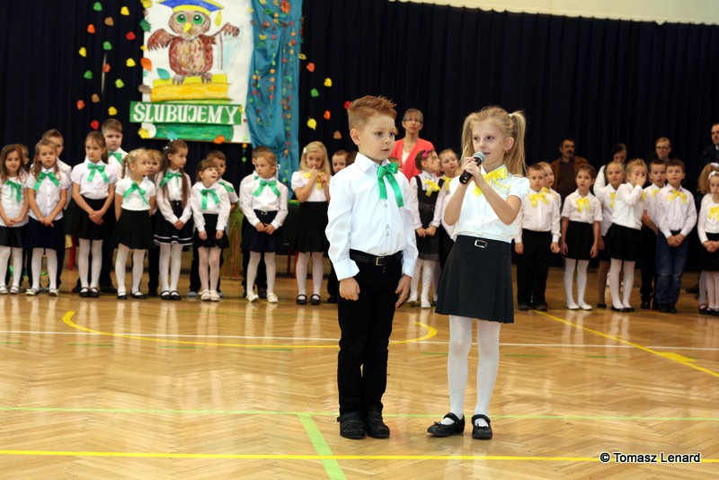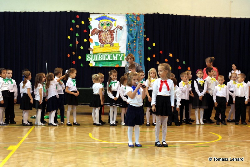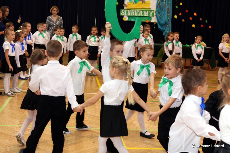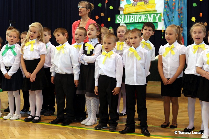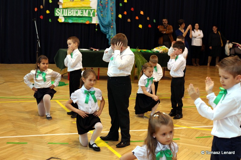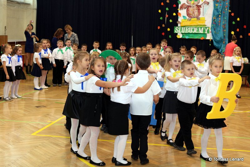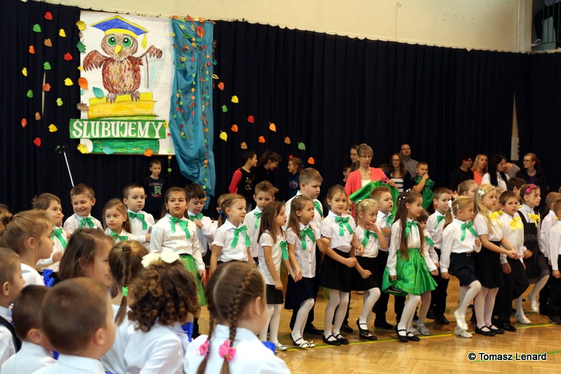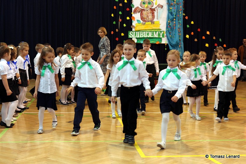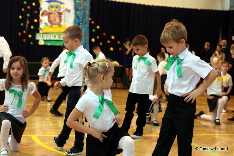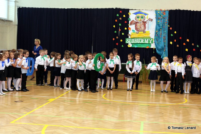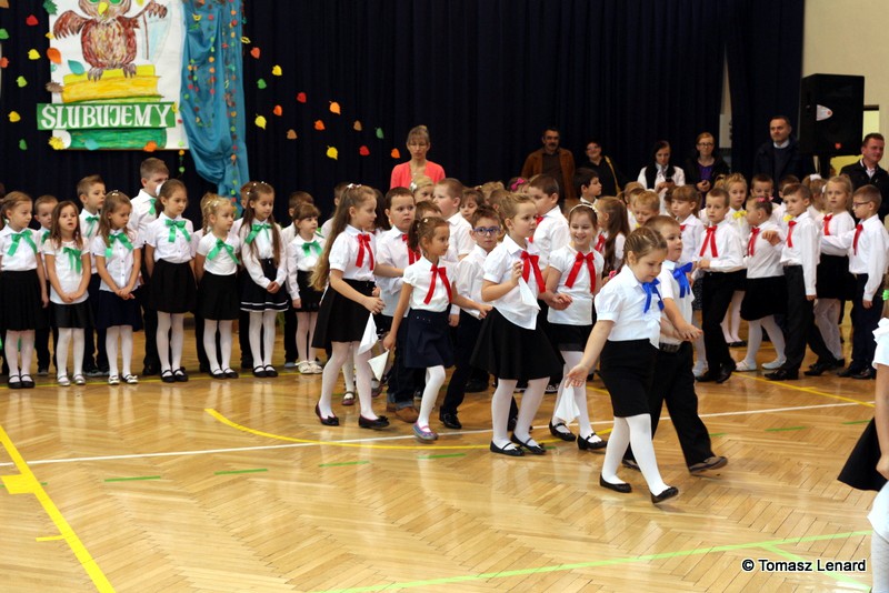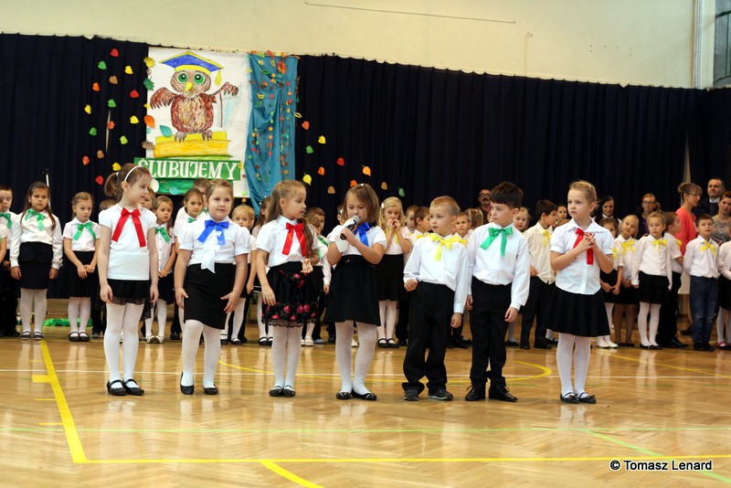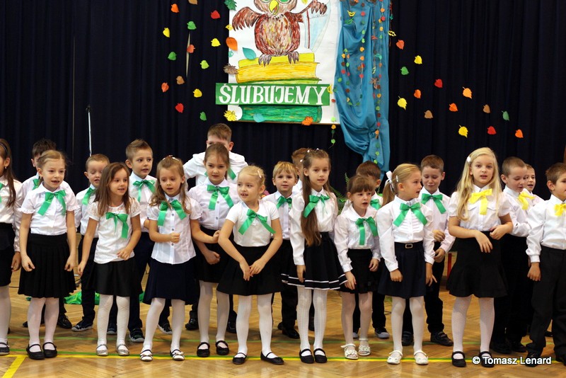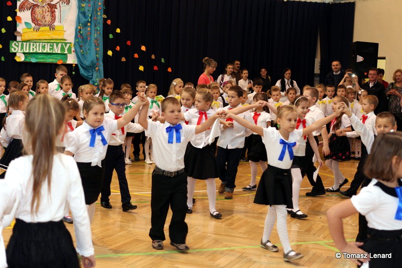 W tym roku szkolnym ślubowanie składały cztery pierwsze klasy pod opieką wychowawców: Ewy Janickiej, Doroty Wawrzyniuk, Anny Kryszczuk i Alicji Ryszkowskiej. Do tego ważnego dnia pierwszoklasiści przygotowywali się kilka tygodni, by udowodnić wszystkim, że nie są już przedszkolakami, lecz uczniami naszej szkoły.
