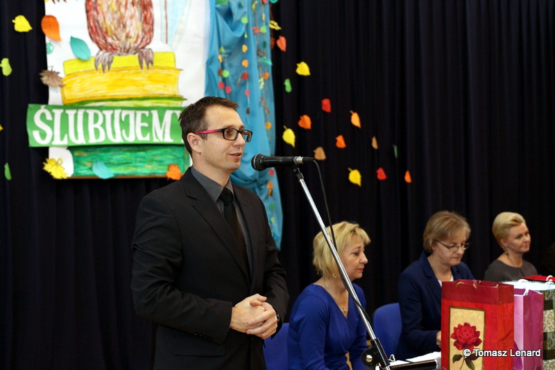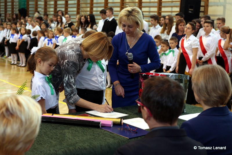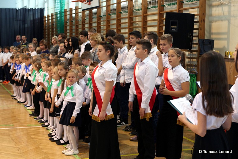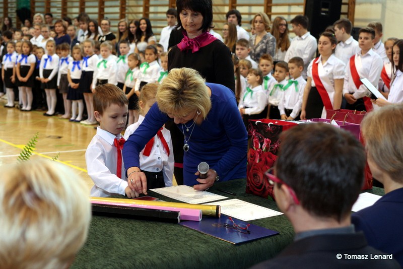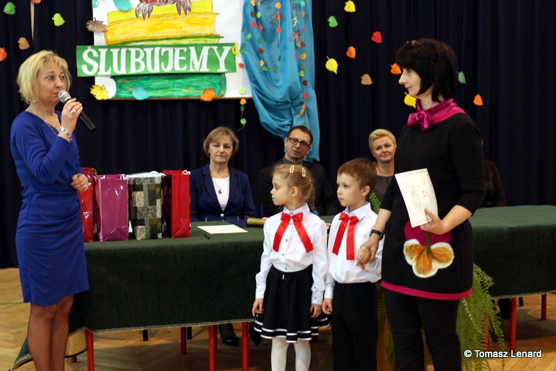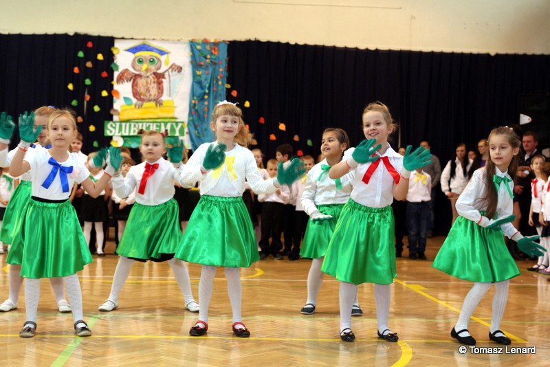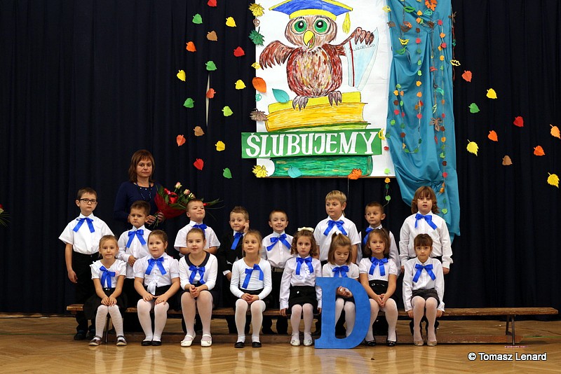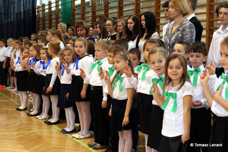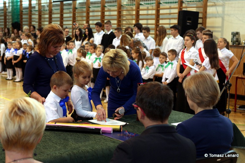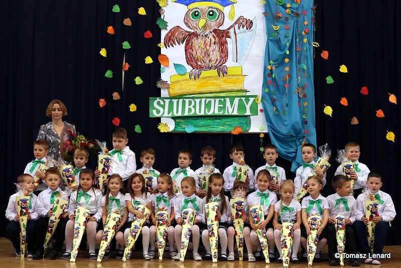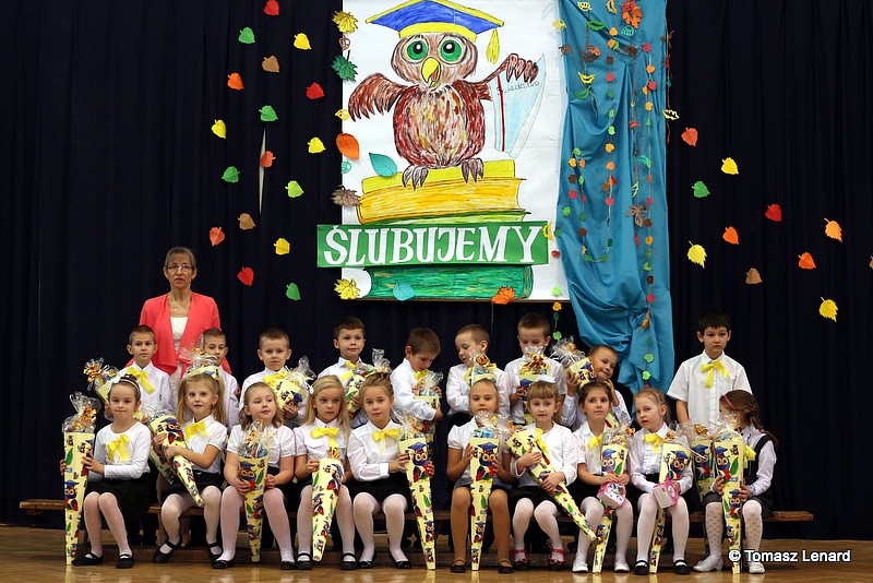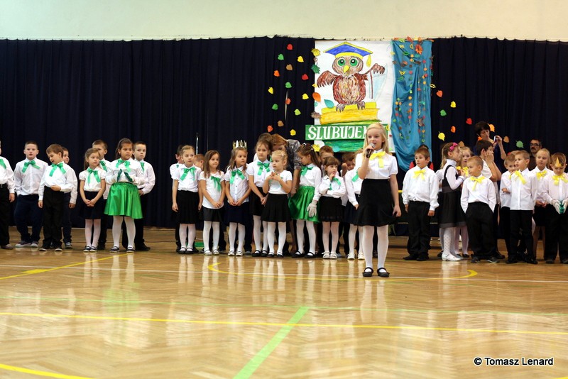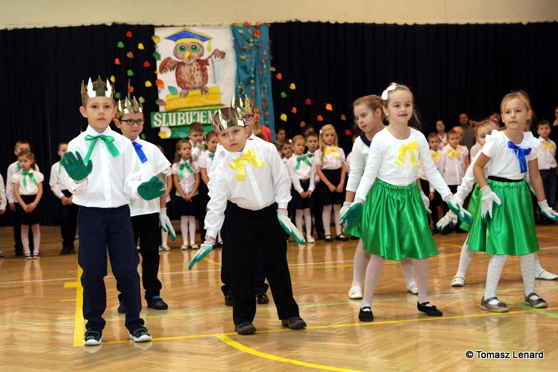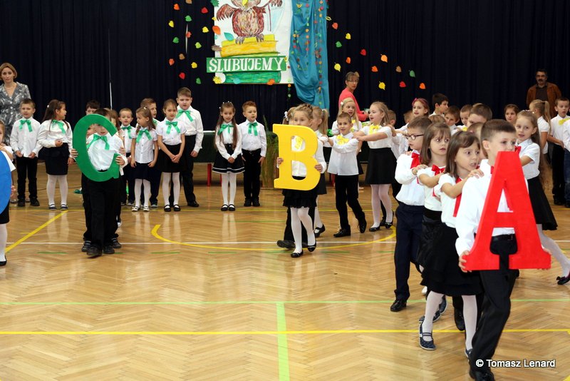 W tym roku szkolnym ślubowanie składały cztery pierwsze klasy pod opieką wychowawców: Ewy Janickiej, Doroty Wawrzyniuk, Anny Kryszczuk i Alicji Ryszkowskiej. Do tego ważnego dnia pierwszoklasiści przygotowywali się kilka tygodni, by udowodnić wszystkim, że nie są już przedszkolakami, lecz uczniami naszej szkoły.