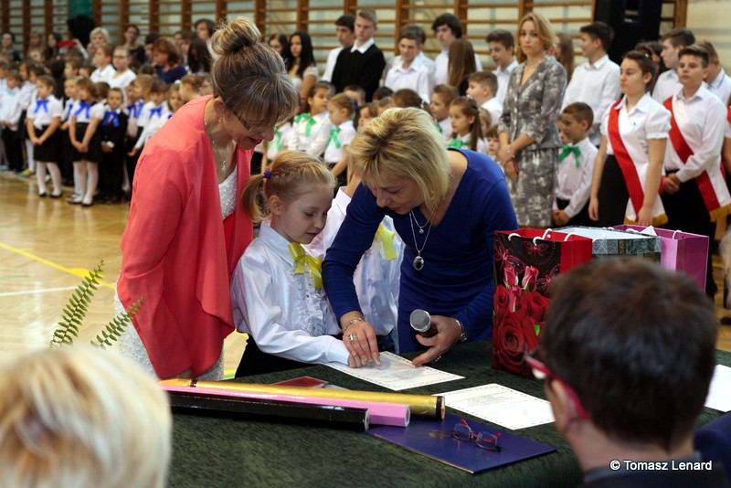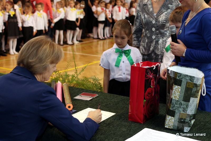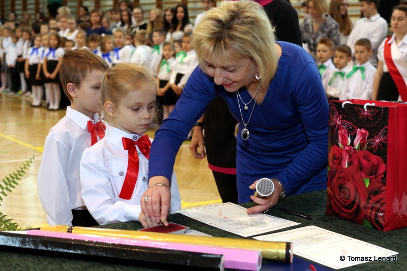 Aktu pasowania na ucznia, symbolicznym wielkim ołówkiem, dokonała dyrekcja szkoły. Od trzecioklasistów pierwszaki otrzymały kolorowe upominki.