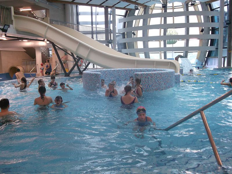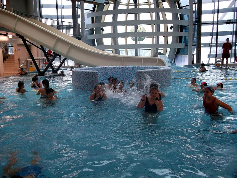Celem wyjazdu było kształtowanie nawyków prozdrowotnych, wdrażanie do aktywnego i kulturalnego spędzania czasu wolnego. Była to również okazja do zintegrowania się uczniów z różnych klas. Podczas 3 godzinnego pobytu każdy uczestnik wyjazdu mógł skorzystać ze zjeżdżalni, jacuzzi, biczy wodnych, basenu sportowego. Czas spędzony „w wodzie”, umożliwił wszystkim uczestnikom wyjazdu (oprócz korzyści zdrowotnych), wiele radości i przyjemnych wrażeń. Po basenie, głodni i nieco zmęczeni wodnymi szaleństwami udaliśmy się do Centrum Handlowego Plaza, gdzie mogliśmy się posilić w KFC lub innych restauracjach, a następnie udaliśmy się na film do kina w technologii 3D pt. „Hotel Transylwania 2”. W drodze powrotnej wszyscy dzielili się swoimi wrażeniami, a czas wspólnie spędzony na basenie i kinie był świetną zabawą dla wszystkich uczestników.