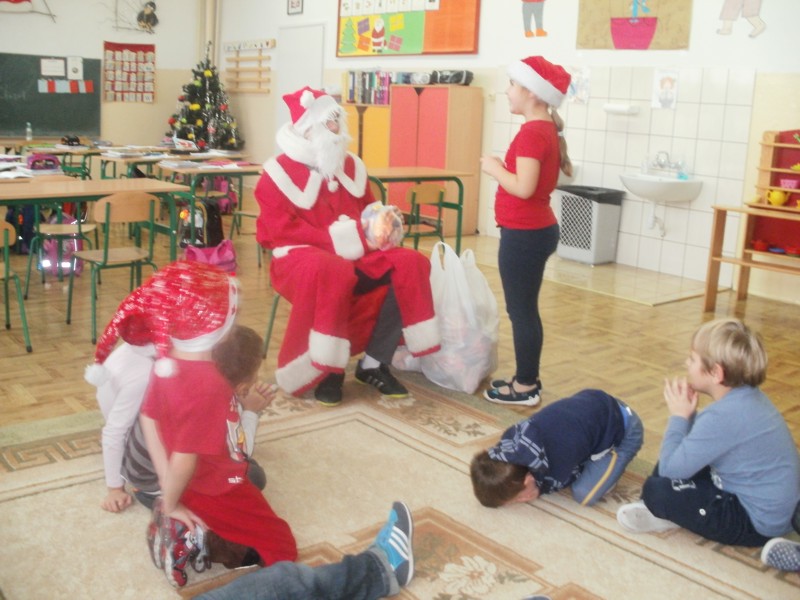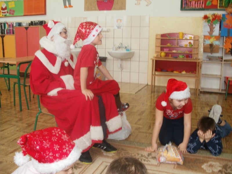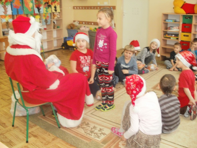 Mikołaj przyszedł do dzieci w swoim pięknym czerwonym ubraniu i z workami prezentów. Wszystkie dzieci zaprosiły Mikołaja do wspólnej zabawy śpiewając radośnie piosenkę, a później oglądały otrzymane podarki przepełnione słodyczami. Był to bardzo radosny dzień, pełen emocji i wrażeń.