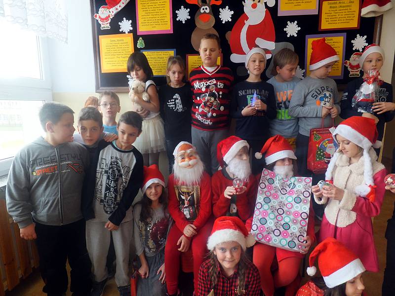 W naszej szkole św. Mikołaj pojawił się już 4 grudnia. Jak co roku miał ze sobą masę prezentów. Najpierw pojawił się ten zaproszony przez dzieci z kl. III a i III b. Towarzyszyły mu urocze śnieżynki z ZS nr 1, które przy okazji propagowały ideę ,,Szlachetnej Paczki’’.