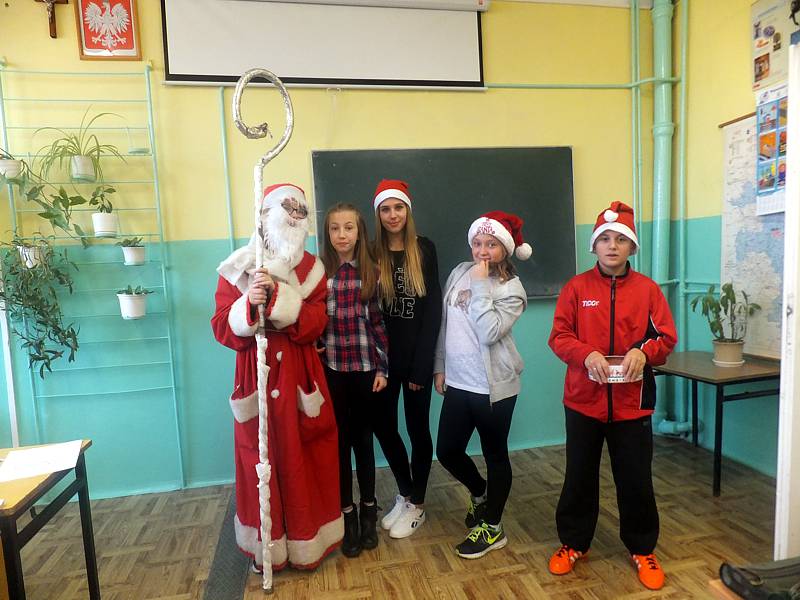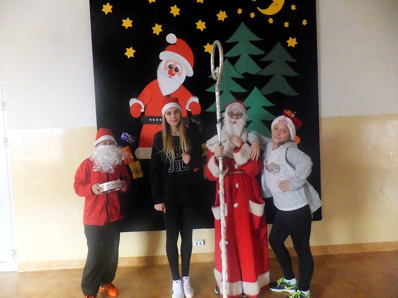W szkolnej imprezie wzięli udział chłopcy z kl. V a, członkowie Samorządu Uczniowskiego i wszyscy przyjaciele Świętego Mikołaja.