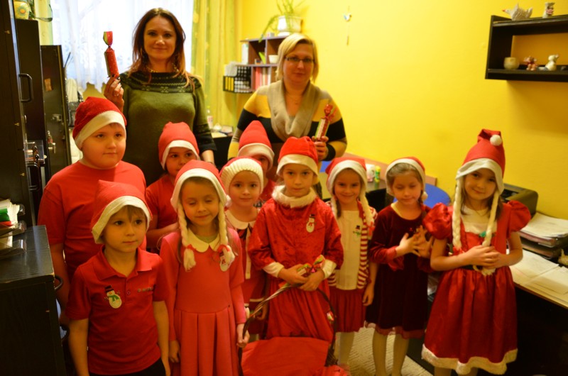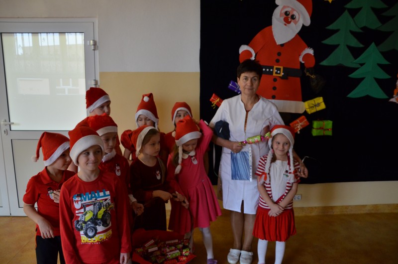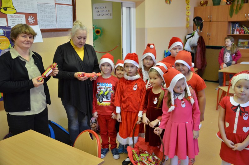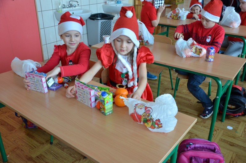 Mikołaj poprosił dzieci o pomoc przy roznoszeniu podarków. Pierwszaki z wielkim przejęciem obdarowywały napotkane w szkole osoby. Miały też niespodzianki dla rodziców. Przekonały się, jak dużo radości i satysfakcji daje rozdawanie prezentów. Dziękujemy Mikołaju za lekcję dobroci.
