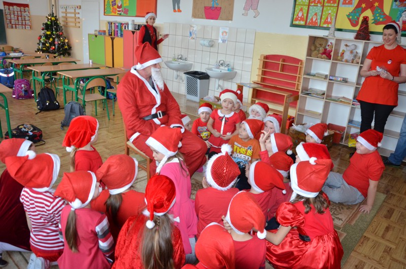 Co roku zadajemy sobie pytanie:" Czy przyjdzie św. Mikołaj?", bo nie jest to takie oczywiste. Jednak uczniowie z kl. I c doczekali się wizyty tego niezwykłego gościa. Dzieci dobrze przygotowały się na powitanie Mikołaja. Wszystkie ubrane na czerwono, w czapkach z białym pomponem, niektóre z brodami wyglądały upragnionej postaci. Kiedy już pojawił się, maluchy ugościły go śpiewem i tańcem. W zamian otrzymały wymarzone prezenty.
