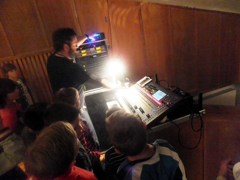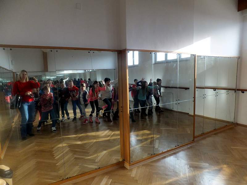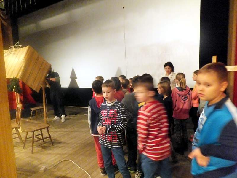 Później uczniowie spotkali się z akustykiem, który objaśnił zasady nagłaśniania imprez, koncertów, przedstawień. Po zaspokojeniu ciekawości klasa weszła na scenę, na której tworzono jasełkową scenografię. Po obejrzeniu wszystkiego "od kuchni" uczniowie udali się do sal, w których artyści ze wszystkich szkół mogą rozwijać swoje talenty. Z niezwykłym entuzjazmem na początku została przyjęta salka "lustrzana", w której młodzi tancerze, aktorzy przygotowują się do występów.