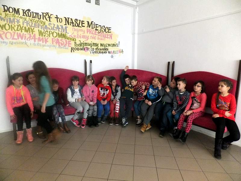 Dnia 15 grudnia klasa IV b wybrała się na wycieczkę, której celem było zwiedzenie HDK. Zaraz po przybyciu na miejsce spotkała się z ulubioną instruktorką wszystkich dzieci - p. Jolantą Głowacz, która postanowiła oprowadzić po całym obiekcie. Tuż po obejrzeniu wystawy "W grudniowy dzień" i po przekazaniu przez p. Magdalenę Bień informacji o funkcjonowaniu nowego KINA, wszyscy udali się do salki, w której przygotowuje się materiały do projekcji filmu. Dzieci, dzięki życzliwości p. Krzysztofa Zawiszy, mogły zobaczyć nowoczesny sprzęt, a także poznać tajniki kina.