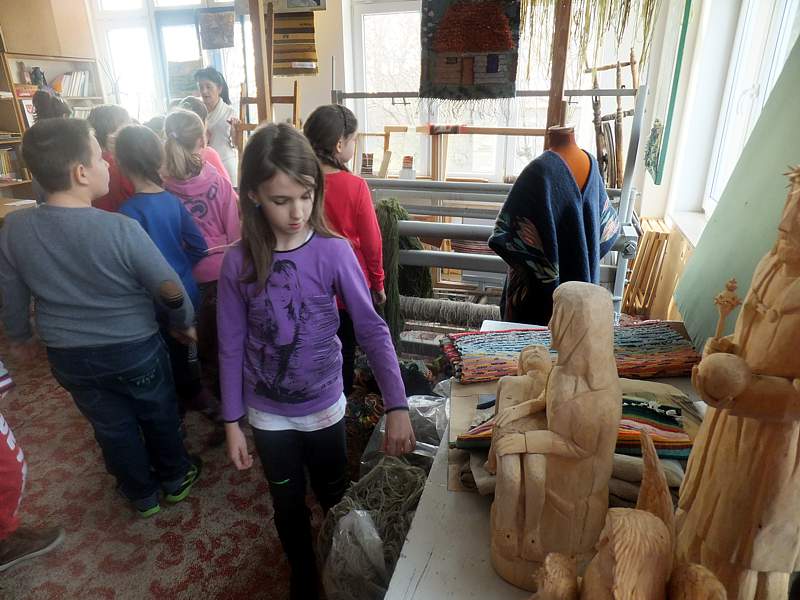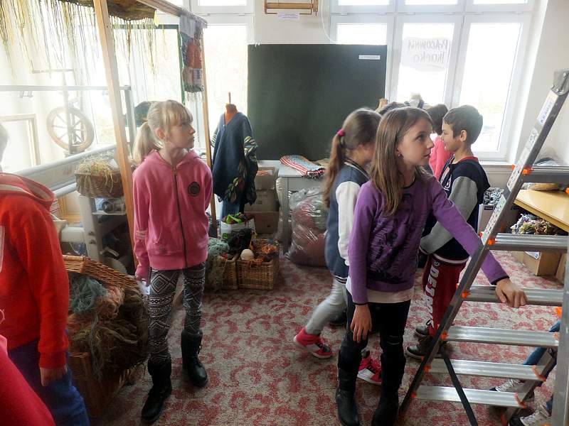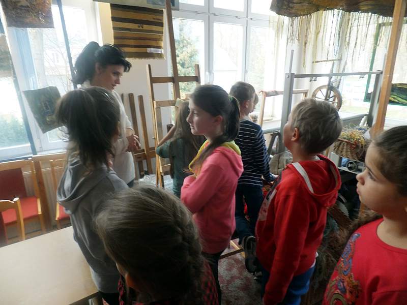 Ciekawym miejscem na mapie naszej wędrówki okazała się także pracownia rękodzieła artystycznego, w której to dzieci ujrzały sprzęt tkacki, surowce, kilimy, gobeliny, pasiaki. Ostatnim punktem programu był pobyt w sali, w której odbywają się prezentacje, ale i próby.