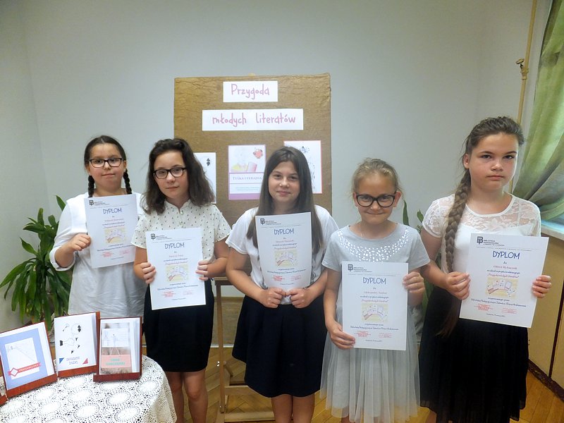 Dnia 19 czerwca 2017 r. w Bibliotece Pedagogicznej odbyło się spotkanie integracyjne , na który przybyli z pięciu szkół podstawowych uczestnicy projektu edukacyjnego „Przygoda młodych literatów”. Po powitaniu przez Panią Elżbietę Bednarek uczniowie zapoznali się z efektem swojej pracy, która trwała przez miesiąc. Jej owocem były książki, którym autorzy nadali tytuły: „Róża i Jagoda”, „Tyśka i ferajna”, „Obóz harcerski”, „Przygoda Oli” i „Zakazane drzwi”. Praca poszczególnych grup polegała na dopisywaniu kolejnych rozdziałów opowieści.