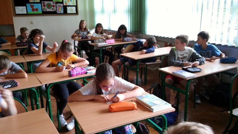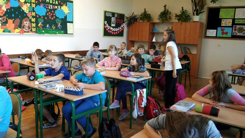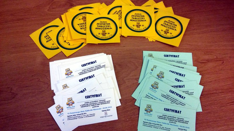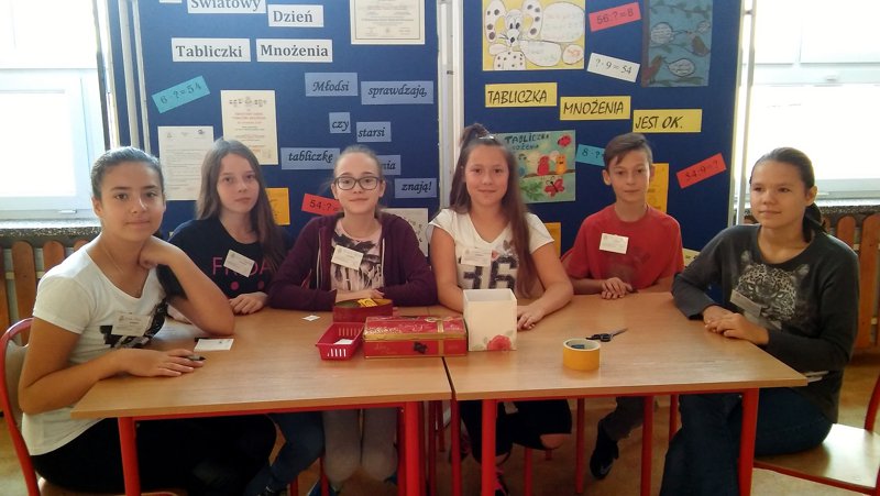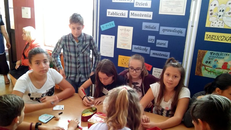 W naszej szkole najwięcej emocji wywołały egzaminy przeprowadzane przez Komisje i Patrole Egzaminacyjne, którymi byli uczniowie z klasy V „a”: Milena Turzyńska, Patryk Roch, Julia Ptak oraz z klasy VI „a”: Paulina Bębenek, Julka Borkowska i Weronika Stadnik. Sprawdzali oni umiejętność szybkiego liczenia nie tylko wśród uczniów, ale i osób dorosłych m.in. pani dyrektor, pani pielęgniarki jak też rodziców i nauczycieli, w sumie przepytano 273 osoby. Uczestnicy zabawy za zdanie egzaminu otrzymywali certyfikat Eksperta Tabliczki Mnożenia. Wszystkim, którzy mieli odwagę przystąpić do testu dziękujemy i gratulujemy dobrej znajomości tabliczki mnożenia.