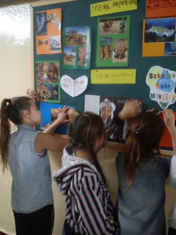 Od września rozpoczęliśmy kolejny rok zebrań Szkolnego Koła Misyjnego. Na jednym ze spotkań uczennice klasy 4 B Szkoły Podstawowej własnoręcznie wykonały Misyjną gazetkę. W niej zostało ujęte piękno natury krajów Misyjnych oraz intencja Papieża Franciszka na poszczególne miesiące roku.
