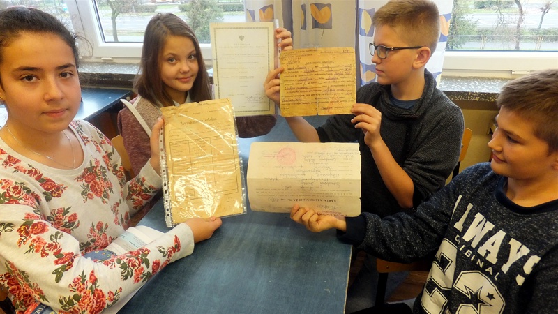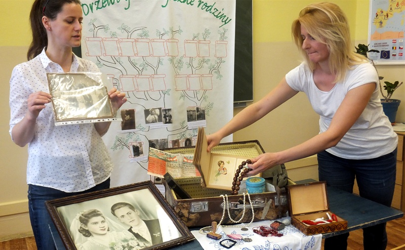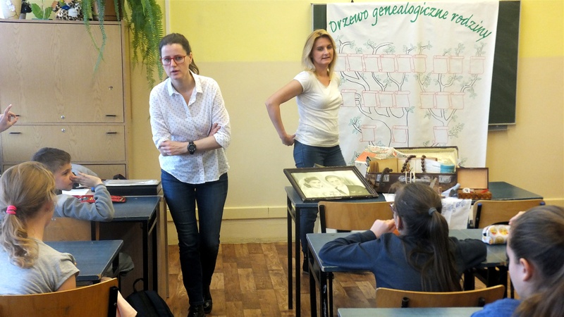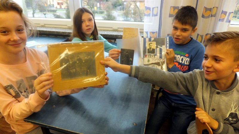Po wysłuchaniu wspomnień uczniowie zapisali pytania, które by chcieli zadać starszym osobom. Następnie Panie opowiedziały o przyniesionych przez siebie rodzinnych pamiątkach, o tworzeniu drzewa genealogicznego. Niezwykle inspirującą częścią spotkania było zapoznawanie się z treścią starych dokumentów. Na zakończenie Panie przygotowały niespodziankę, a mianowicie grę w hacele. Mimo że znana była ona przez poprzednie, a nie obecne pokolenie, bardzo się spodobała. Spotkanie, które przebiegło w niezwykle przyjaznej atmosferze, rozbudziło zainteresowania uczniów i zmusiło do refleksji nad przemijającym czasem.