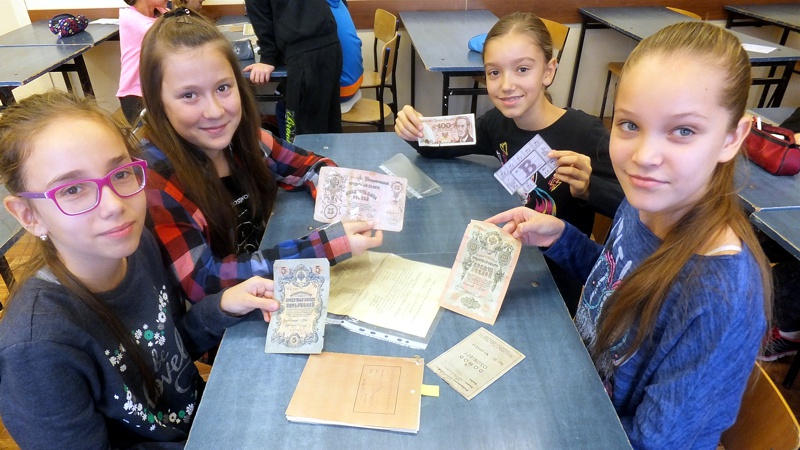 Dnia 8 listopada na zaproszenie p. Anny Świstowskiej przybyły do naszej szkoły osoby, które na co dzień pracują w Bibliotece Miejskiej w Hrubieszowie. Panie Katarzyna Suchecka i Jolanta Dobosz spotkały się z uczniami z klas Va i IVb. Nietypowa, pełna niespodzianek lekcja historii odbyła się w sali 105. Na początku Panie poinformowały o idei, która przyświecała im w trakcie realizacji ambitnego programu - archiwizacji pamiątkowych przedmiotów, wypowiedzi osób, które od lat mieszkały w naszym mieście. Później dzieci z wielkim zainteresowaniem wysłuchały nagrania wypowiedzi, m.in. p. Tadeusza Bartnika, który w zajmujący sposób opowiedział o swoim dzieciństwie, młodości i późniejszym okresie swojego życia.