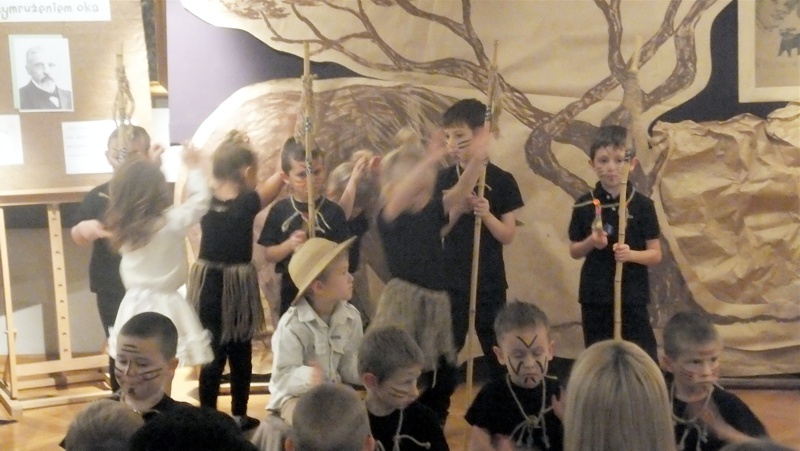 Dnia 8 listopada klasa Vb wraz z wychowawcą udała się do Muzeum im. St. Staszica na spotkanie "Boś Ty słowa mistrz - Henryk Sienkiewicz z przymrużeniem oka’’. Zostało ono zorganizowane przez pracowników Biblioteki Pedagogicznej i muzeum. Pierwszym punktem programu była prezentacja w formie słowno – muzycznej dzieci z Przedszkola nr 5. Przedszkolaki pod okiem swoich nauczycieli wcieliły się w postacie ze sławnej powieści Sienkiewicza pt. "W pustyni i w puszczy’’. Zobaczyliśmy Stasia i Nel, afrykańskie plemię. Zdumieni poziomem umiejętności wraz z innymi podziwialiśmy rytualny taniec, grę aktorską , ale także scenografię i kostiumy bohaterów.