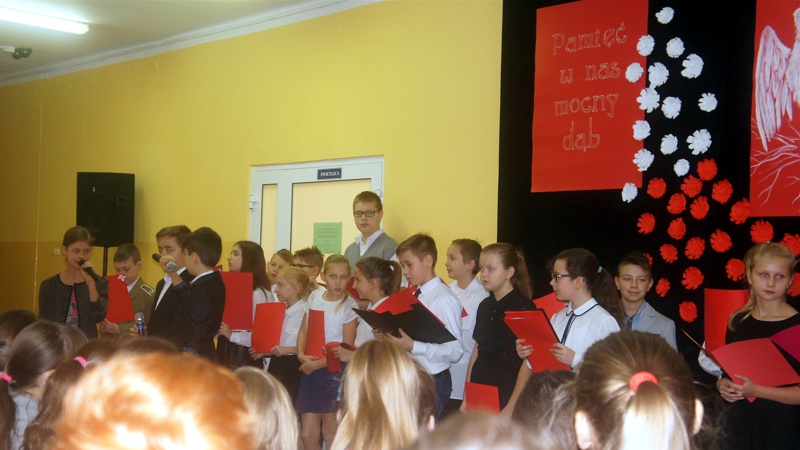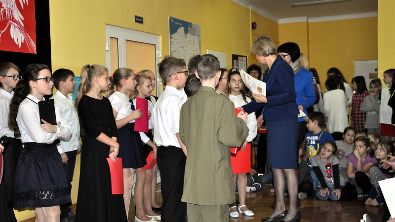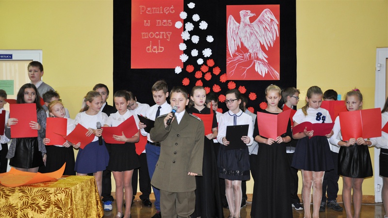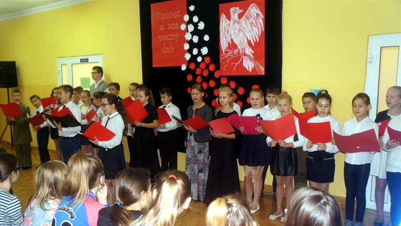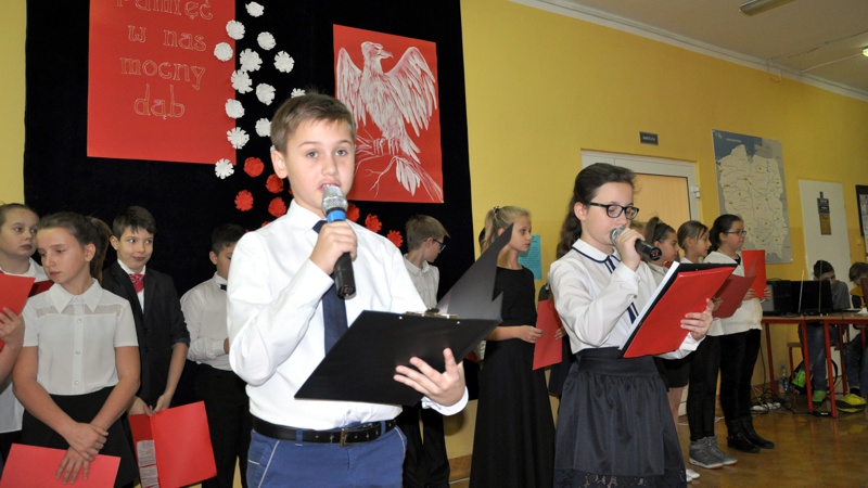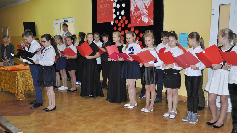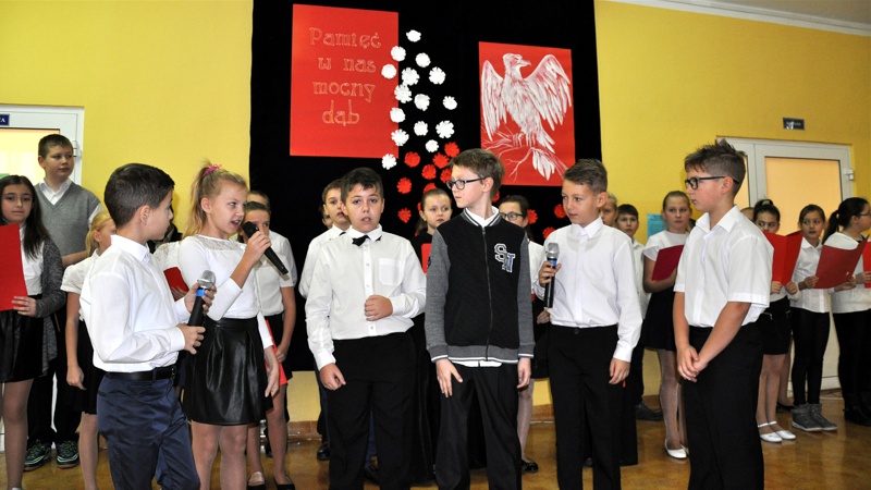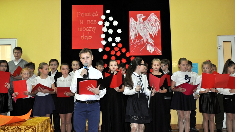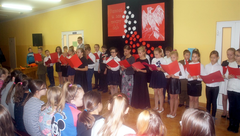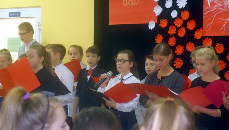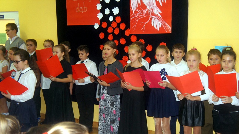 10 listopada w naszej szkole odbyła się uroczystość z okazji 98. rocznicy odzyskania przez Polskę niepodległości. Z tej okazji uczniowie klas 4 a i 4b wraz z wychowawczyniami przygotowali uroczystą akademię. Inscenizacja przypomniała uczniom o niezwykle trudnych losach naszej ojczyzny w czasie zaborów oraz o walce Polaków o wolny kraj. Pamięć minionych dni i dumę z odzyskanej niepodległości przywołały wiersze i pieśni o tematyce patriotycznej. Apel uświadomił dzieciom jak ważna jest nasza ojczyzna i wolność. Wszyscy artyści otrzymali zasłużone brawa. Wychowawczynie: Małgorzata Koniec i Aneta Franke