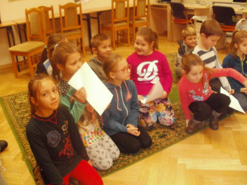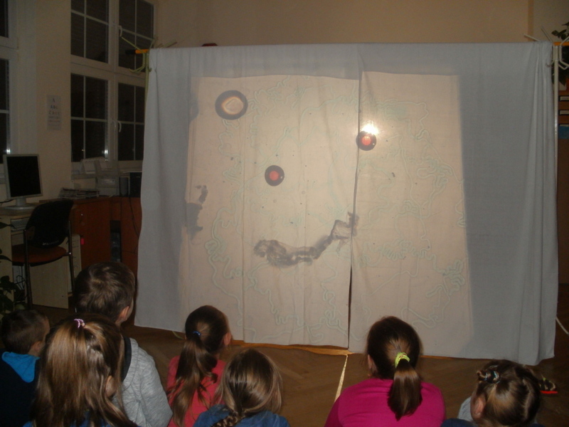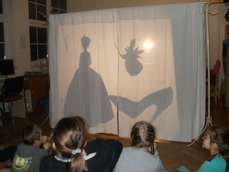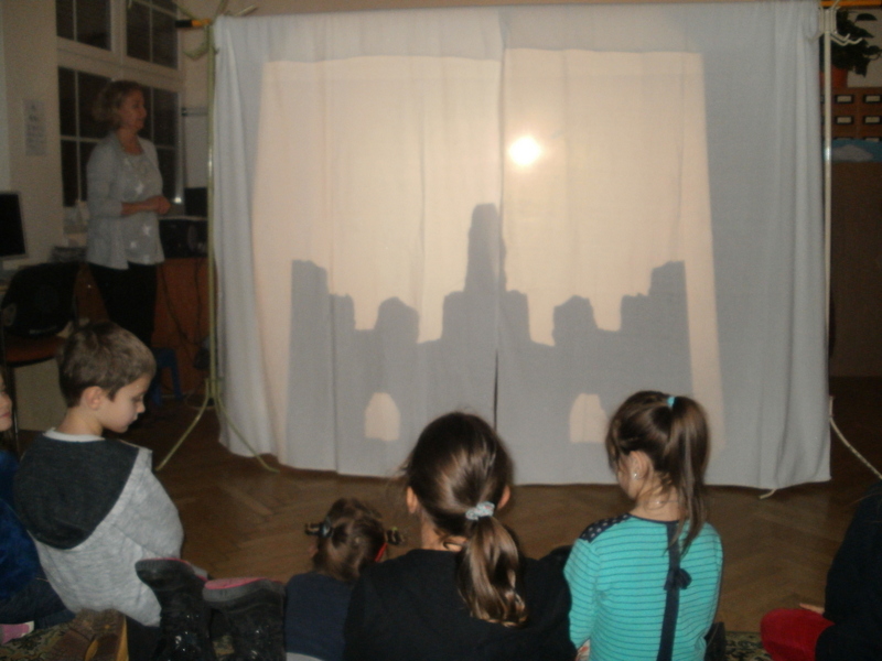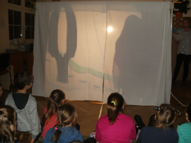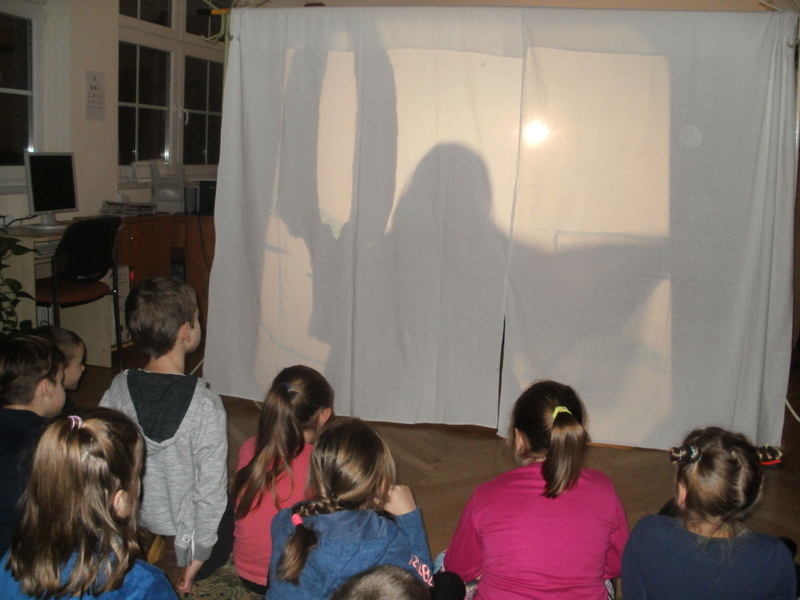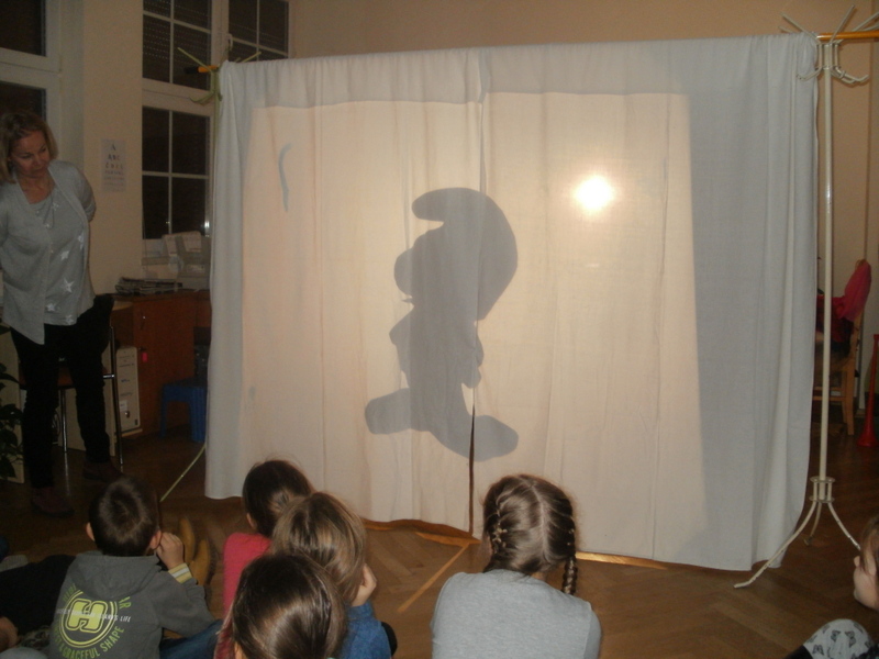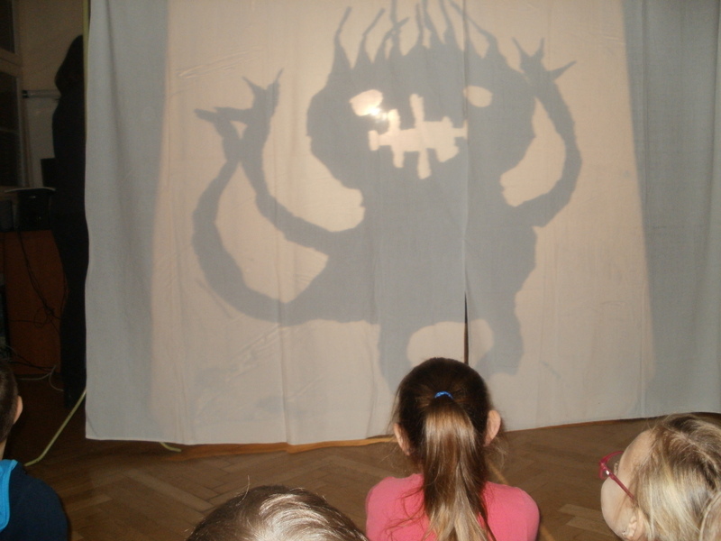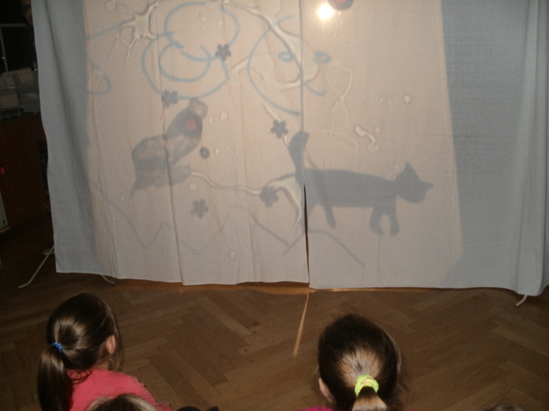 Dnia pierwszego grudnia uczniowie klasy II d uczestniczyli w teatrzyku cieni przygotowanym przez Bibliotekę Pedagogiczną w Hrubieszowie. Do tej niezwykłej zabawy został wykorzystany rzutnik przeźroczy. Dzieci obejrzały efekty wodne, odgadywały postacie bajkowe i opisywały to co widzą na podstawie obrazów cieni. Podzieleni na grupy czytały wiersze Małgorzaty Strzałkowskiej, ilustrowały je i grały role aktorów - cieni. Wszystkie grupy zaprezentowały się doskonale i zostały nagrodzone brawami.
