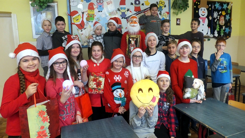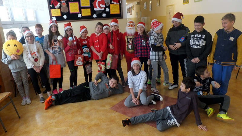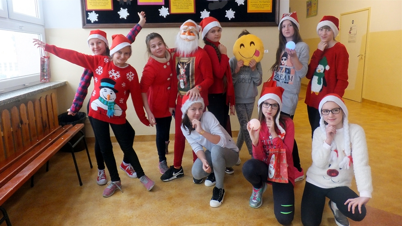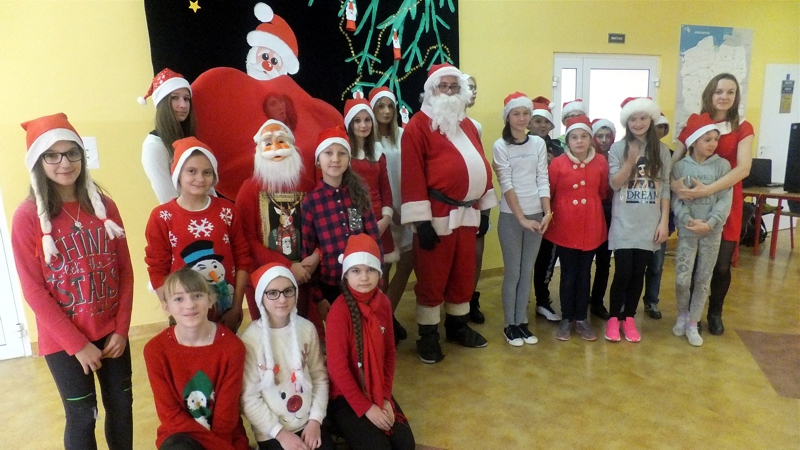 Dnia 6 grudnia, jak co roku, uczniowie z naszej szkoły zorganizowali w swoich klasach mikołajki. Aby wprowadzić ich jednocześnie w świąteczny nastrój, Samorząd Uczniowski na przerwach odtwarzał utwory muzyczne, które kojarzą się wszystkim z magią świąt i z oczekiwaniem na spełnienie dziecięcych marzeń. W poszczególnych klasach trwało radosne oczekiwanie na Św. Mikołaja. Gdy już przyszedł, radość dzieci nie miała końca. Miłą niespodzianką było to, że zagościł on w naszej szkole m.in. dzięki nauczycielowi z ZS nr 1 - Pani Beacie Tomaszczuk i osobom z Wolontariatu.
