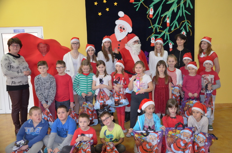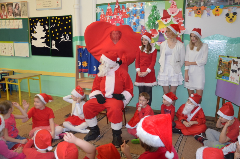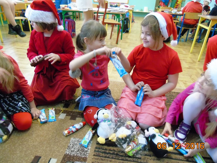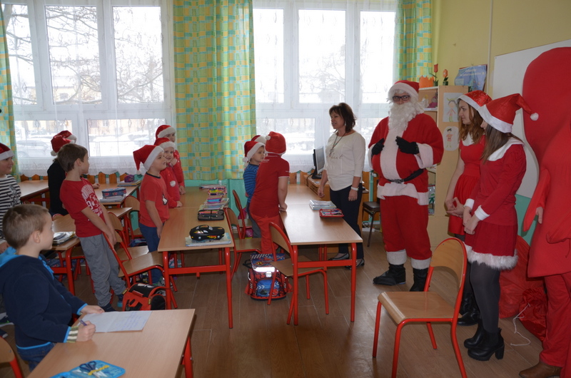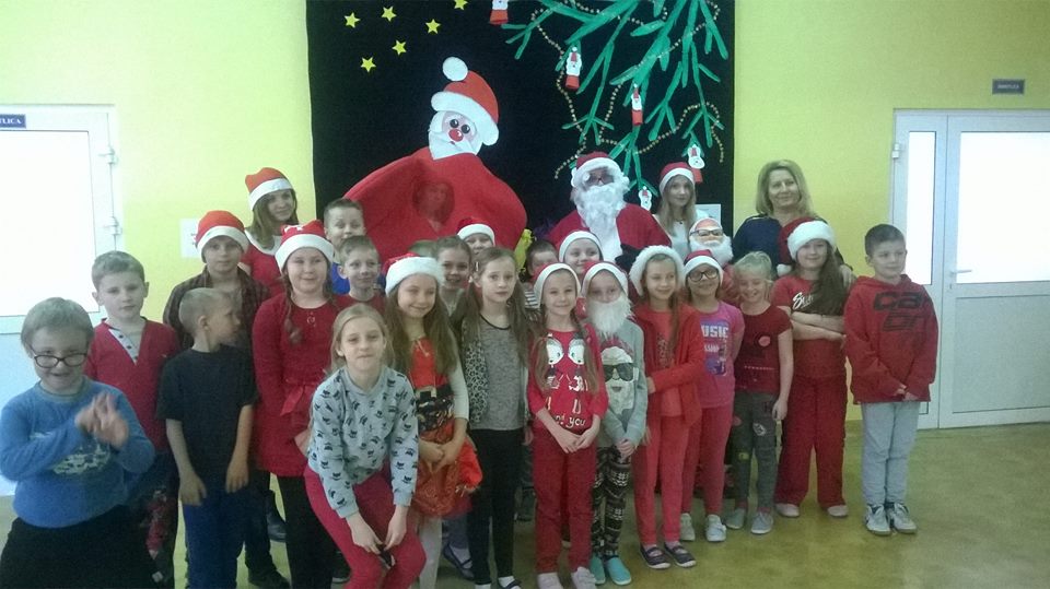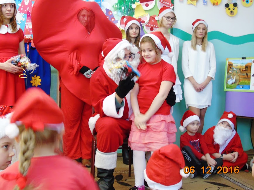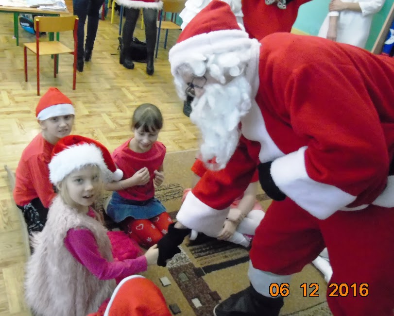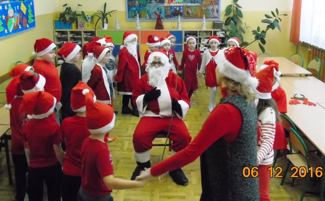6 grudnia na zaproszenie Samorządu Uczniowskiego młodszej grupy wiekowej do szkoły zawitał Mikołaj ze Śnieżynkami. Wszyscy uczniowie w tym dniu ubrani na czerwono z niecierpliwością czekali na prezenty, które wręczył Nasz Gość. Dzieci przywitały Gościa piosenkami i wierszykami.