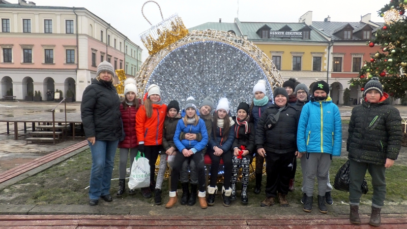 Dnia 9 grudnia klasa V b wraz z opiekunami - p. Iwoną Stefaniak i p. Ewą Sitnik - Pogwizd udała się na wycieczkę do Zamościa. Pierwszym punktem programu był seans filmowy w kinie Stylowy. Dzieci obejrzały film pt. "Za niebieskimi drzwiami’’. Jest to najnowsza polska produkcja, która wzbudziła uznanie w oczach krytyków. Opowiada ona o losach Łukasza, który wraz z matką przeżywa koszmar wypadku samochodowego.