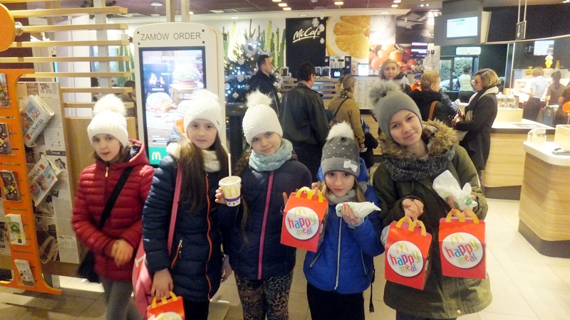 Aby tragiczne zdarzenie odeszło w niepamięć, mama opowiada swojemu dziecku historię, która rozgrywa się w świecie pełnym magii, niewiarygodnie fantastycznej przestrzeni, stworów budzących grozę. Po obejrzeniu filmu uczniowie, pełni wrażeń, udali się na Rynek. To tutaj od początku grudnia działa lodowisko, które przyciąga rzesze dzieci i młodzieży , które pragną zakosztować sportowej rozrywki na świeżym powietrzu. Po nauce jazdy na łyżwach klasa postanowiła jeszcze zrobić sobie pamiątkowe zdjęcia na tle fantastycznych , świątecznych iluminacji. Potem udała się do McDonald’s, by skosztować amerykańskich przysmaków. Wycieczka była bardzo udana i dostarczyła dzieciom wielu pozytywnych przeżyć.