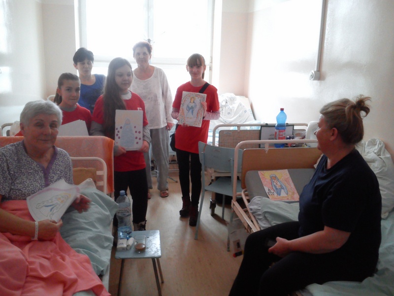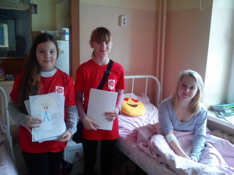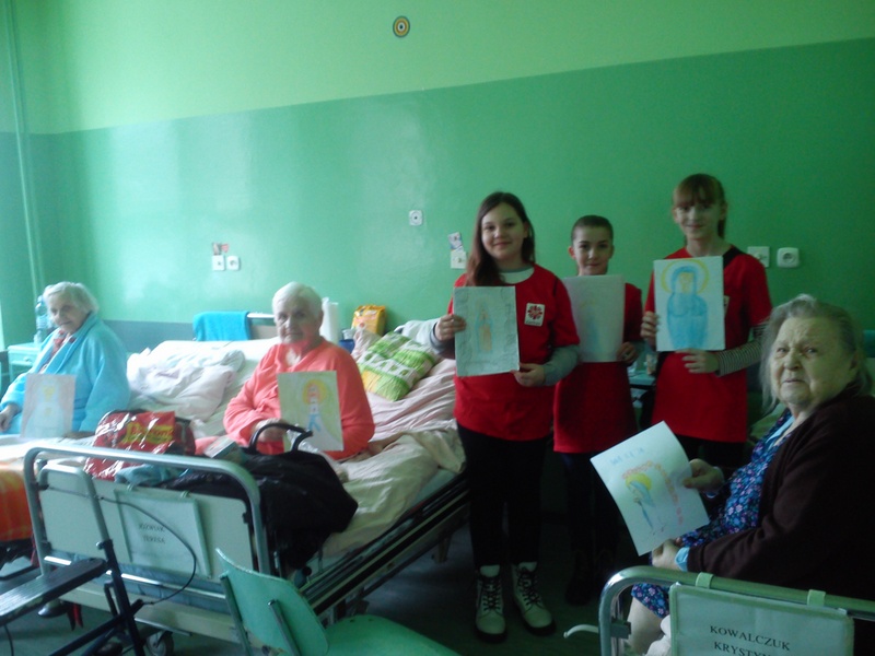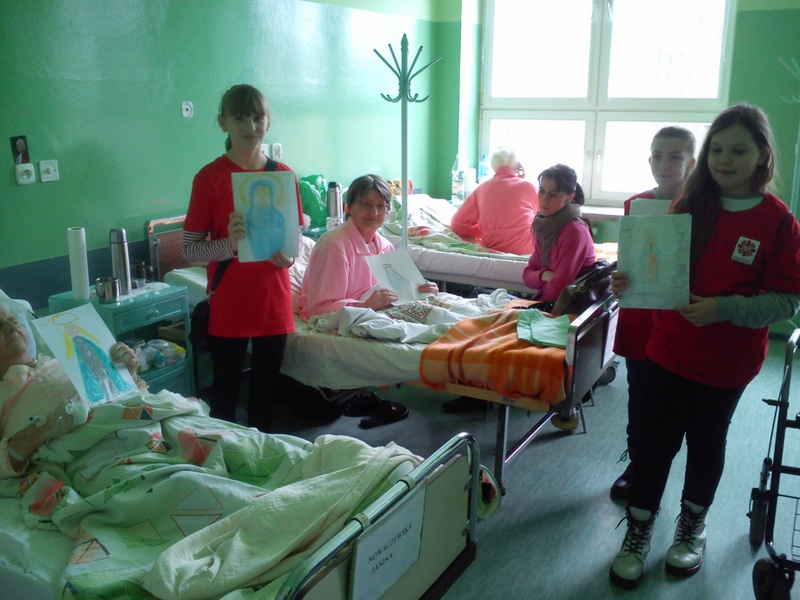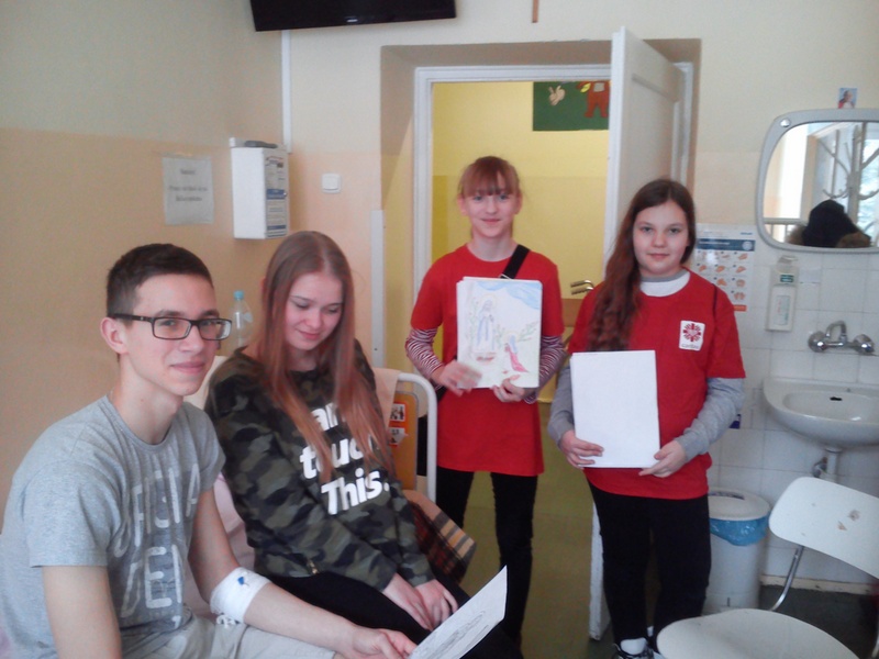 Wolontariusze Szkolnego Koła Caritas wraz z opiekunem wyruszyli 18 lutego do Hrubieszowskiego szpitala z misją odwiedzenia tam chorych oraz wręczenia im upominków z okazji Światowego Dnia Chorego, który obchodzony był 11 lutego w liturgiczne wspomnienie Matki Bożej z Lourdes. Członkowie Szkolnego Caritasu zanieśli do przebywających tam pacjentów, i tych najmniejszych i tych starszych, rysunki z Matką Bożą, które wykonali uczniowie naszej szkoły z klas 4 i 6 Szkoły Podstawowej oraz 1 i 2 Gimnazjum.