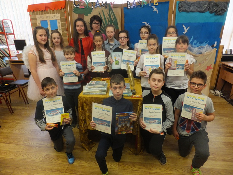 Uczestnicy oprócz pamiątkowych dyplomów otrzymali książki oraz słodkie upominki.