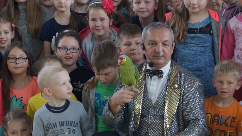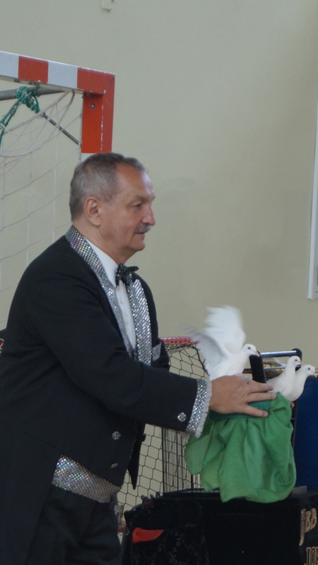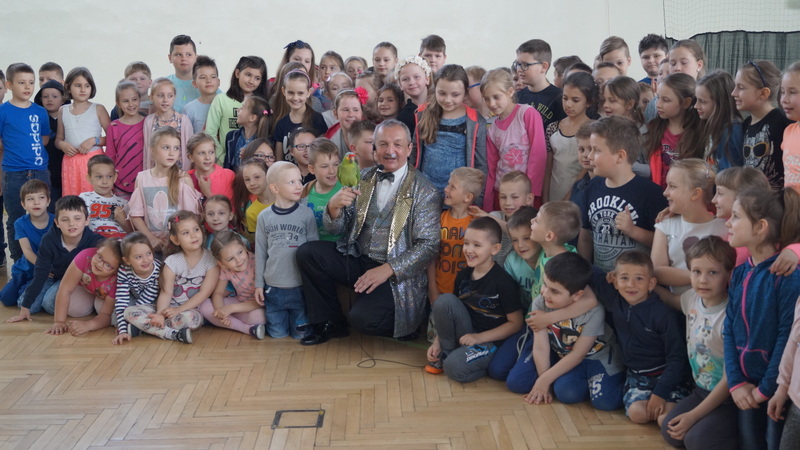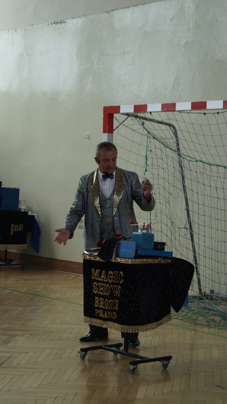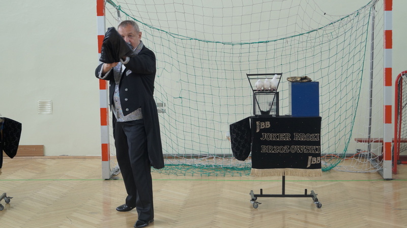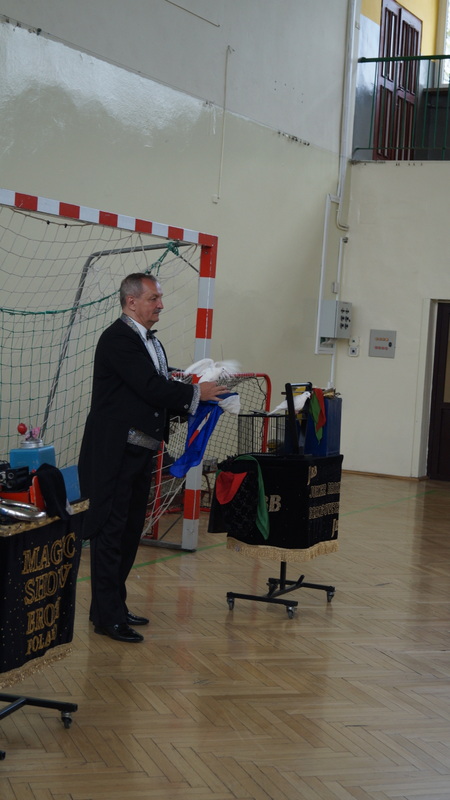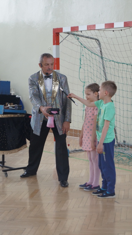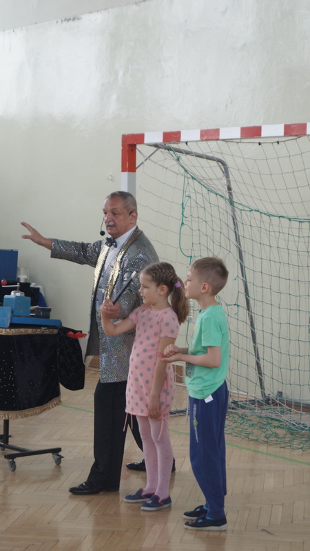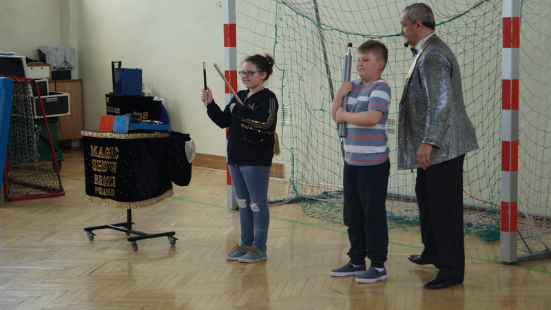 Wtorek, 16 maja br. był szczególnym dniem dla najmłodszych uczniów naszej szkoły. Słynny czarodziej , Mag Brozi z Poznania, znany z występów w programie "Mam talent" odwiedził dzieci z klas 0 - III i zaprosił je do swojego czarodziejskiego świata. W tajemniczy sposób, w jego rękach, przedmioty zmieniały swoje kształty i kolory. Pod wpływem jego zaklęć, w których aktywny udział brały też dzieci, z pustego cylindra nieoczekiwanie wyfruwały gołębie.