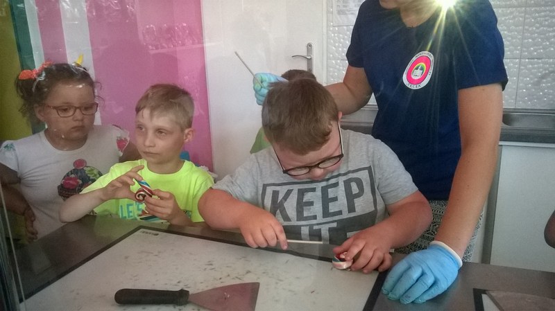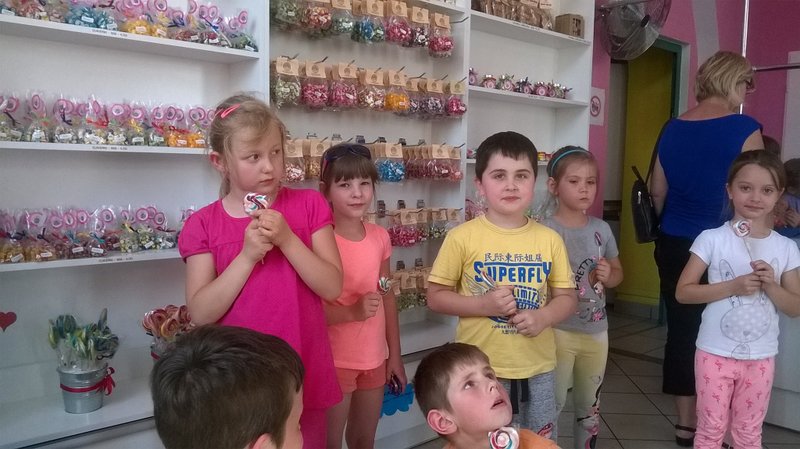 Wiele radości dostarczyły dzieciom zabawy na placach zabaw na trenie Zoo oraz możliwość przyjrzenia się z bliska mieszkańcom ogrodu. Kolejnym punktem programu wycieczki był udział w warsztatach w zamojskiej manufakturze słodyczy „Tęcza”, gdzie dzieci poznały proces produkcji cukierków oraz samodzielnie wykonały lizaki.