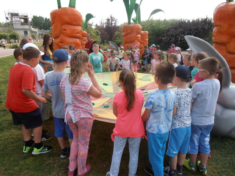 Wszystkie krainy nawiązywały do baśni i legend. Spacerując alejkami dotarliśmy do gigantycznych marchewek, było to "Marchewkowe Pole". W każdej krainie czekały na dzieci zabawy i zagadki. W tym kilku hektarowym świecie są miejsca na odpoczynek, ławeczki, łąki i przeróżne place zabaw.