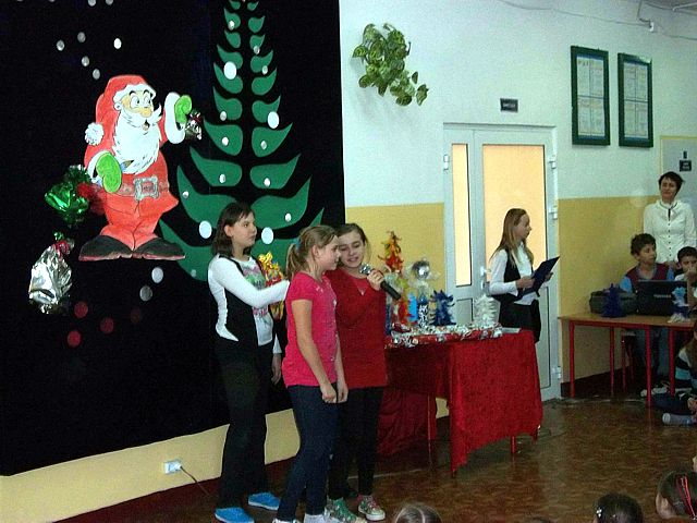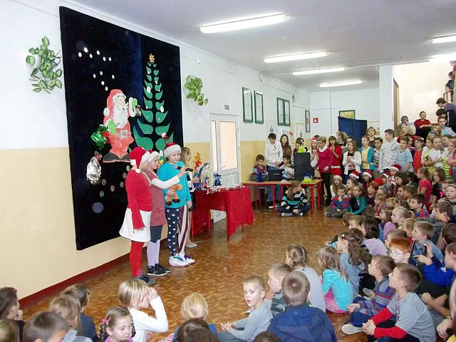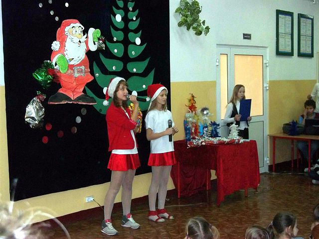 Punktem kulminacyjnym tej uroczystości były życzenia świąteczne pani dyrektor. Koncert kolęd został przygotowany przez nauczycieli Szkolnego Klubu Europejskiego „Eurolandia” panią Bożenę Szlonzak, Dorotę Witkowską i Ewelinę Frąc.