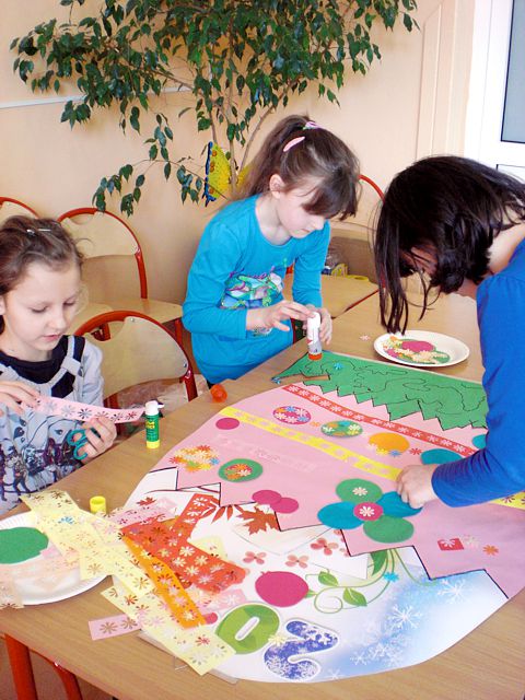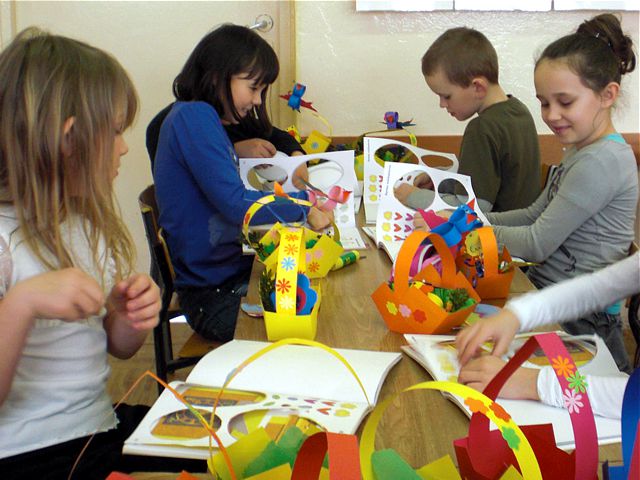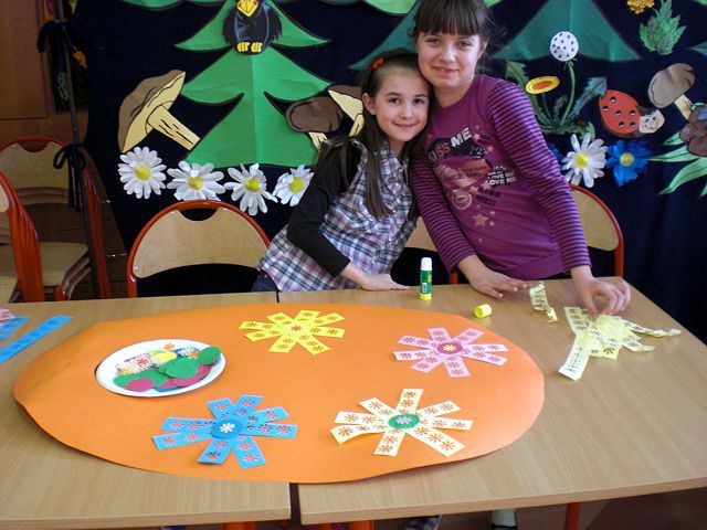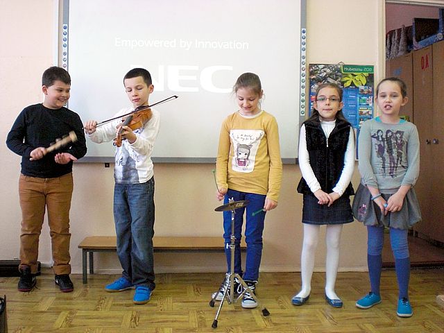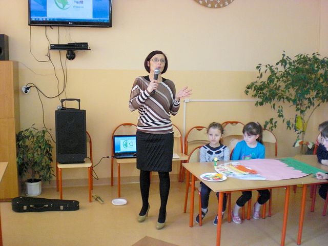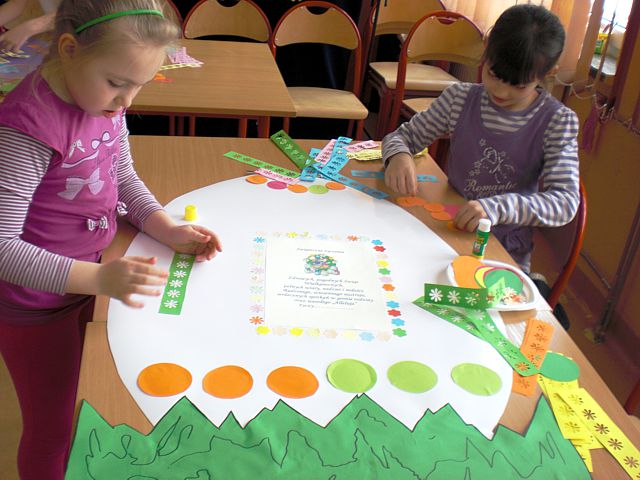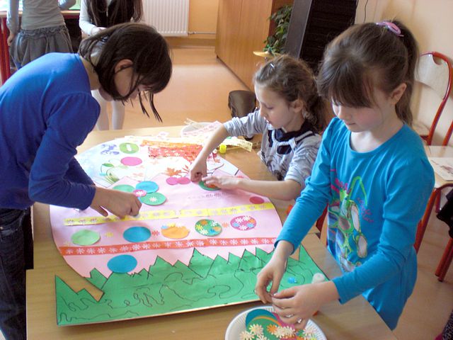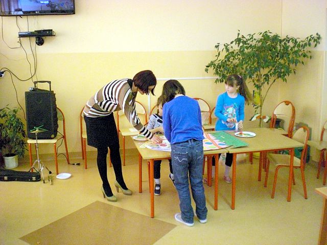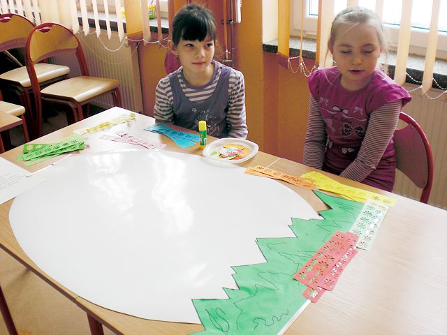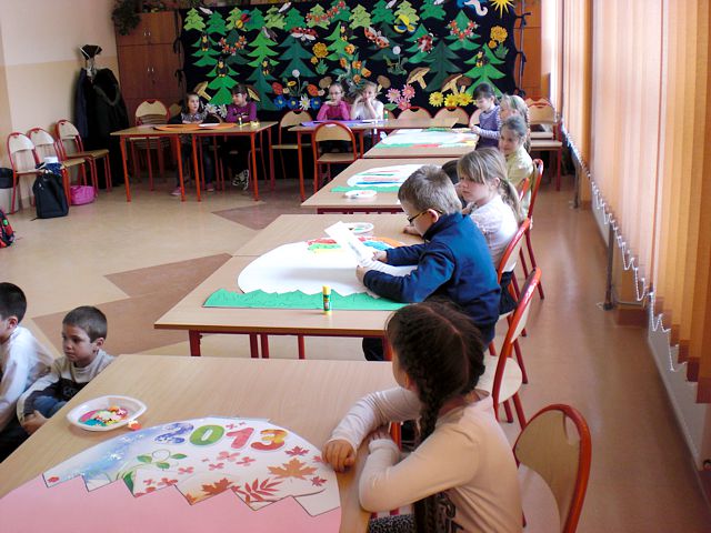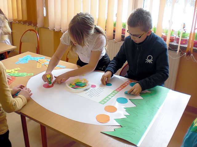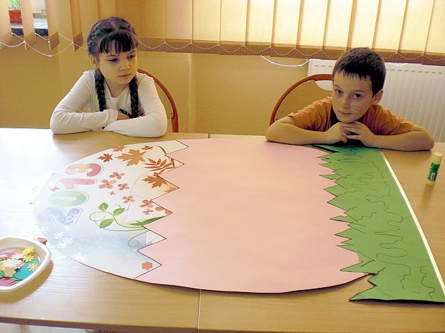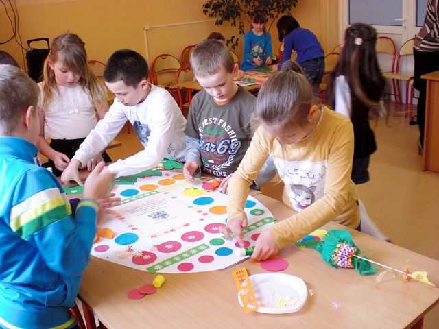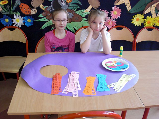Samorząd Uczniowski młodszej grupy wiekowej zorganizował warsztaty plastyczne pod hasłem „Zabawa z pisankami”. Uczestnicy spotkania obejrzeli krótką prezentację o tworzeniu ozdób wielkanocnych, a następnie ozdobili wielkie kartonowe szablony. Stopień trudności zadania dostosowany był do wieku dzieci, ale radość z wykonywania zadania była jednakowo wielka dla wszystkich. Dzięki dzieciom z klas pierwszych w szkole zrobiło się kolorowo.