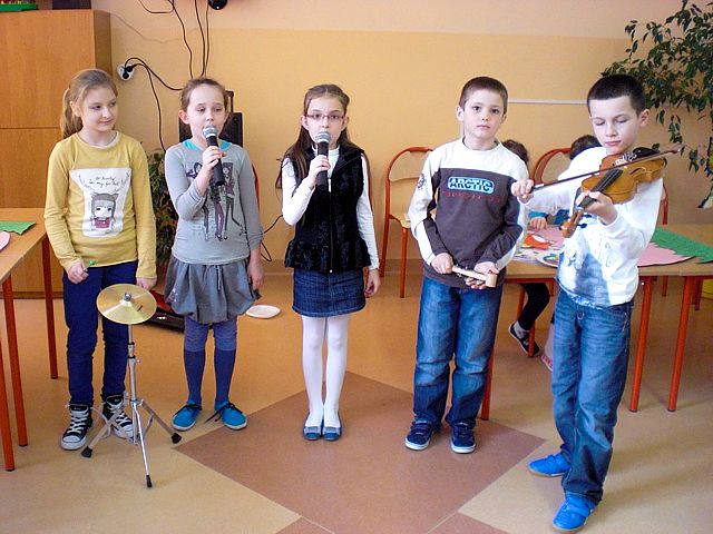 Drugoklasiści wywołali ciepły nastrój podczas odczytywania wielkanocnych życzeń. Natomiast trzecioklasiści rozbawili nas do łez. Za sprawą ich kreatywności, każdy uczestnik mógł „przemienić się” w pisankę i zrobić sobie pamiątkowe zdjęcie. Mamy nadzieję, że śmiech uczestników tegoż spotkania zbudził Panią Wiosnę i wkrótce wszędzie pojawią się różnorodne kolory.